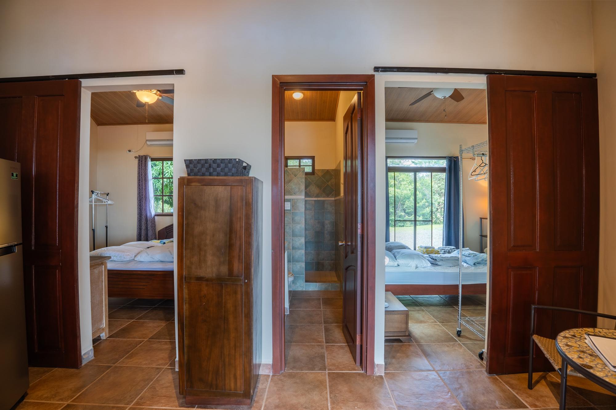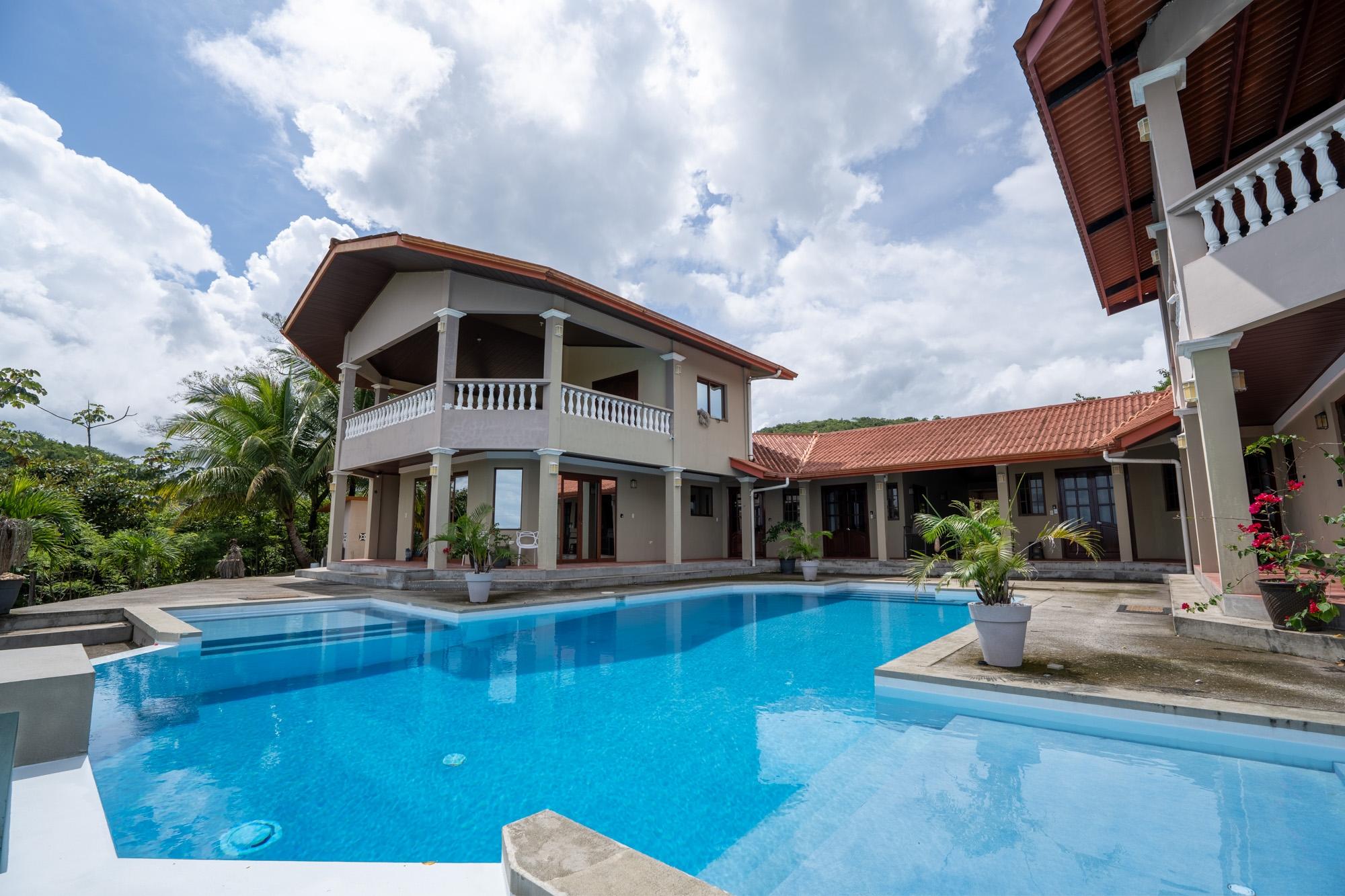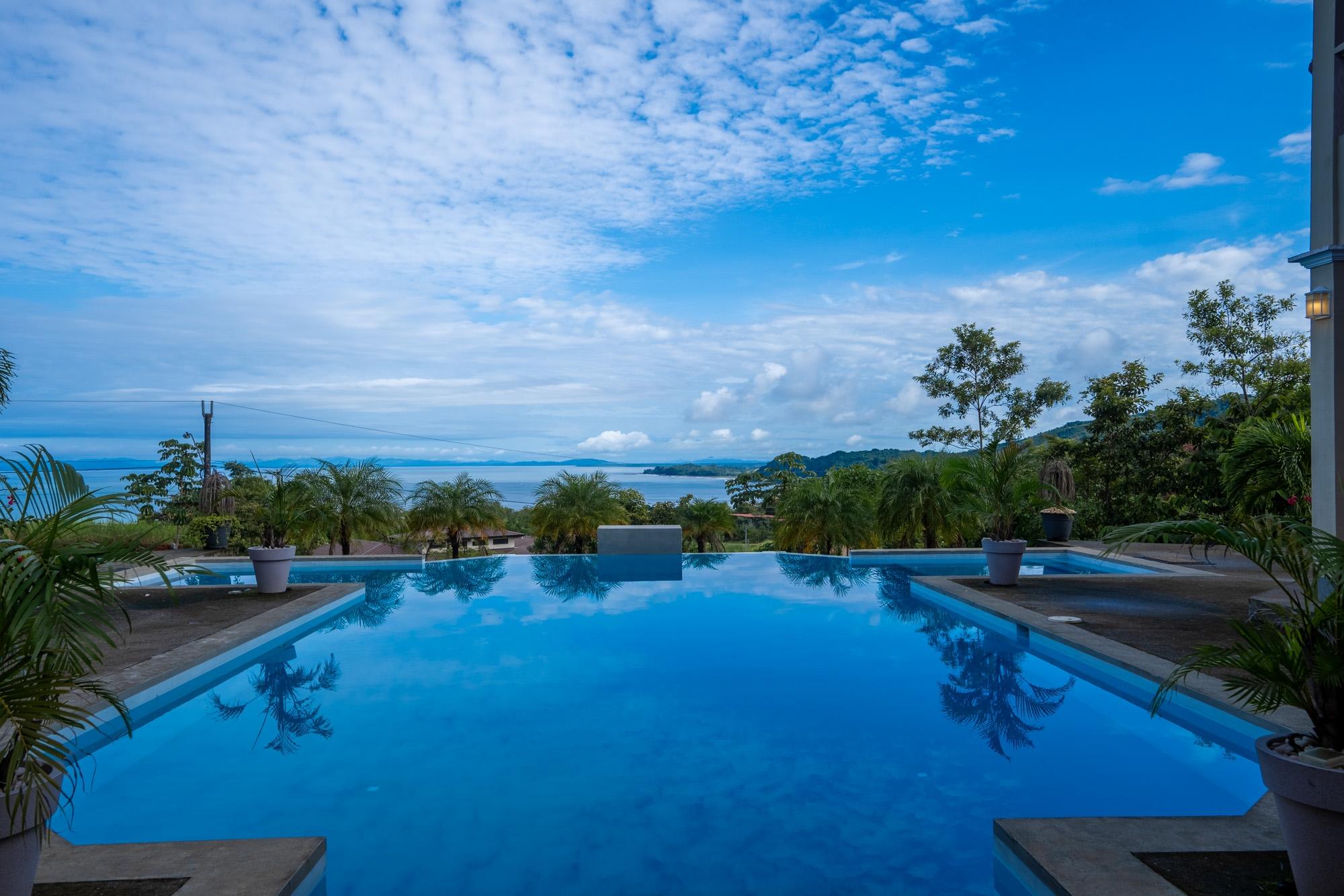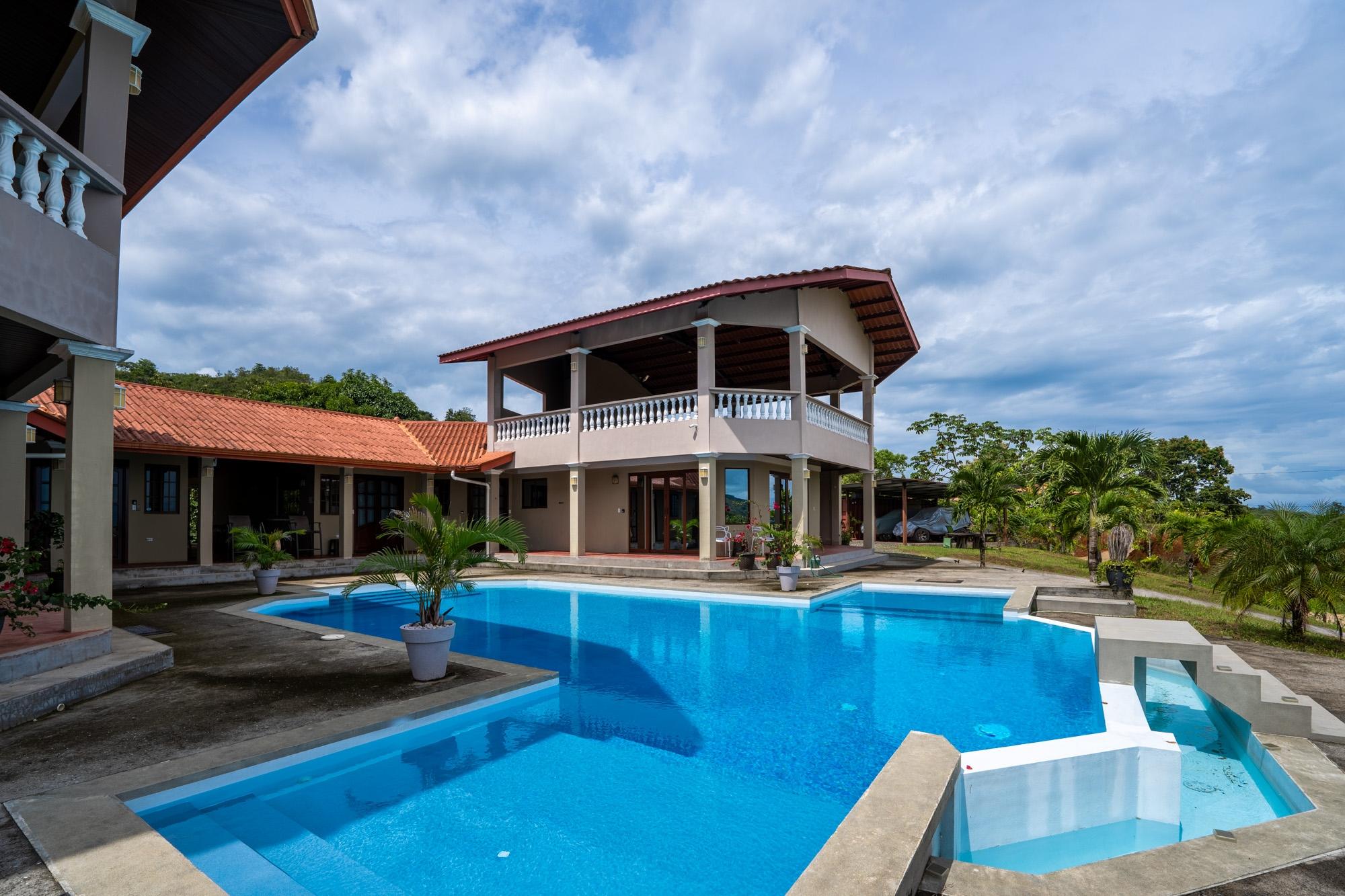 Now available for sale is this unique ocean-view villa located in the Sea View Phase of the Torio Property & Development community, just 2 km from the center of town and 1 km from the paved road. Titled and fully legal with an occupancy permit and declared improvements, this property has been operating as a successful Airbnb rental since March 2024 and is being sold furnished and move-in ready. The property spans around 5,500 m² of land with approximately 750 m² of construction, offering a total of 9 bedrooms and 8 bathrooms spread across six independent apartments arranged around a beautiful infinity pool. This layout provides strong rental flexibility for families, groups, or individual travelers, while also being well-suited for hosting private events, retreats, or even operating as a small hospitality business. At an elevation of 92 meters, the property benefits from cooler temperatures, steady ocean breezes, and less exposure to corrosive salt air – something you’ll notice over time in vehicles, AC units, and overall maintenance. The wide ocean view from this height is a standout feature, offering both comfort and scenery rarely found closer to sea level. Apartment Layout: A1: 1 queen bed, full kitchen, living room, TV A2: 1 double bed + 2 single beds A3: Studio with queen bed, kitchen A4: Studio with queen bed A5: 1 queen + 1 double bed A6: 1 queen bed, kitchen, living room Each apartment includes its own private bathroom with hot water, kitchen, air conditioning, and ceiling fans. The thoughtful layout also features step-free access to all apartments and common areas, making it friendly for guests with limited mobility.