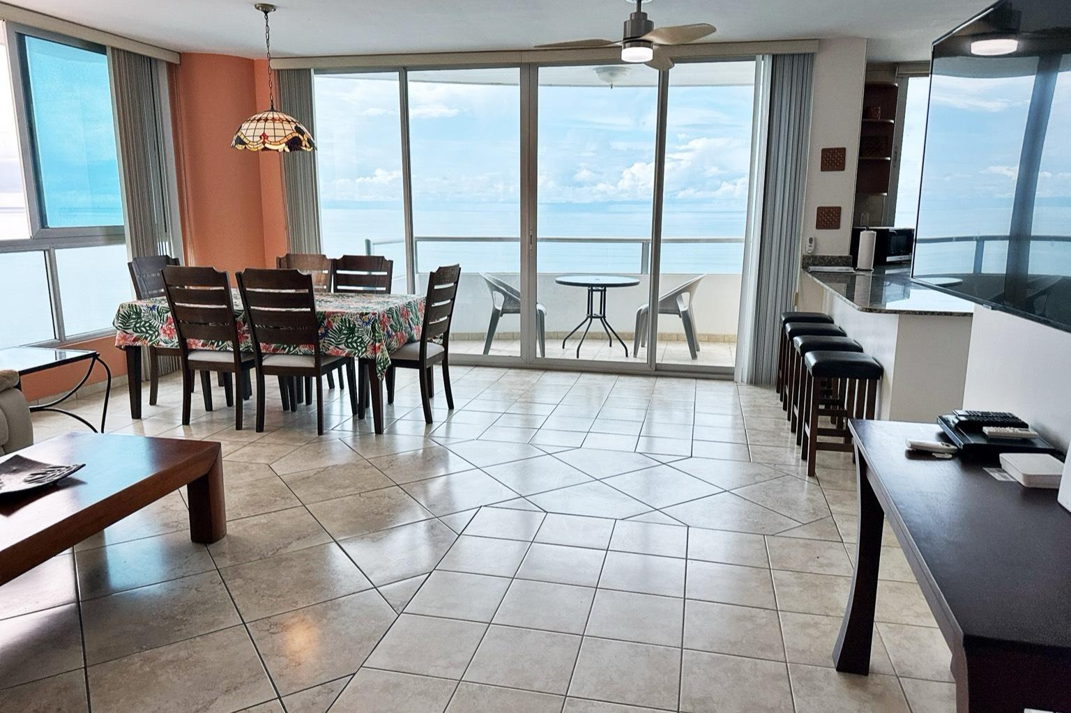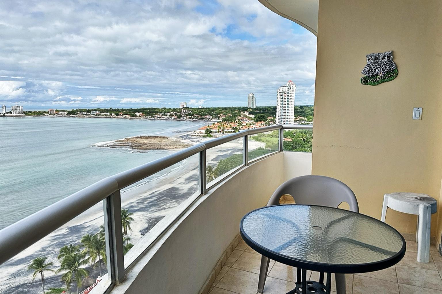 Wake up to the sound of waves and breathtaking ocean views in this fully furnished beachfront condo at the highly sought-after Playa Serena, built in 2009. Located on a high floor of this 26-story tower, this 125.72 m² unit offers the perfect mix of comfort, convenience, and resort-style living. Interior Features: •2 spacious bedrooms with air conditioning (splits), ceiling fans & roller shades •2 full bathrooms •Oceanfront balcony with panoramic views of the Pacific •Bright and airy living & dining areas with vertical shades •Expansive kitchen with pantry, all appliances included •Fully furnished, move-in ready Community Amenities: •Beachfront pool with spacious sun deck •Covered bohío social area, ideal for gatherings & relaxation •Large indoor game room & additional social lounge •24/7 gated security with controlled entry & direct beach access Whether you’re looking for a vacation escape, full-time residence, or investment opportunity, this property delivers unbeatable beachfront value in one of Panama’s most desirable coastal communities. Located in Nueva Gorgona close to Coronado, close to shopping, dining, golf, and healthcare.