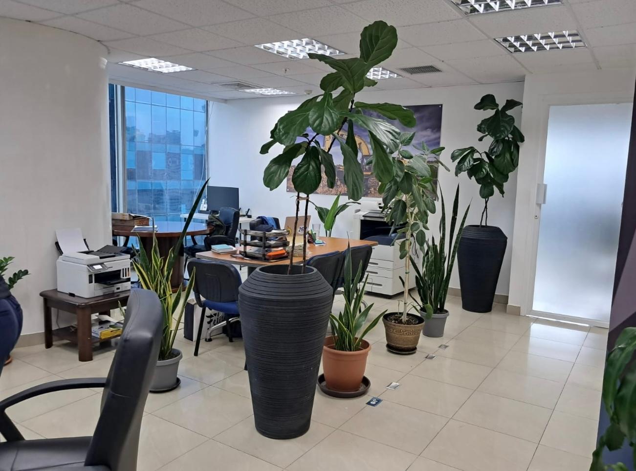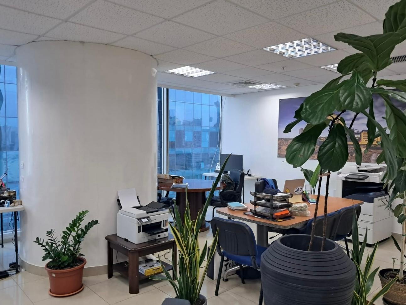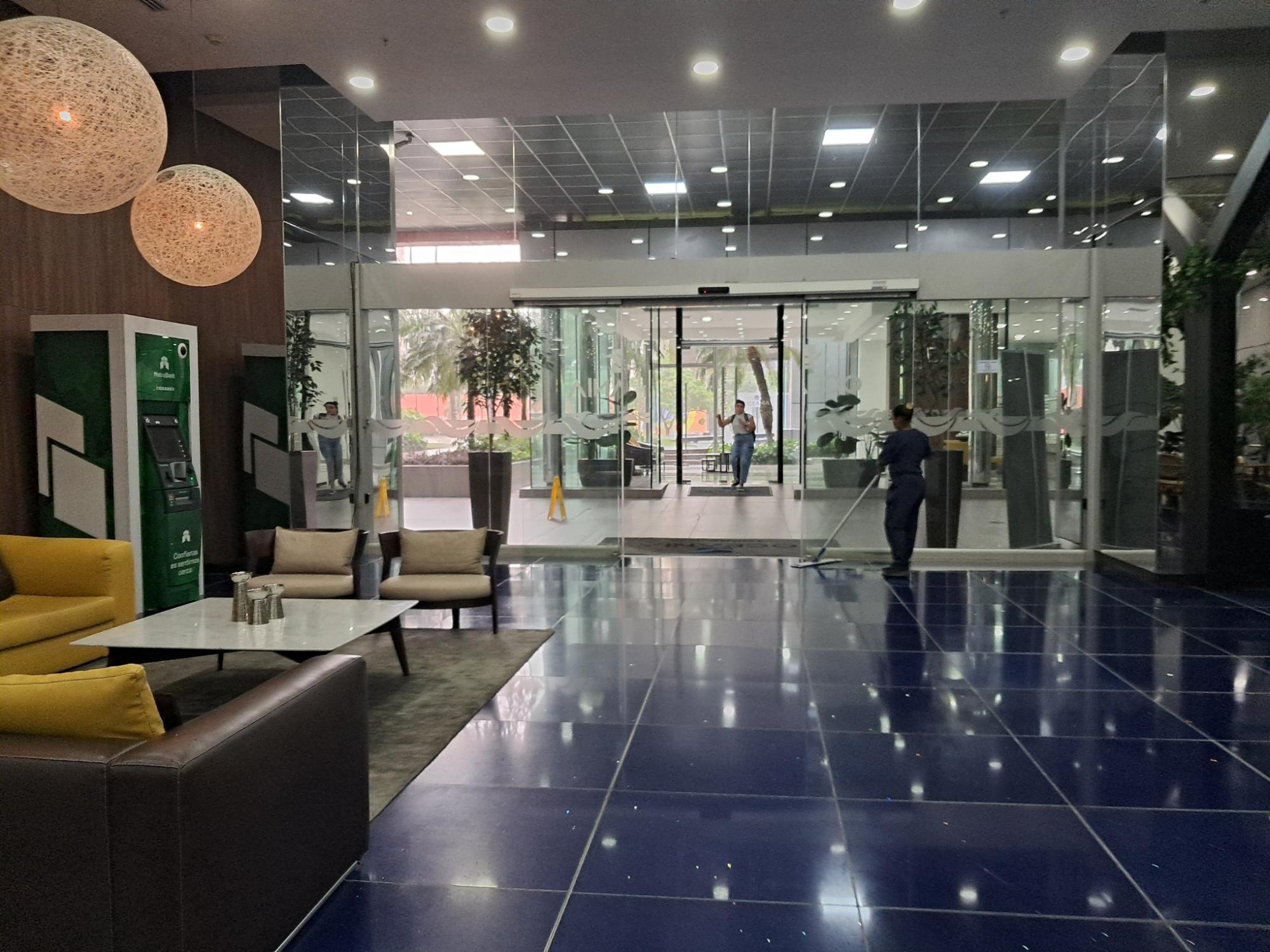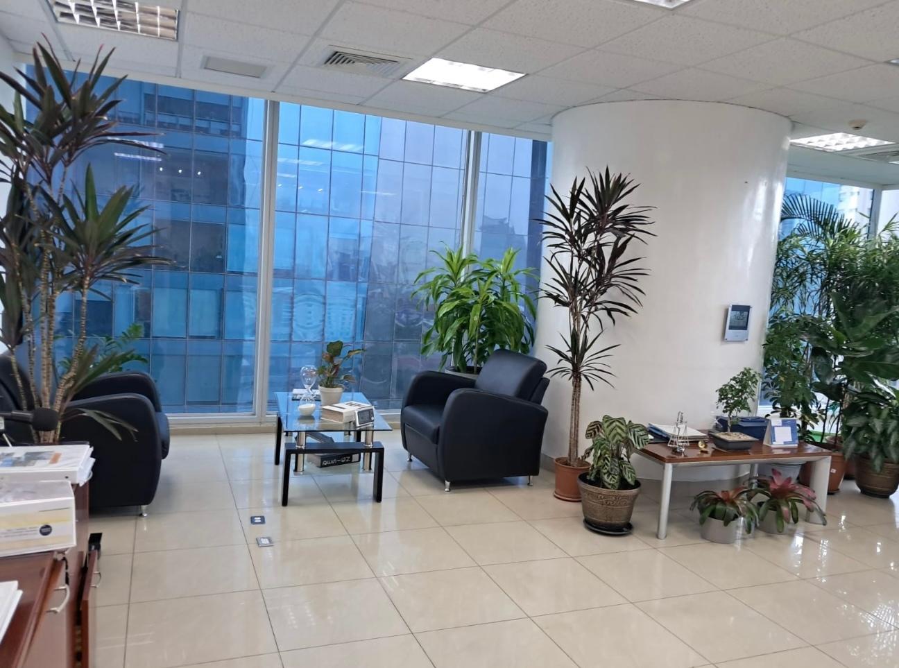 Two adjacent corner offices, each measuring 419 m², boast finishes including light fixtures, porcelain tile floors, a kitchen, two central air conditioners, a bathroom, seven parking spaces, good natural lighting, excellent views from all areas, and are in very good condition. Each floor has 10 high-speed elevators, men’s and women’s restrooms, visitor parking, restaurants, shopping centers, and banks, all within easy reach.