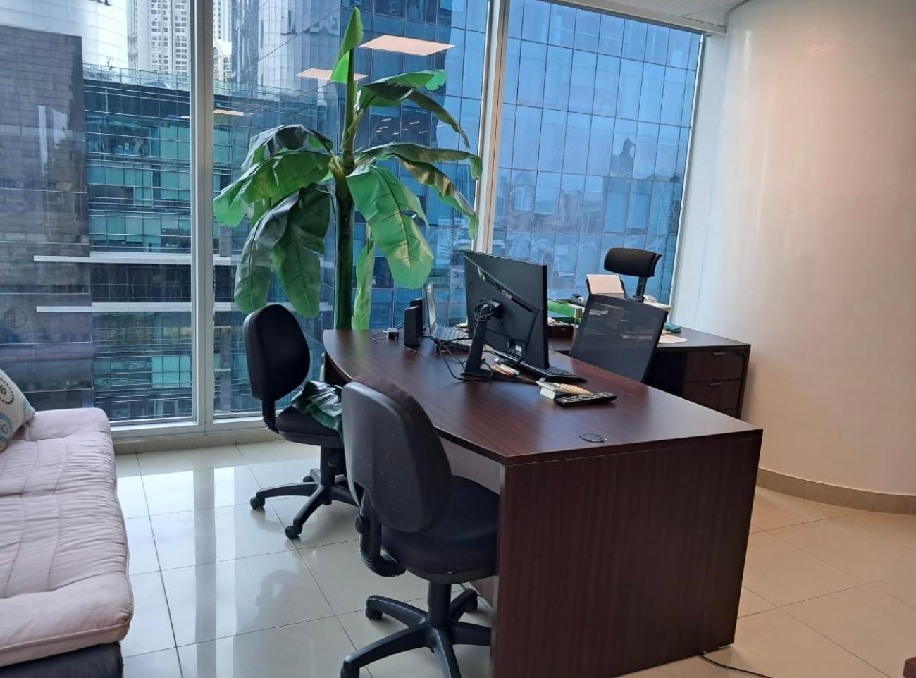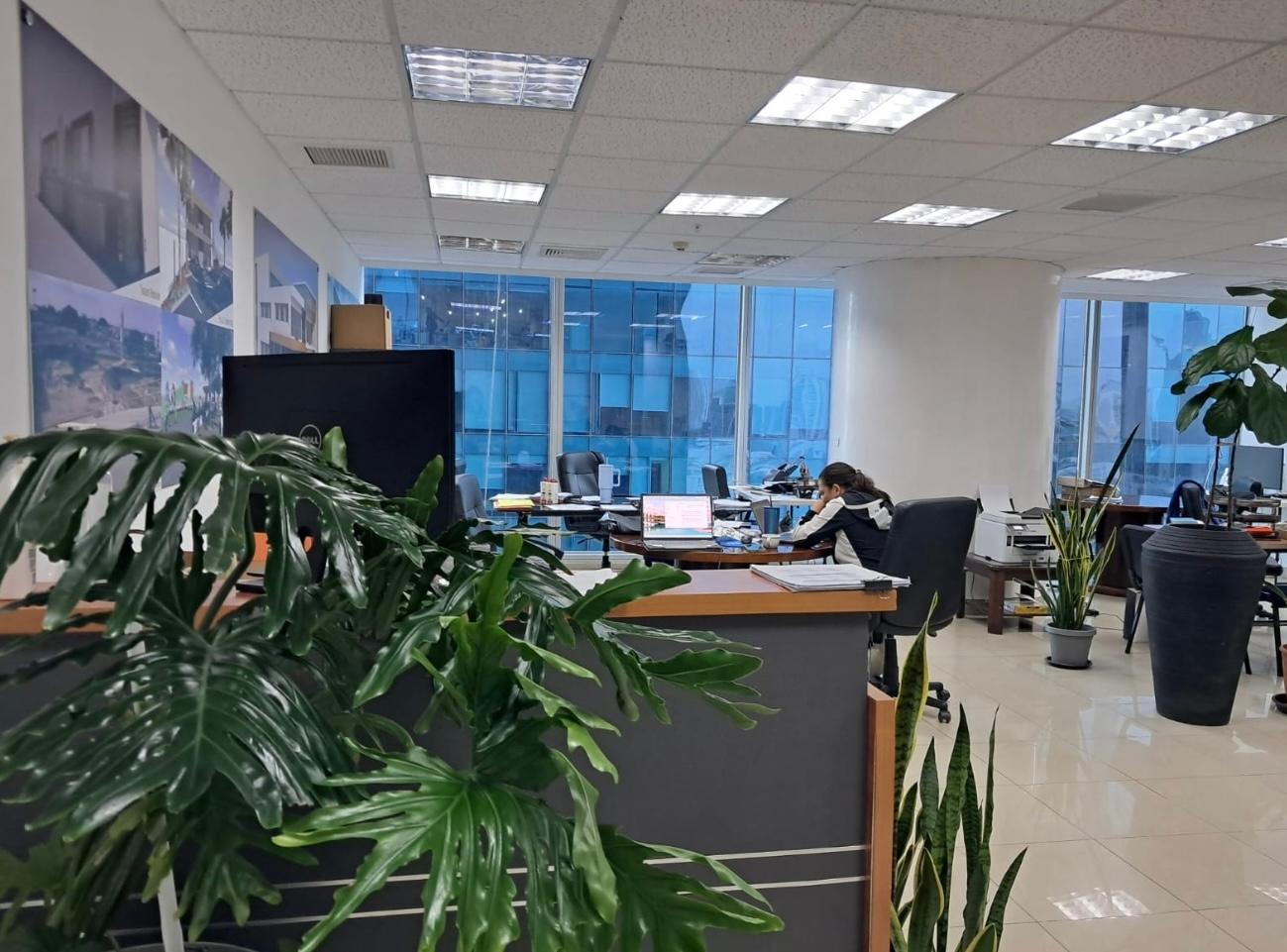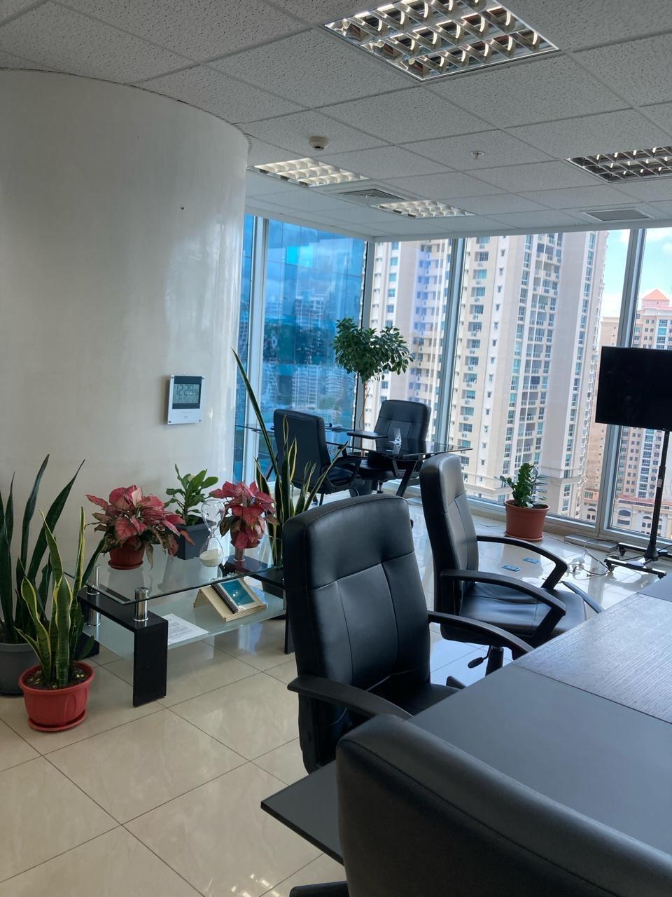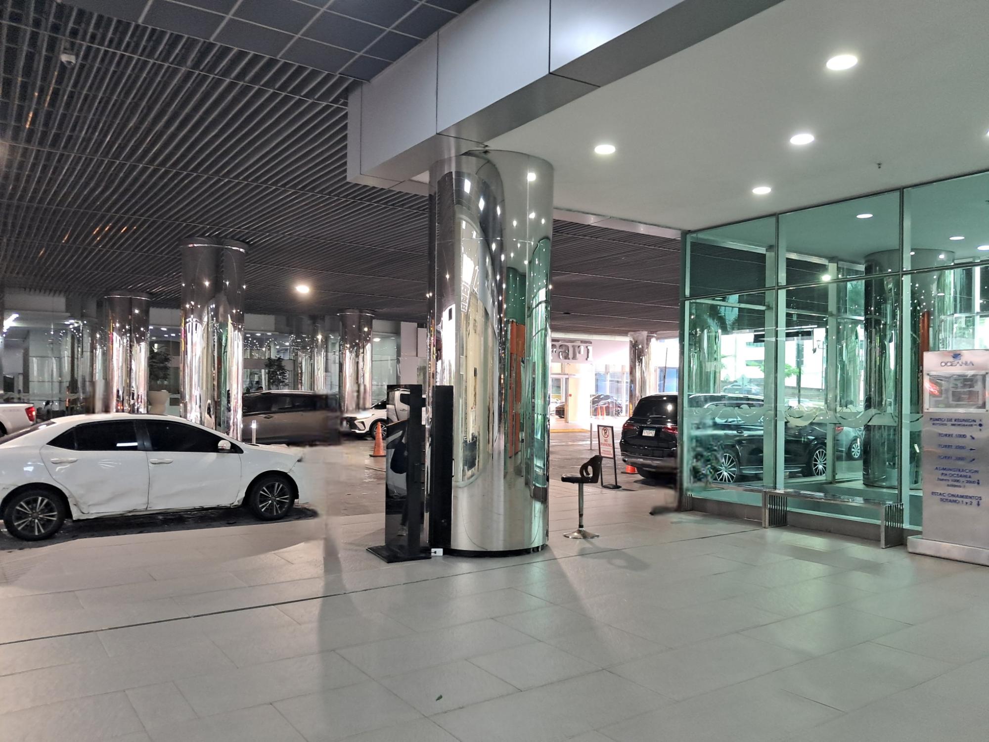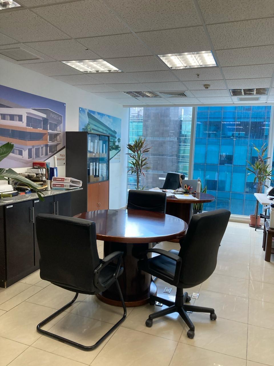 Two adjacent corner offices, each measuring 419 m², boast finishes including light fixtures, porcelain tile floors, a kitchen, two central air conditioners, a bathroom, seven parking spaces, good natural lighting, excellent views from all areas, and are in very good condition. Each floor has 10 high-speed elevators, men’s and women’s restrooms, visitor parking, restaurants, shopping centers, and banks, all within easy reach.
