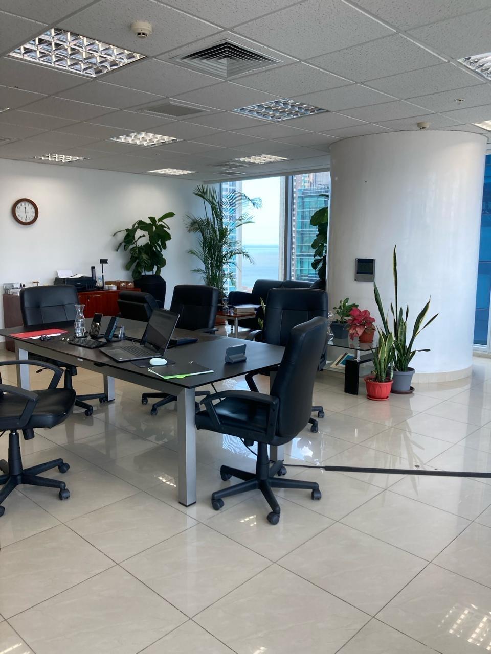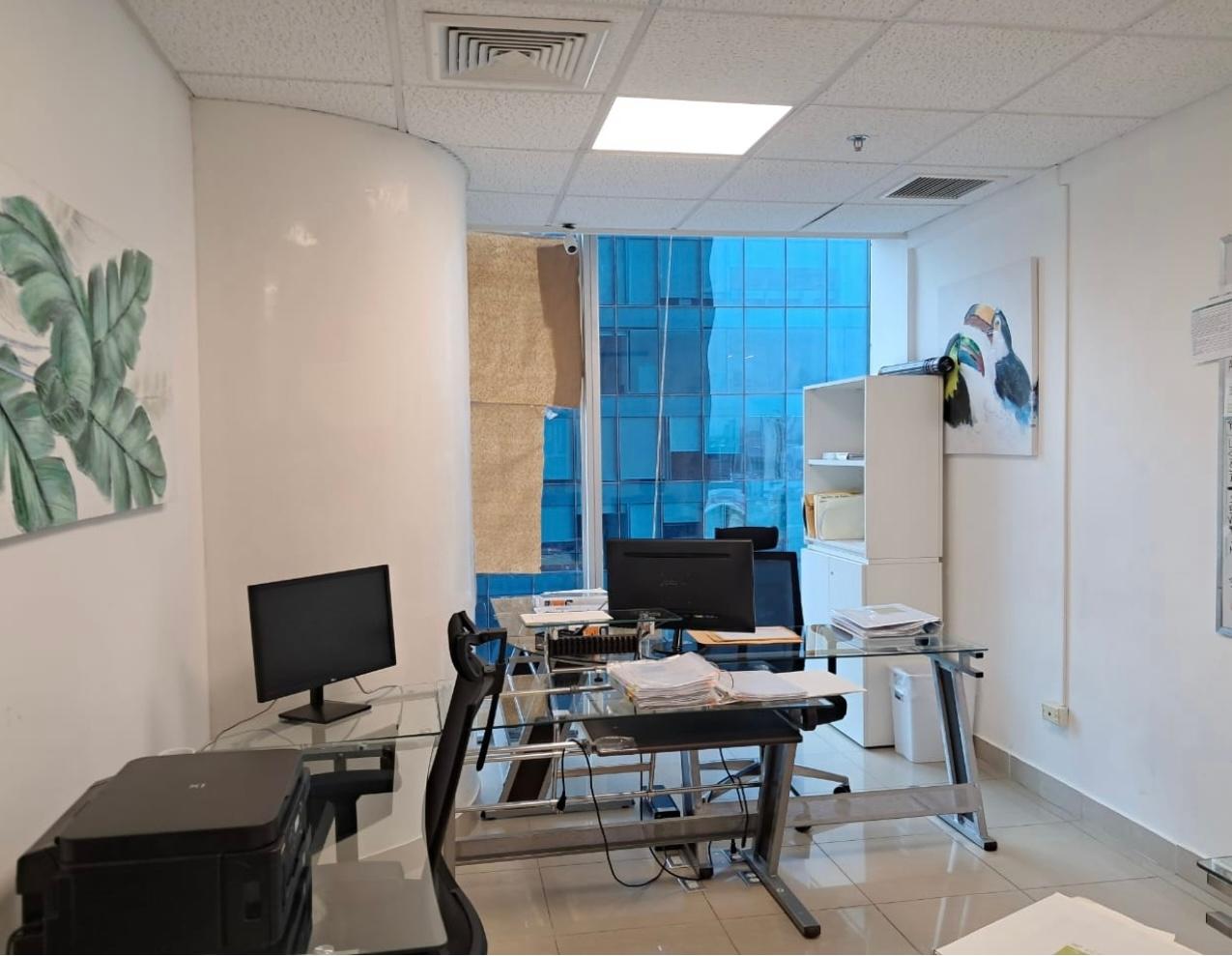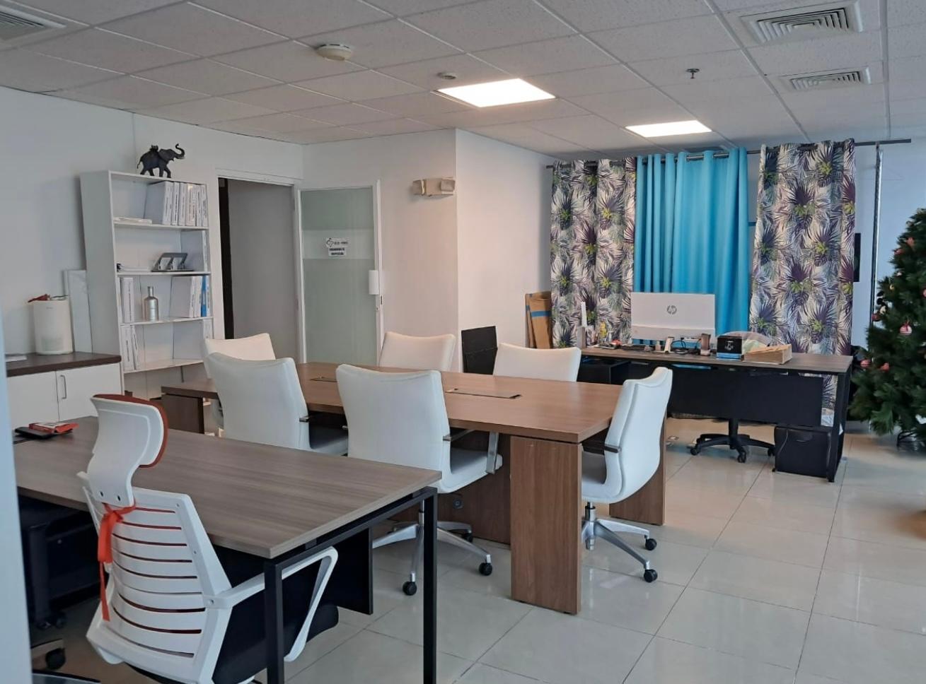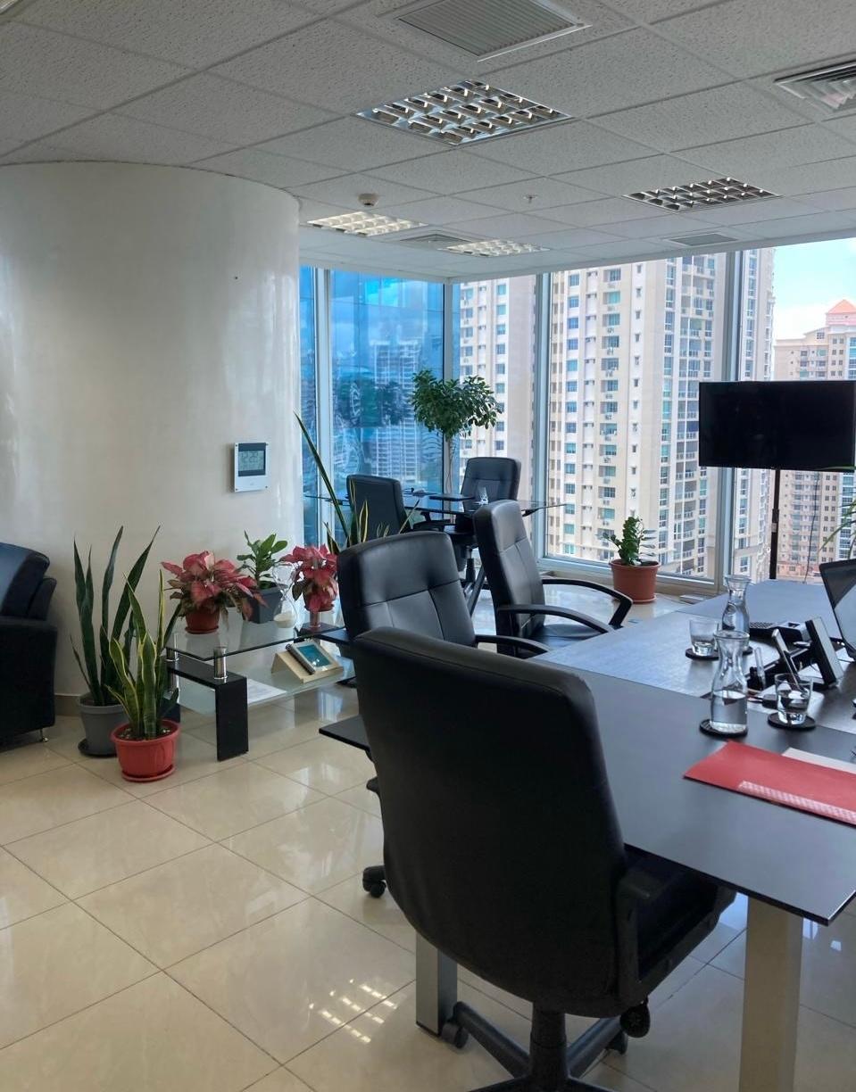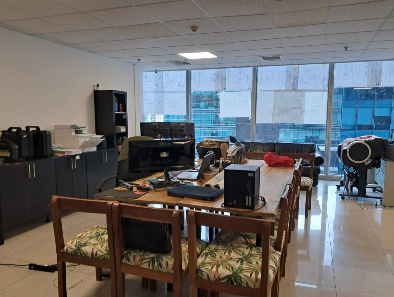 Two adjacent corner offices, each measuring 419 m², boast finishes including light fixtures, porcelain tile floors, a kitchen, two central air conditioners, a bathroom, seven parking spaces, good natural lighting, excellent views from all areas, and are in very good condition. Each floor has 10 high-speed elevators, men’s and women’s restrooms, visitor parking, restaurants, shopping centers, and banks, all within easy reach.