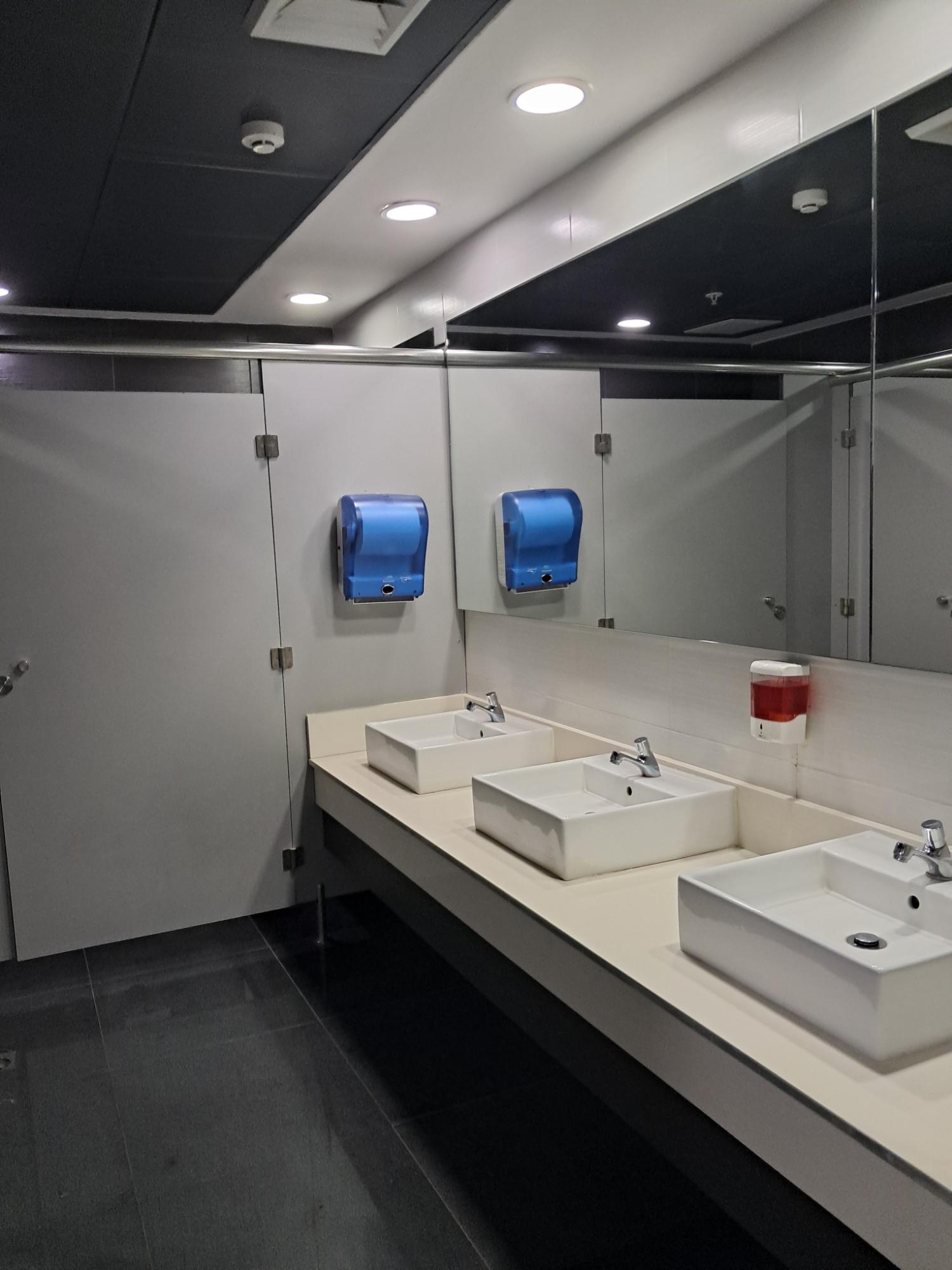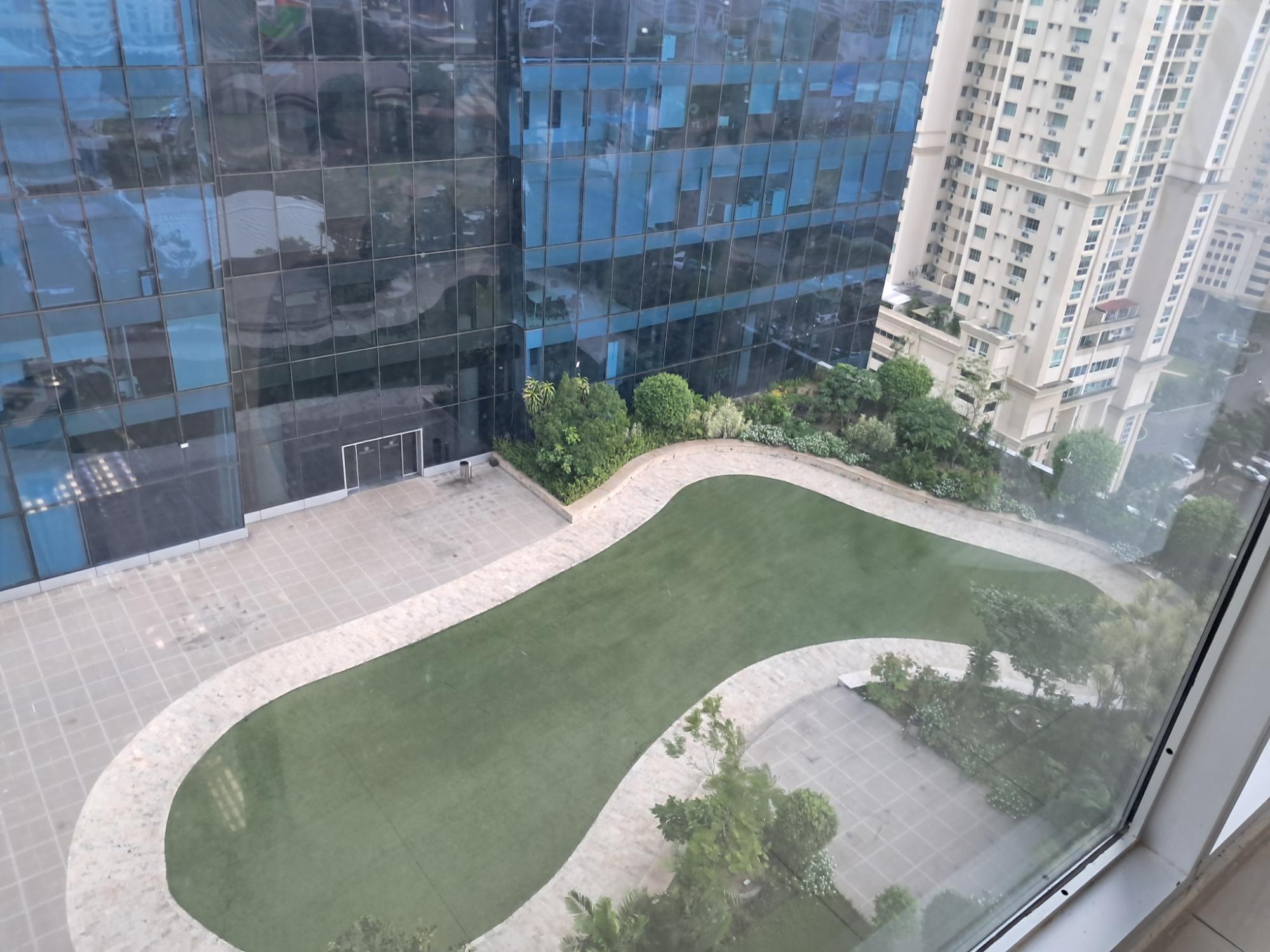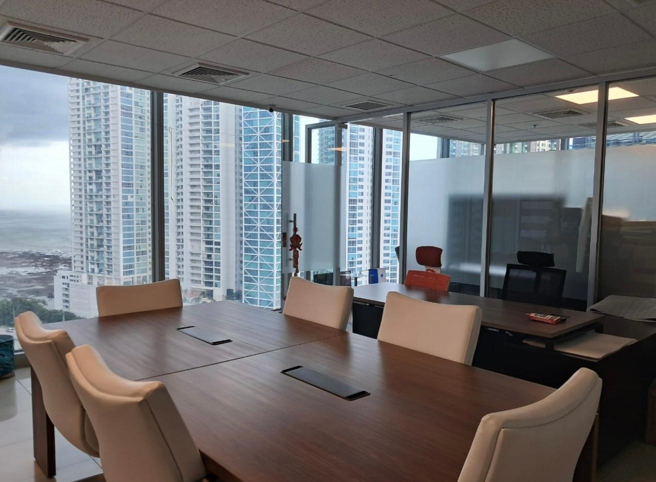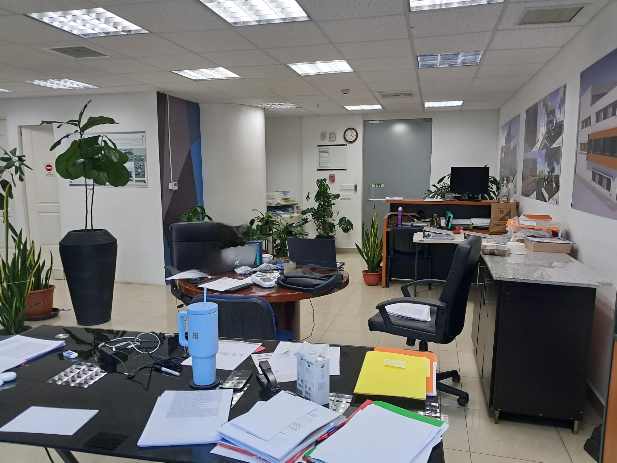 Two adjacent corner offices, each measuring 419 m², boast finishes including light fixtures, porcelain tile floors, a kitchen, two central air conditioners, a bathroom, seven parking spaces, good natural lighting, excellent views from all areas, and are in very good condition. Each floor has 10 high-speed elevators, men’s and women’s restrooms, visitor parking, restaurants, shopping centers, and banks, all within easy reach.