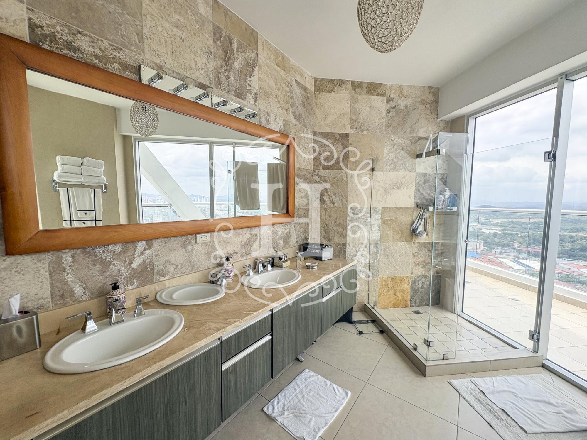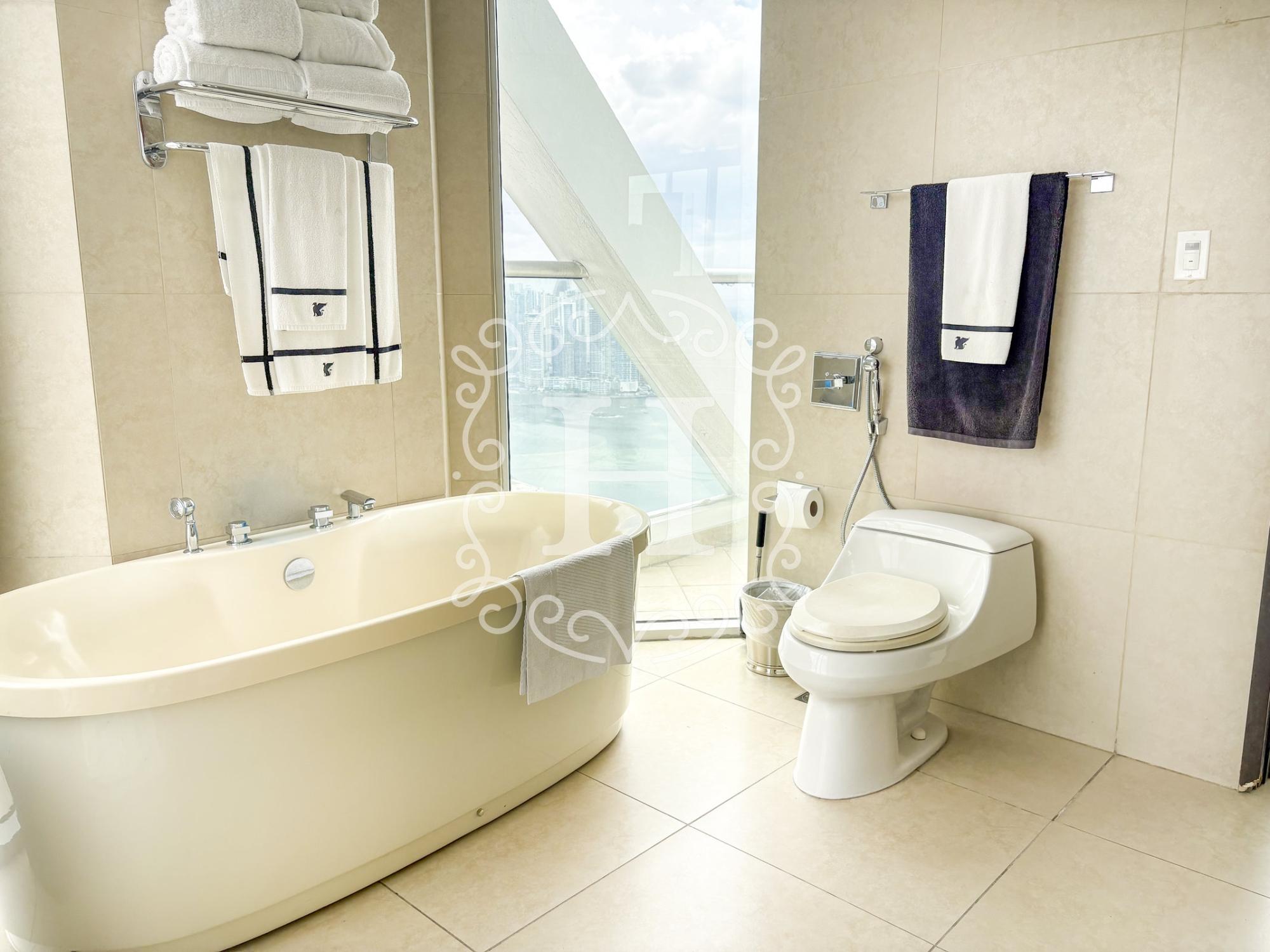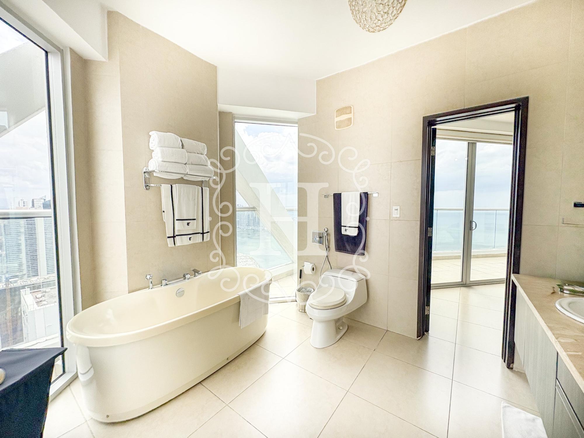 Panama City Panama Oceanfront Penthouse Top Floor Condo with Ocean & Skyline Views This Panama City Panama oceanfront penthouse offers a rare opportunity to live directly on the shoreline with uninterrupted ocean and skyline views. This 2 bedroom, 2 bathroom top floor residence combines natural light, elevation, and functional design for full-time living or seasonal use. 2 bedroom / 2 bathroom Ocean and city skyline views Top floor unit Partially furnished Bright open-concept layout The interior is designed for flow and usability, connecting the kitchen, living, and dining areas into one cohesive space. Large open-concept kitchen Central island Separate laundry room Central AC The primary bedroom functions as a private retreat: Walk-in closet “His and hers” closets 5-piece ensuite bathroom Bathtub with city views Building amenities support convenience and lifestyle: Elevator Garage parking Gym, pool, jacuzzi Rooftop access Balcony Garbage collection Located on Avenida Balboa, this Panama City Panama oceanfront penthouse offers direct access to the Cinta Costera and close proximity to restaurants, services, and the financial district, creating a walkable waterfront lifestyle. Ideal for full-time residents, retirees, snowbirds, or investors, this property combines location, layout, and amenities in one of Panama City’s most in-demand coastal corridors.