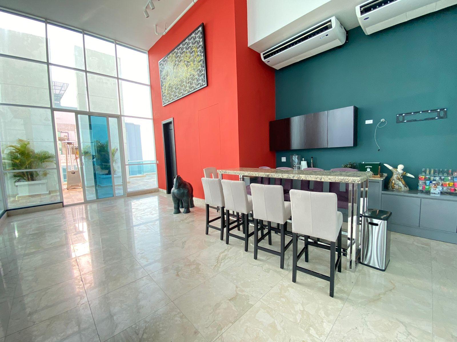 Penthouse with private pool Located in the exclusive community of Costa del Este, within walking distance of shopping centers, restaurants, the prestigious Punta Pacifica Hospital affiliated with John Hopkins, central parks, grocery stores, and many other amenities. Vitri is an apartment in Costa del Este with luxurious finishes and panoramic views of the sea and the city of Panama. It is the only project that offers a private park with sports and recreational facilities for the whole family, in addition to all the amenities of a club-spa within the security of a residential complex. The Apartment: 1,072 sqm, 4 bedrooms, 5 bathrooms, living room and dining room, family room, 4 parking spaces + 1 storage. Amenities: Large swimming pool, tanning area, movie theater, soccer field, elegant party and event hall, children’s playground, games room for teenagers, double-height lobby, private lobby with access to the apartment, visitor parking, concierge service, 24-hour security. Why Costa del Este? It is an exclusive neighborhood with the feeling of a city within a city. It is full of unique skyscrapers and gated communities of single-family homes. Here you will find everything you need, from supermarkets, shops, bars, schools, financial centers, pet stores, exclusive shopping malls, sports fields, and much more.