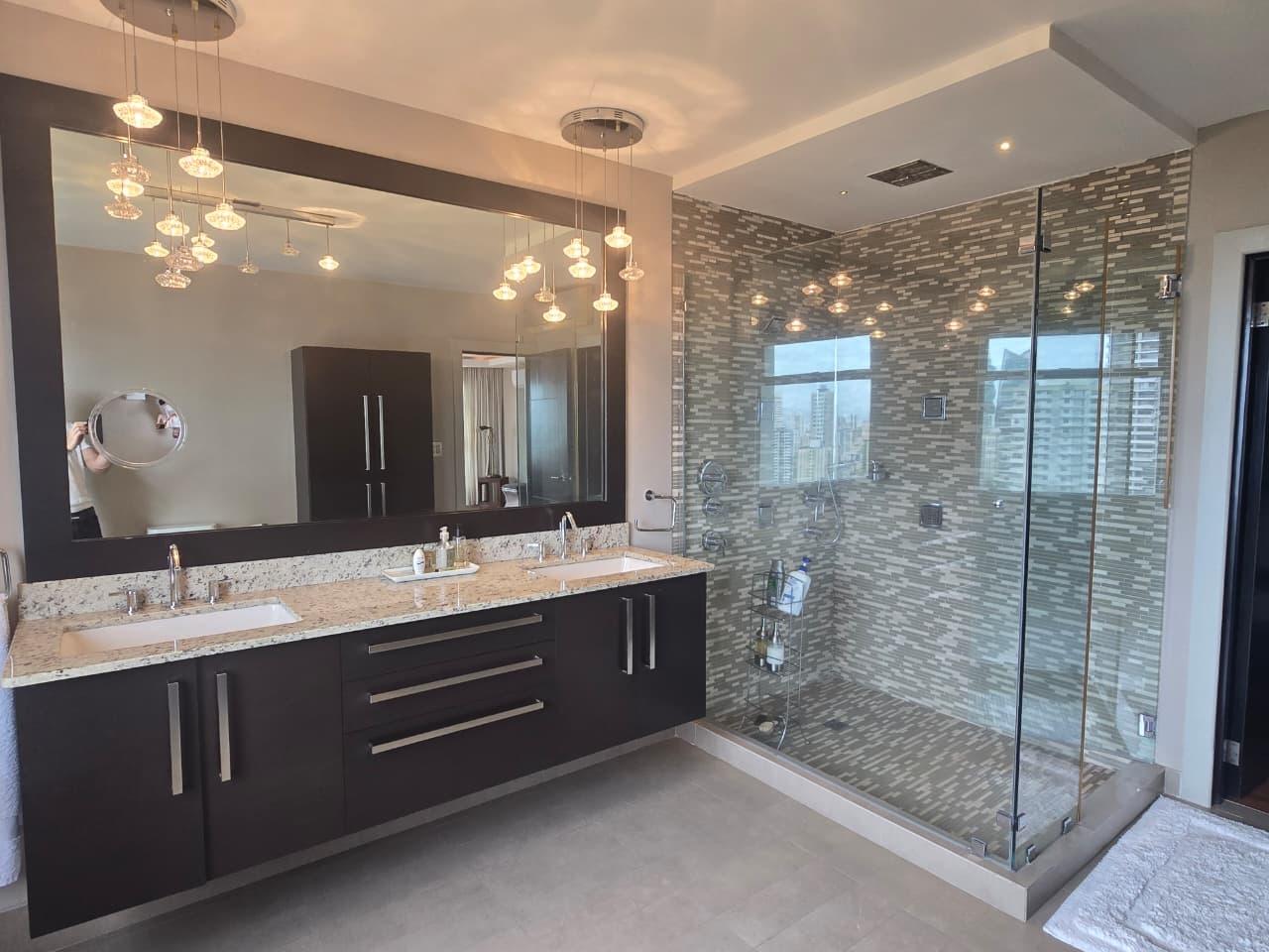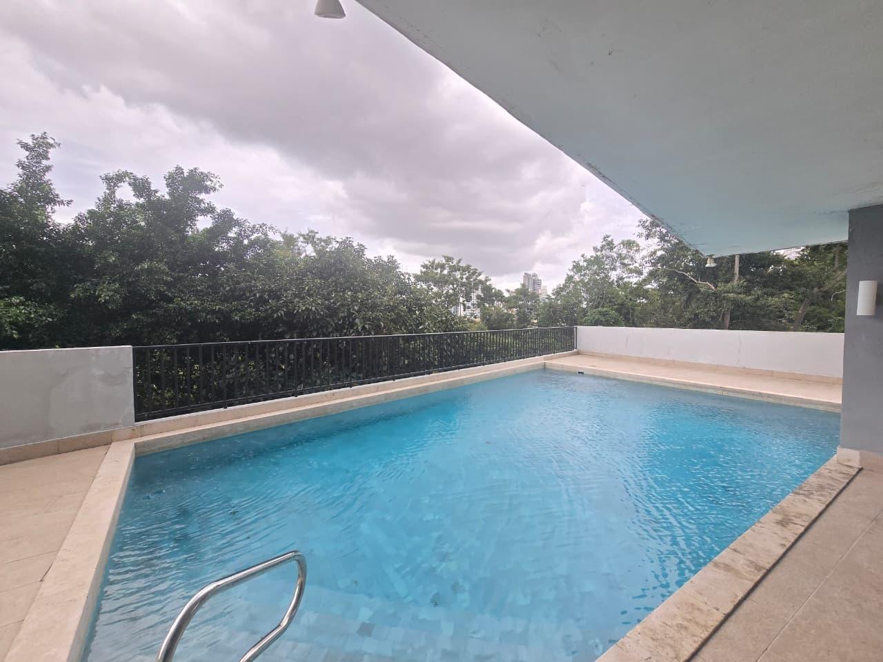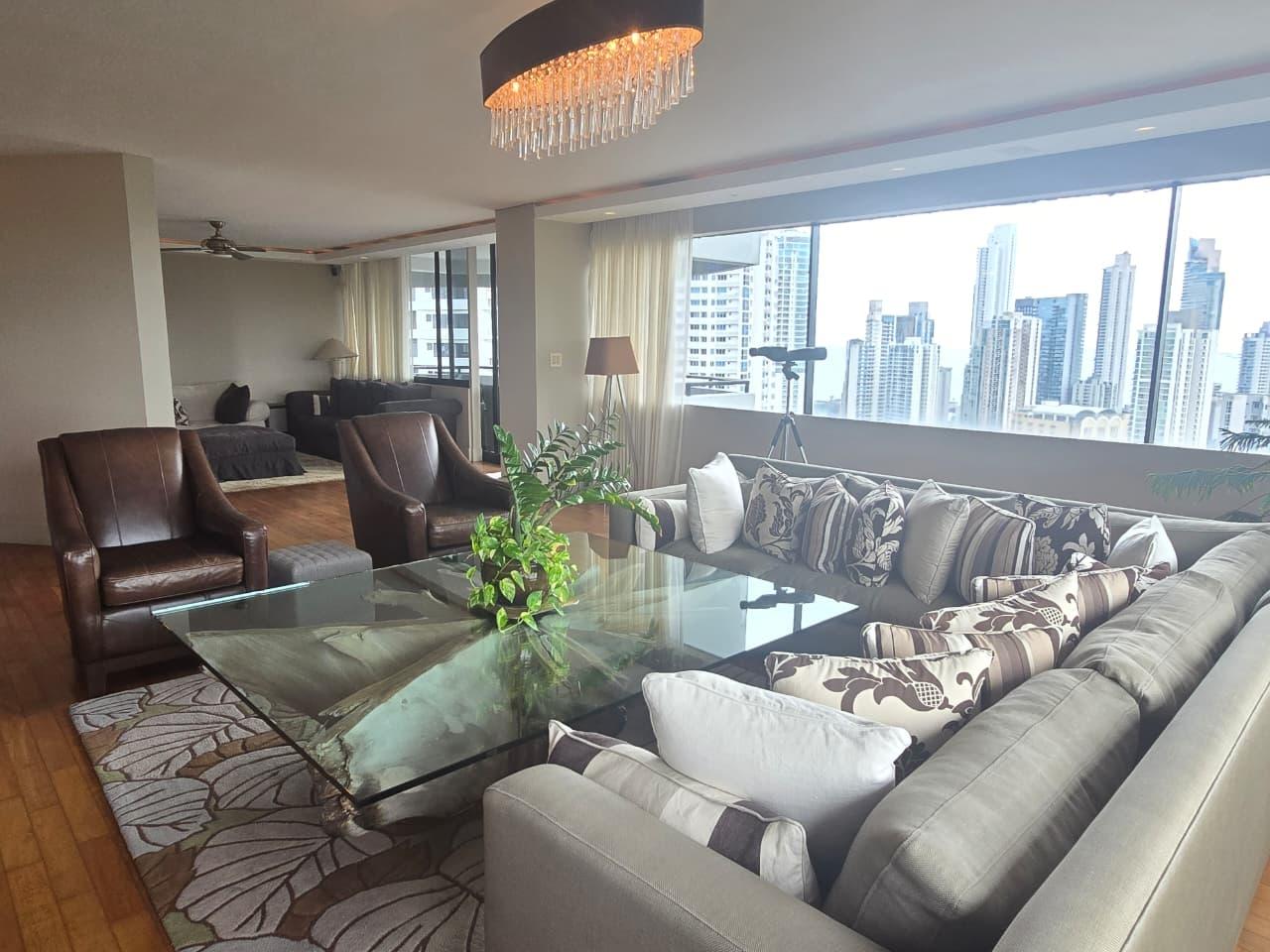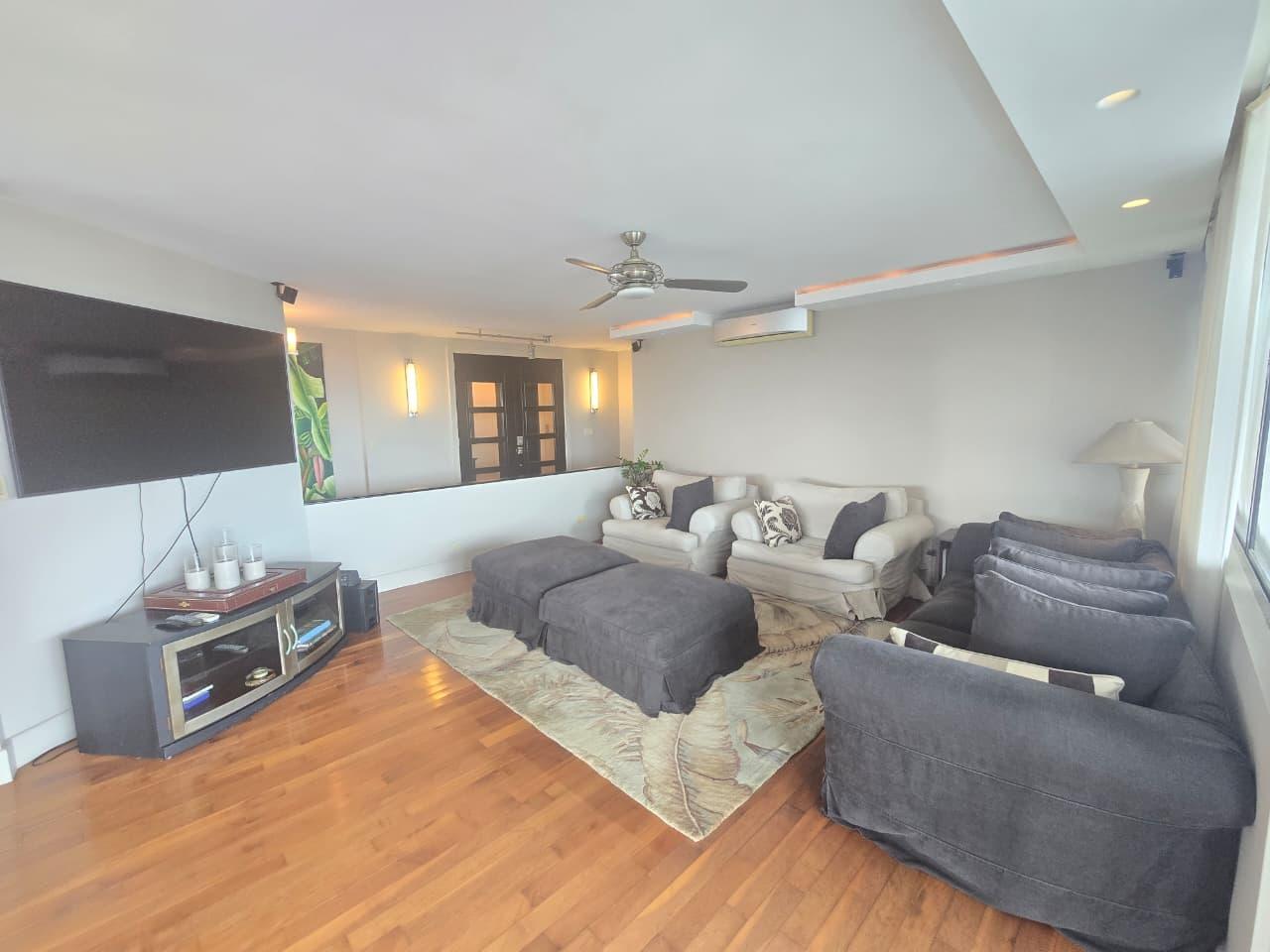 Spectacular apartment located in La Cresta. This penthouse boasts beautiful social areas and all the amenities in one of Panama City’s most desirable neighborhoods: 400 sq m, 3 beautiful bedrooms, 3.5 bathrooms, double living room, dining room, kitchen, maid’s quarters with bathroom, balcony with stunning views, bar area, laundry room, 2 parking spaces, and 1 storage unit. Amenities include a social area, fully equipped gym, and swimming pool. Contact us for more information or to schedule your visit! (ID 13408)