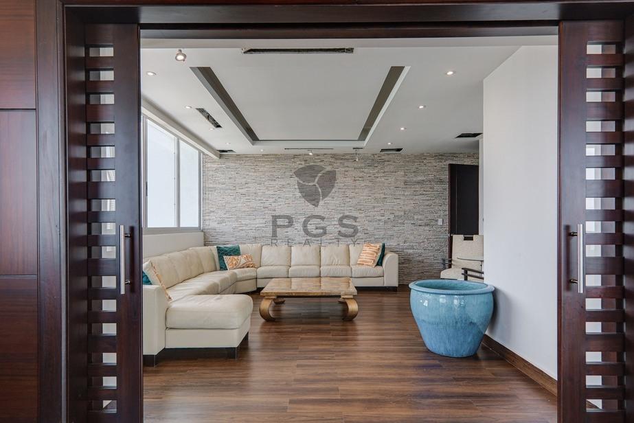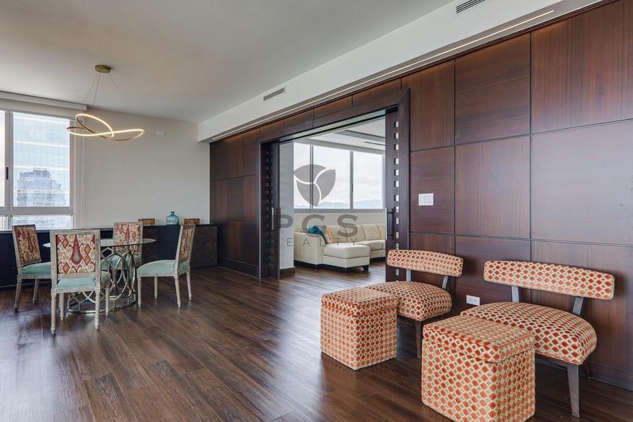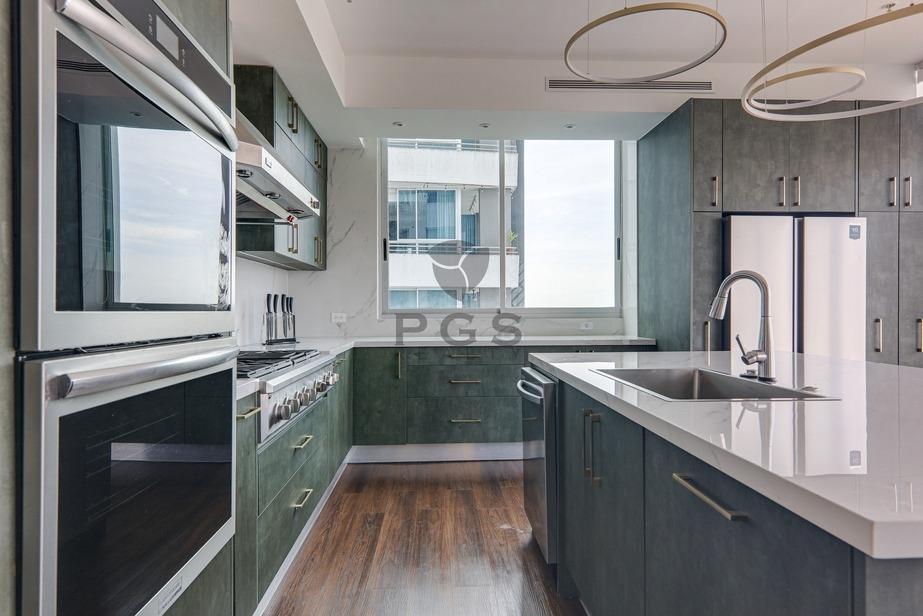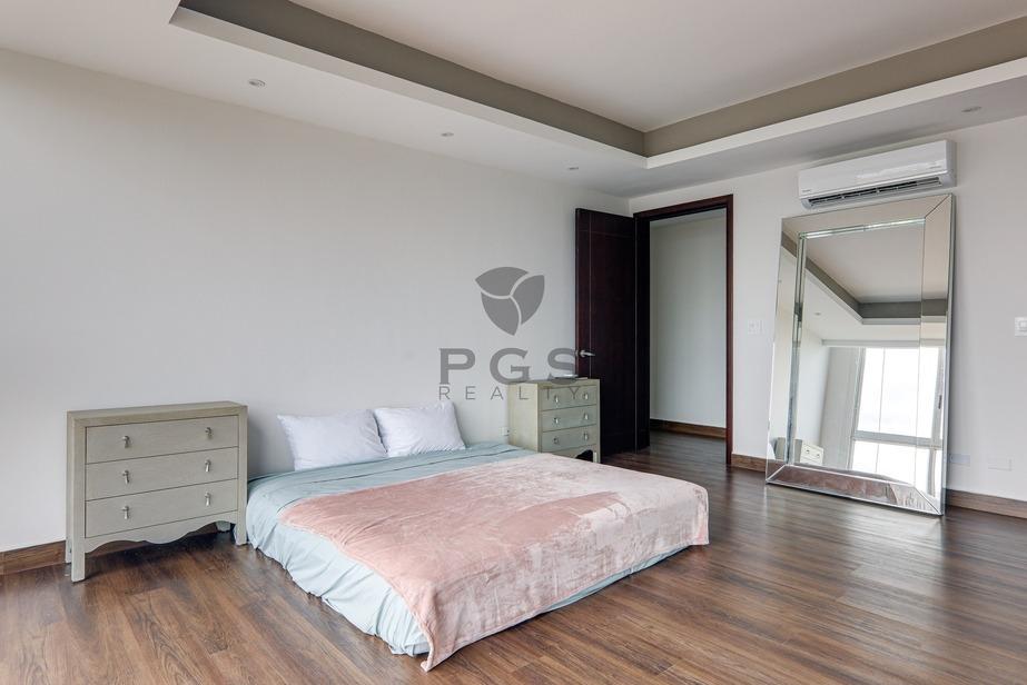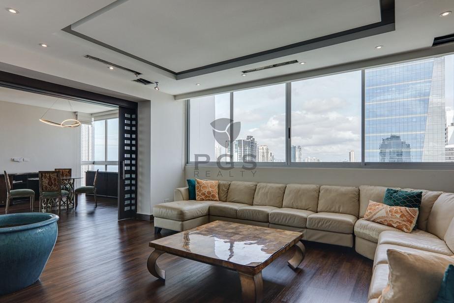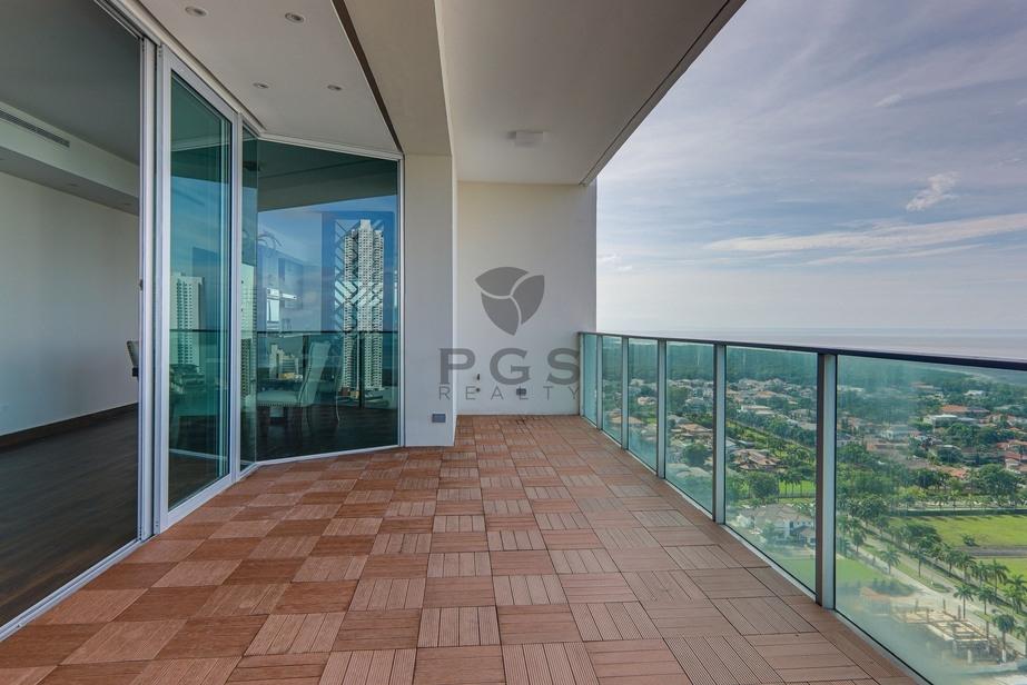 Features of this stunning property include: Large balcony and floor-to-ceiling windows with panoramic views of the Costa del Este skyline and the Pacific Ocean beyond Open-concept living-dining-kitchen area with energy-efficient central A/C system Family room/den that can be enclosed with sliding doors Gourmet kitchen with top-quality stainless steel appliances and quartz stone countertop Separate bar area with wine fridge and custom wine display rack Master suite with luxurious walk-in closet, additional closet and remodeled in-suite bathroom Two additional bedrooms with walk-in closets and private bathrooms Maid’s quarters equipped with A/C Large laundry room with natural ventilation Three assigned parking spots on a low floor Large storage unit