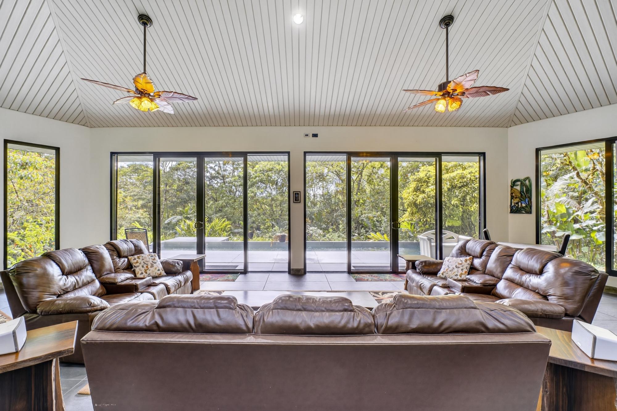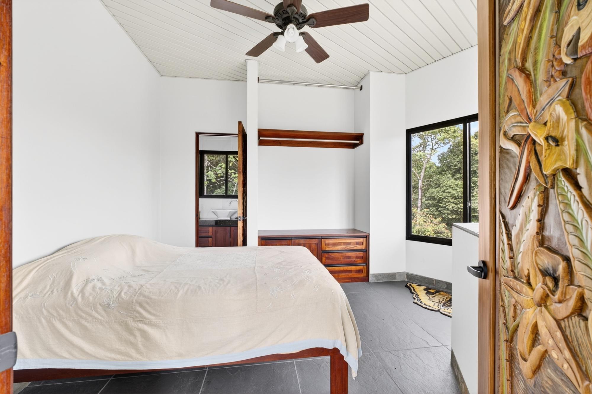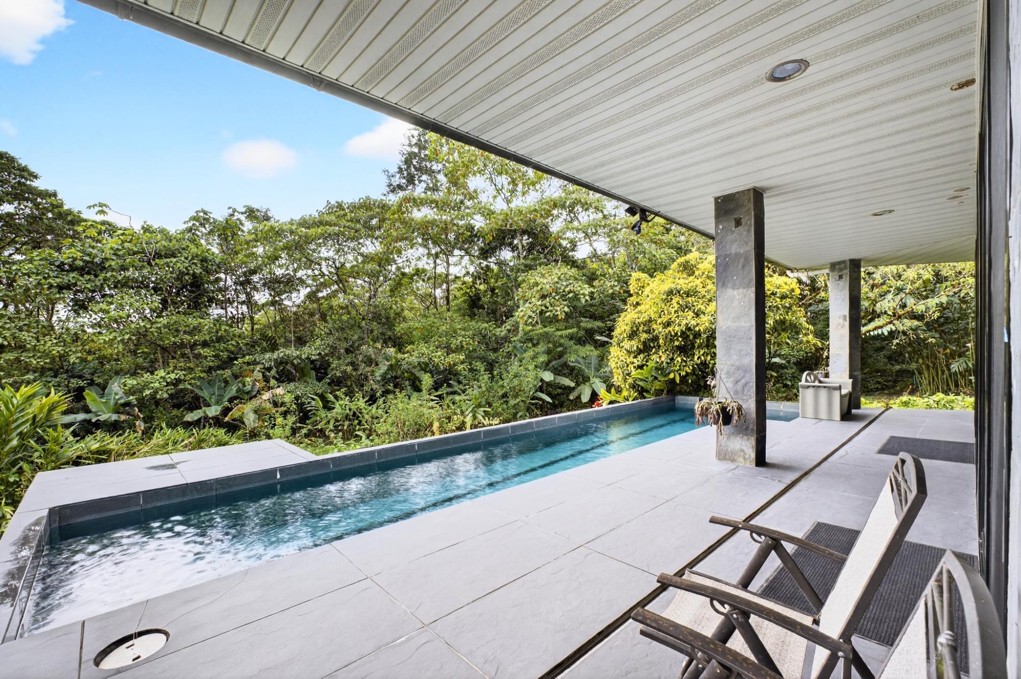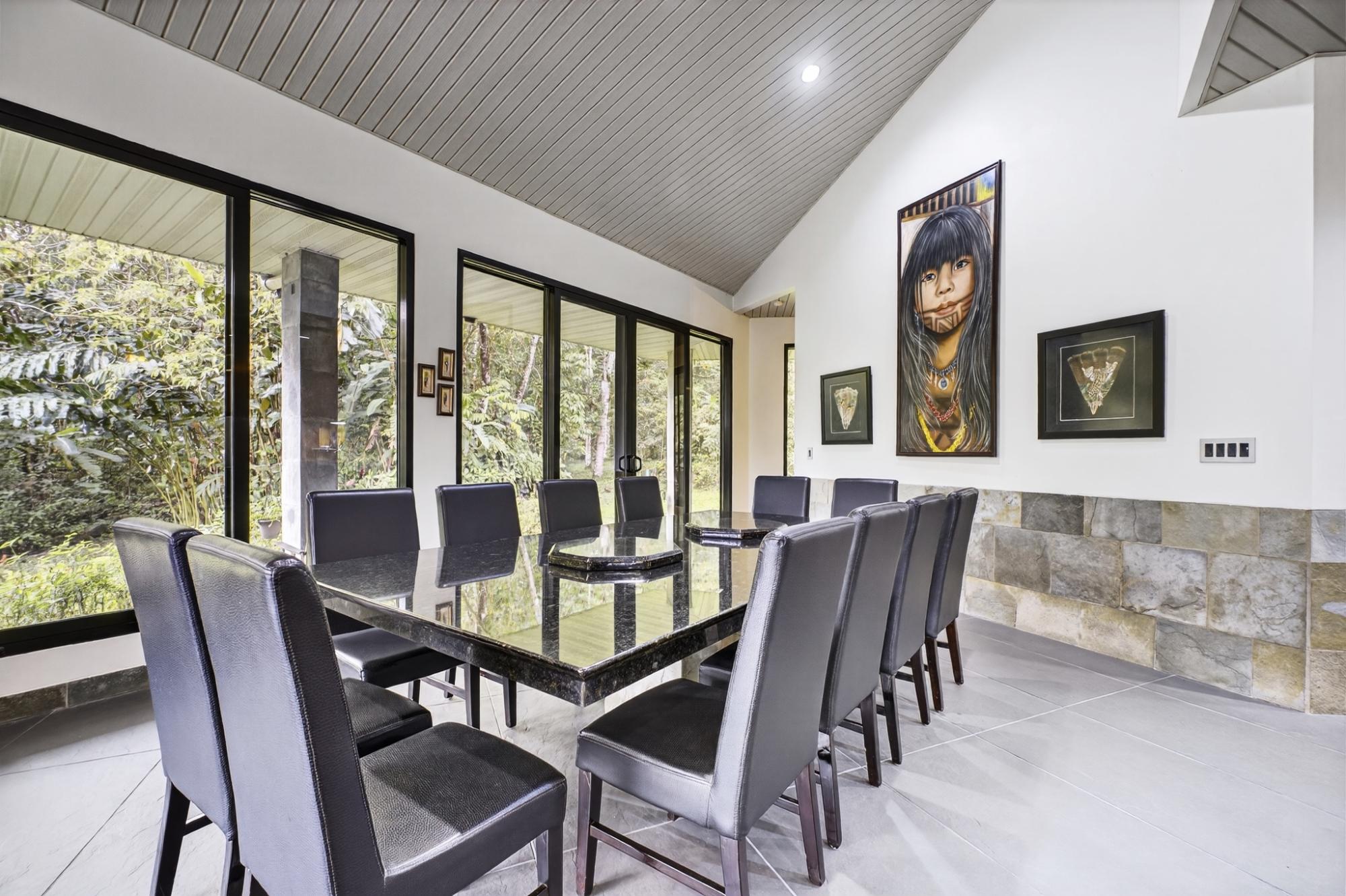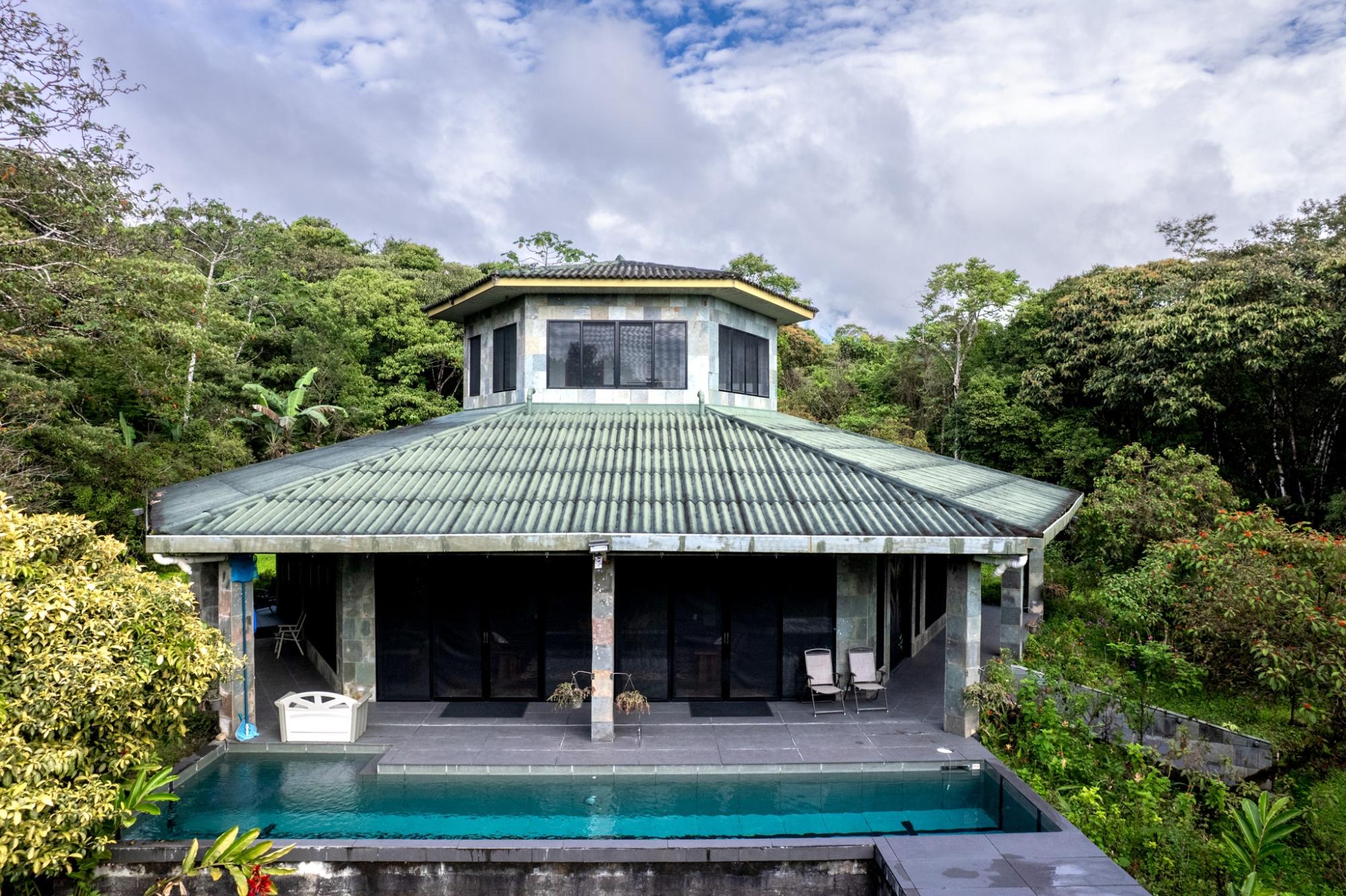 Nature Lover’s Paradise. Ideally located between Boquete, David, and Volcán, this private estate offers a contemporary 3B/3B home with pool surrounded by extraordinary biodiversity. Enjoy 2.5 miles of nature trails, a waterfall, tilapia pond, and approx. 1,820 meters of river and stream frontage. The property is a documented haven for 341+ bird species and 537+ butterfly species. The home features large windows for natural light and breezes, a wraparound covered terrace, ceiling fans, and low-maintenance design. Spacious kitchen with oversized fridge and freezer, double oven, and abundant cabinetry. Office with granite workspaces and floor-to-ceiling shelving. Master suite with double shower and oversized walk-in closet beside laundry. Garage with storage, sinks, and cooking space. Workshop, greenhouse, composting system, water tanks, filtration, and whole-house generator. Fruit trees and a perfect, temperate elevation complete this unique lifestyle property. *The adjoining finca is also available in addition to the finca in this listing. Inquire for details.