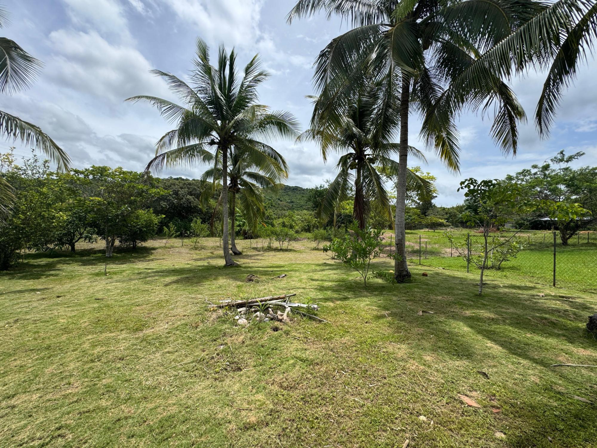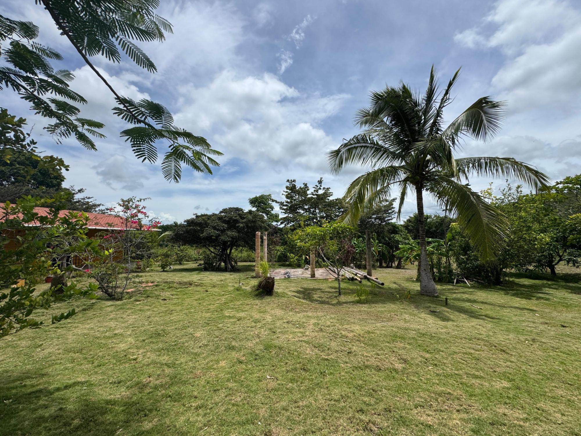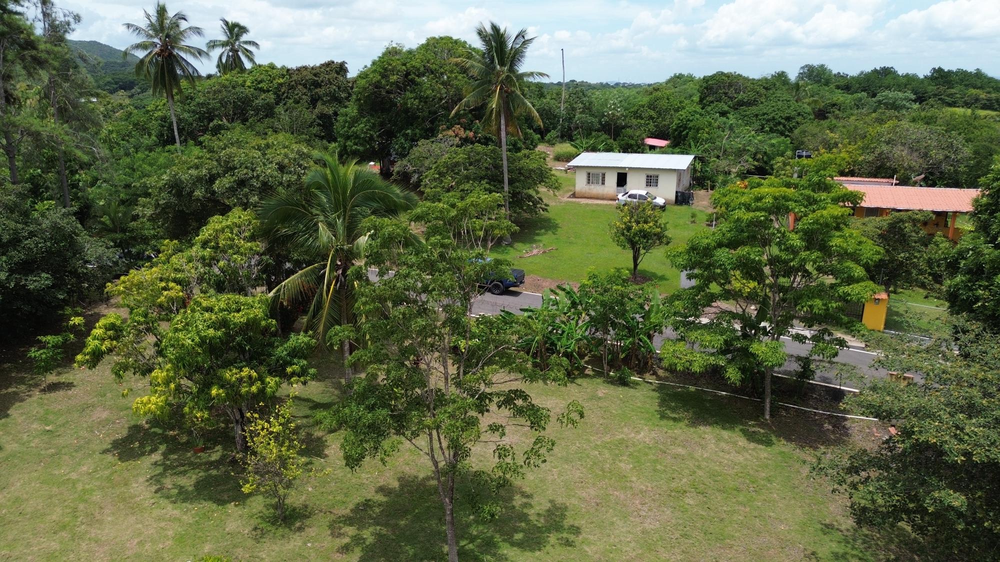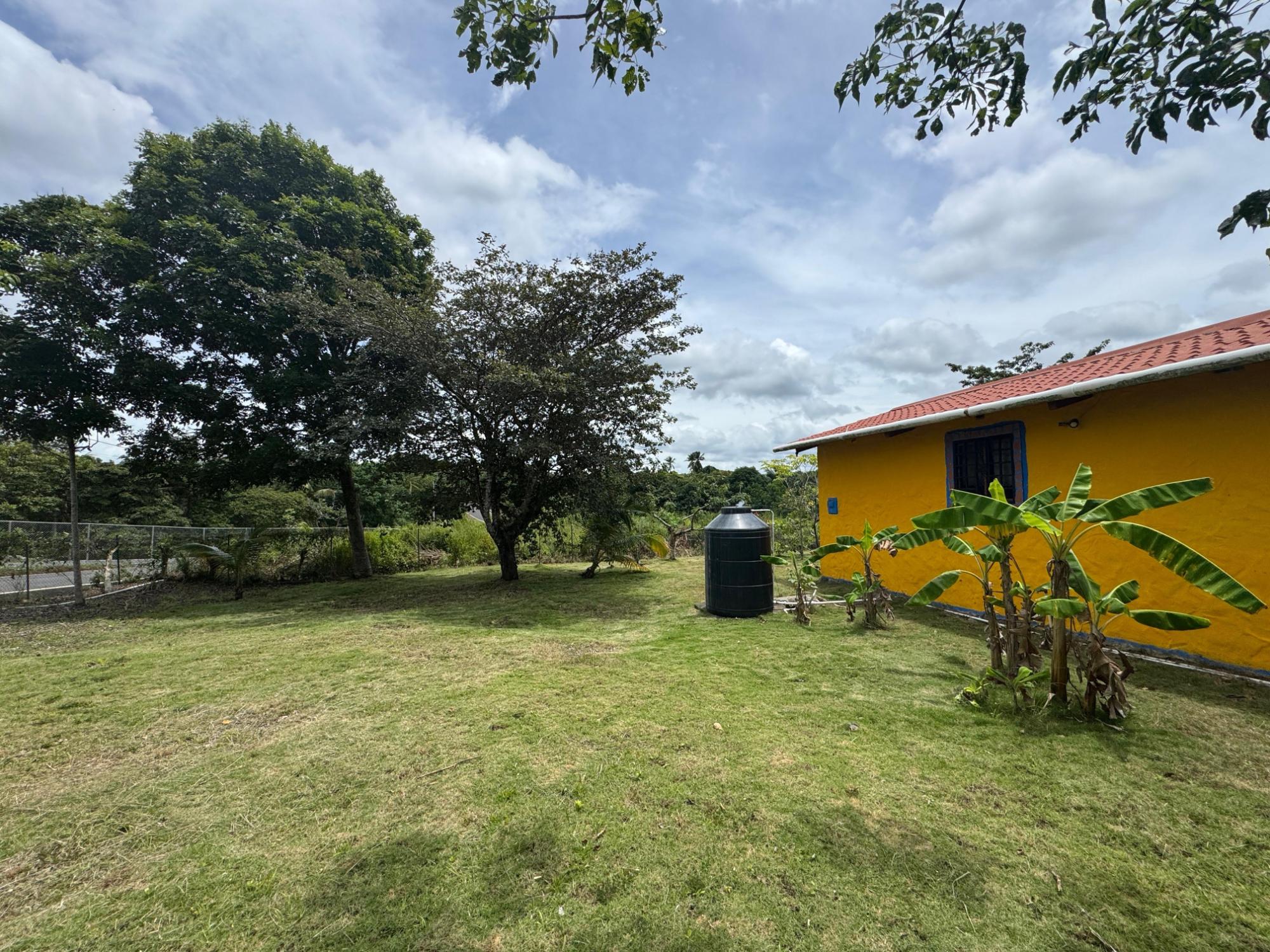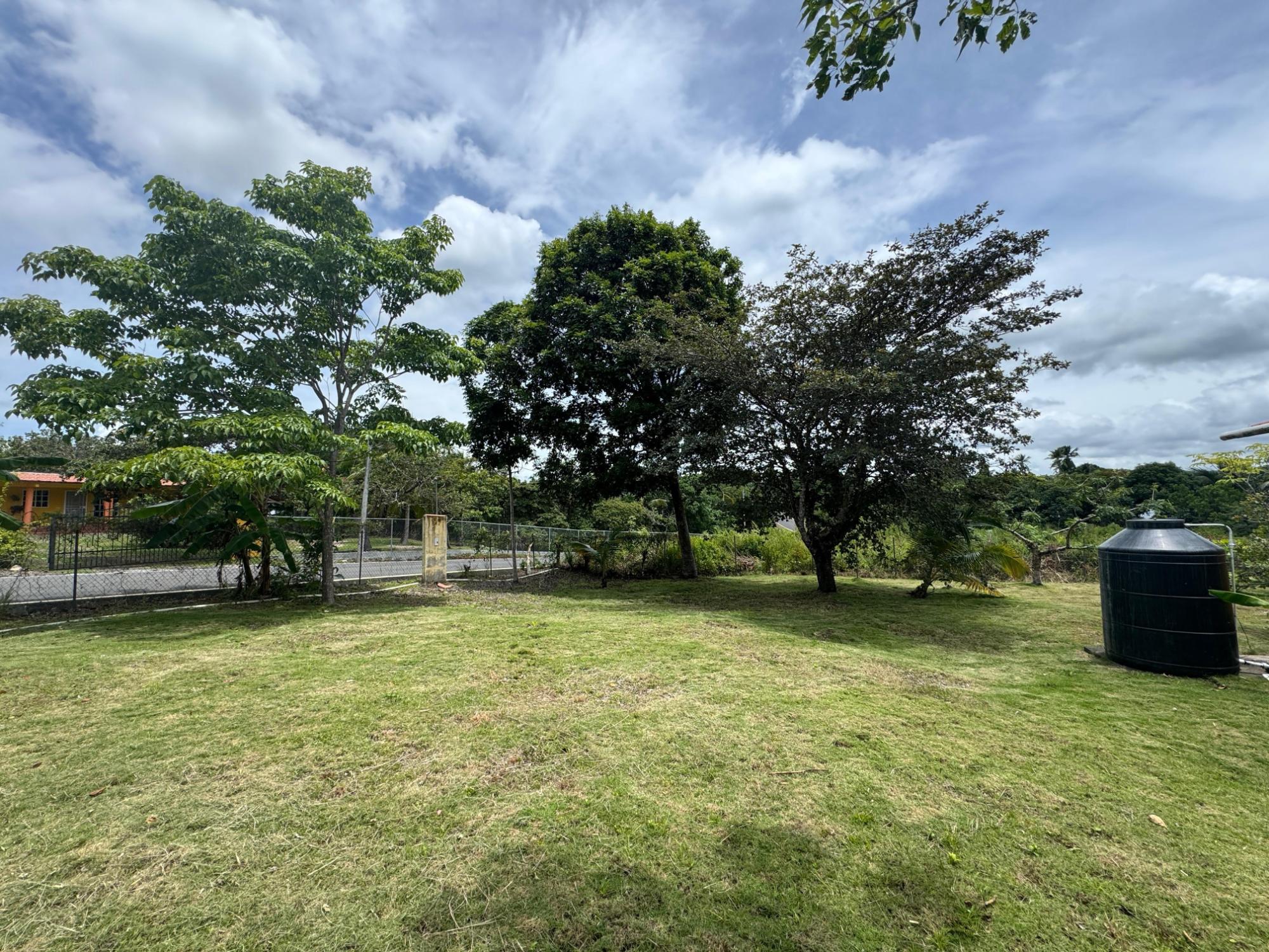 This 2,856 m² property is located in Calle Sardina, within the Barriada Sardina area of Penonomé, Coclé Province. It has direct frontage on a paved road and is just 8 km from the center of Penonomé, making it easily accessible while still offering a rural lifestyle. Land and Outdoor Features The flat terrain is fully fenced and features an established variety of fruit and ornamental trees, including mango, citrus, nance, banana, plantain, and coconut. The property also has open green areas for planting or additional construction. From the lot, you can enjoy views of the nearby mountains, and the Zaratí River is just a few minutes’ walk away. Existing Structures A small, simple country house is on the property, painted in vibrant colors and equipped with security bars. It includes one bedroom, one bathroom, and a kitchen with a dining area. A covered porch extends along the front of the house, offering a shaded spot to enjoy the landscape. Additionally, there is a rustic outdoor cooking area with a built-in barbecue under a roofed structure, as well as a water storage tank