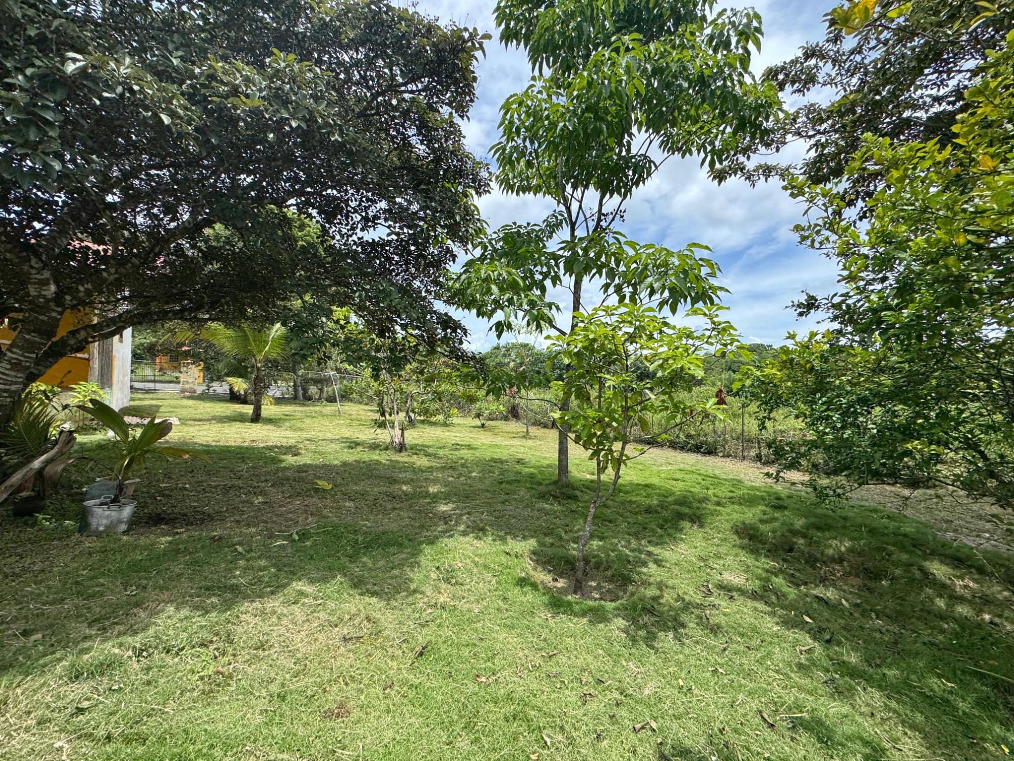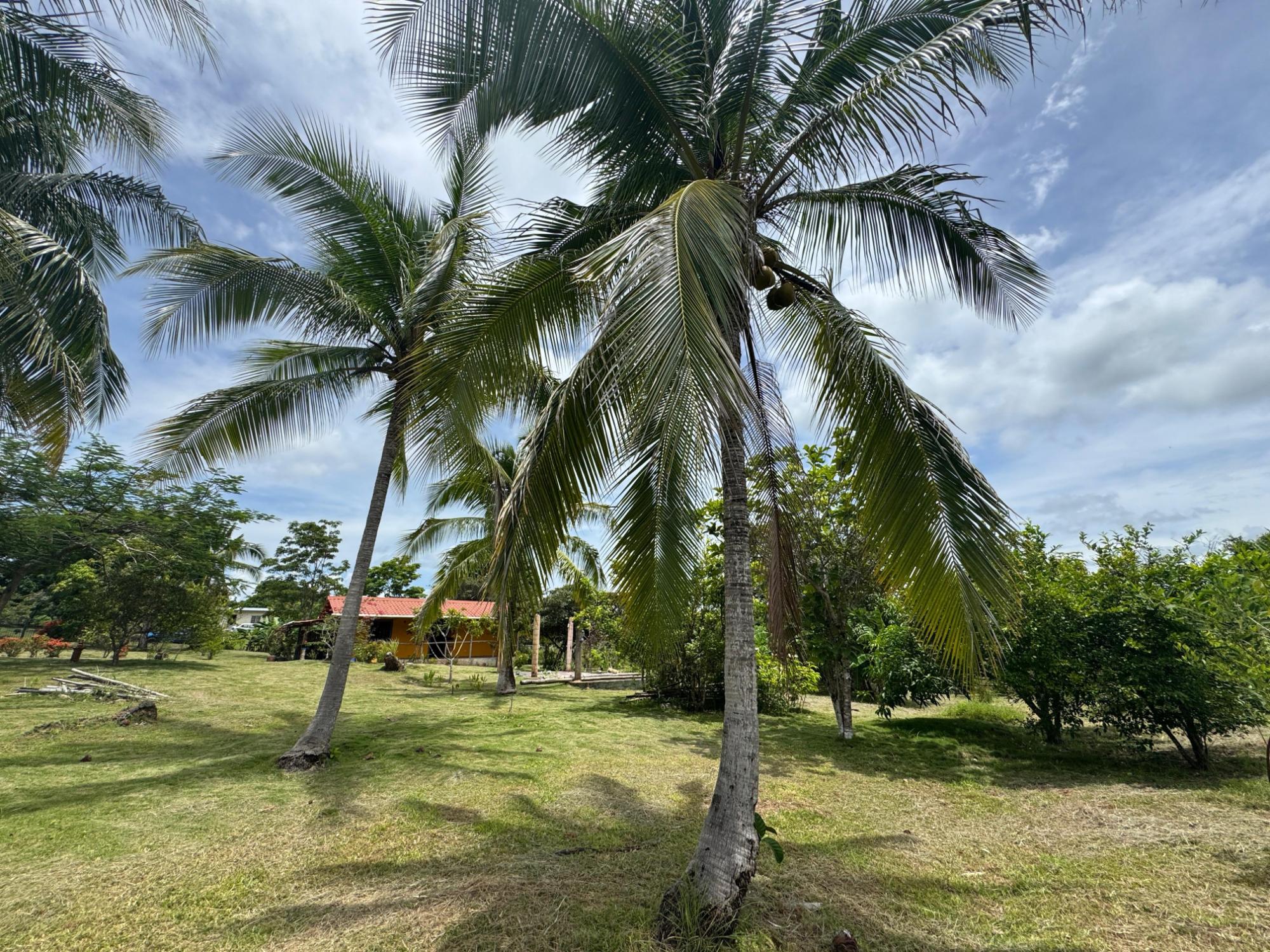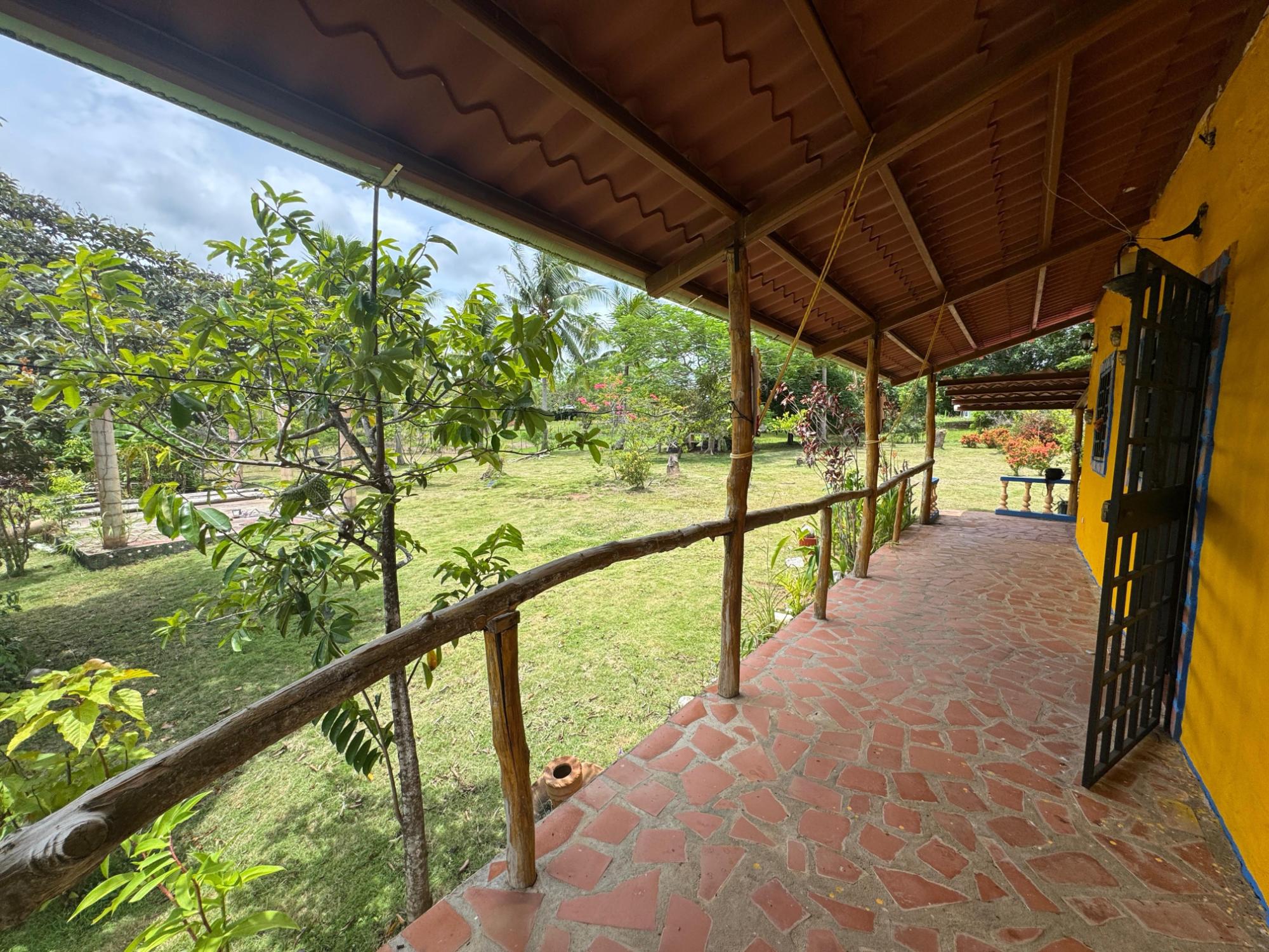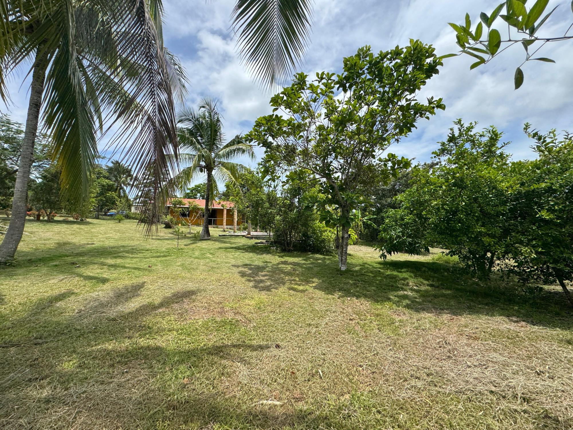 This 2,856 m² property is located in Calle Sardina, within the Barriada Sardina area of Penonomé, Coclé Province. It has direct frontage on a paved road and is just 8 km from the center of Penonomé, making it easily accessible while still offering a rural lifestyle. Land and Outdoor Features The flat terrain is fully fenced and features an established variety of fruit and ornamental trees, including mango, citrus, nance, banana, plantain, and coconut. The property also has open green areas for planting or additional construction. From the lot, you can enjoy views of the nearby mountains, and the Zaratí River is just a few minutes’ walk away. Existing Structures A small, simple country house is on the property, painted in vibrant colors and equipped with security bars. It includes one bedroom, one bathroom, and a kitchen with a dining area. A covered porch extends along the front of the house, offering a shaded spot to enjoy the landscape. Additionally, there is a rustic outdoor cooking area with a built-in barbecue under a roofed structure, as well as a water storage tank