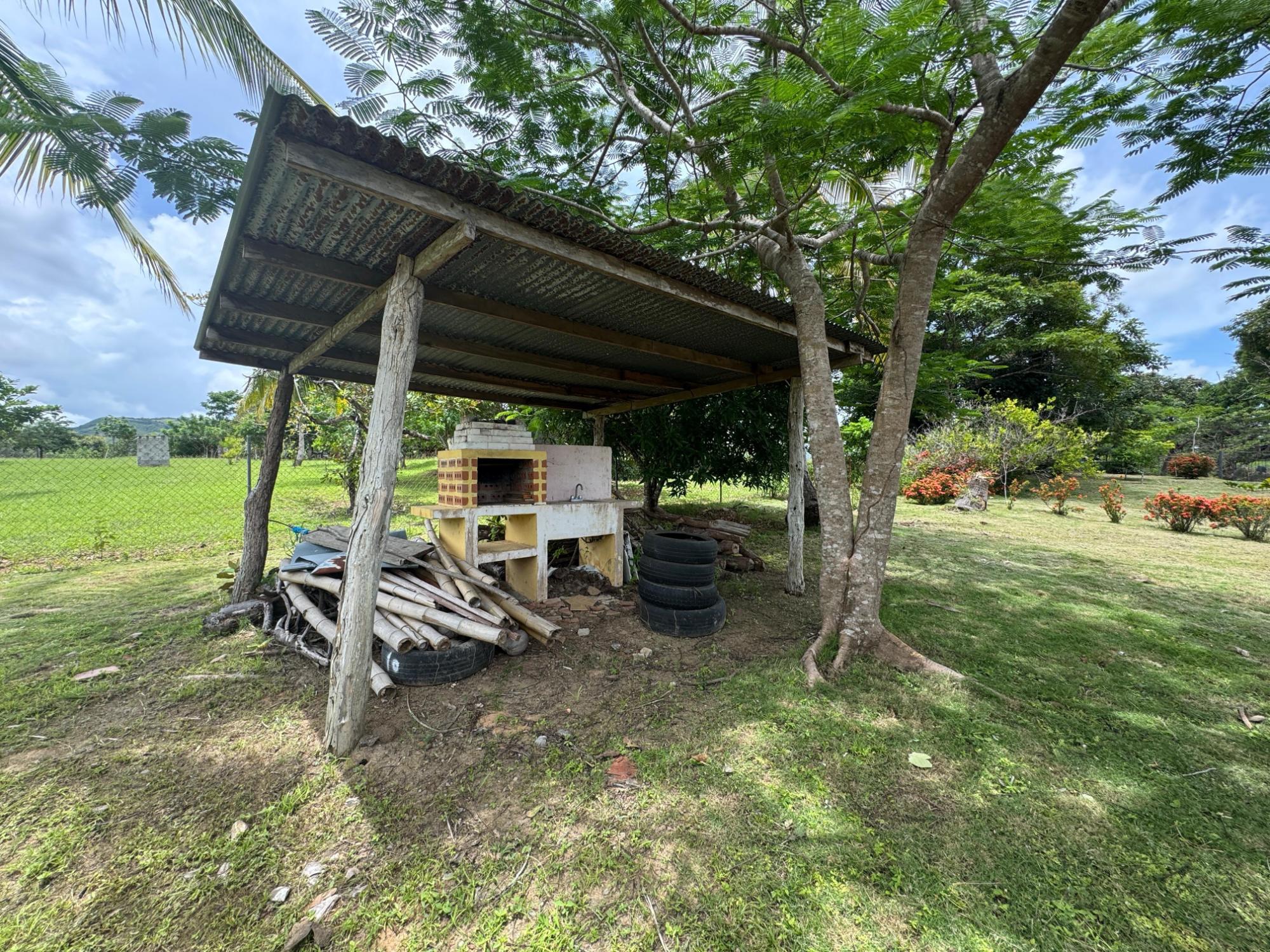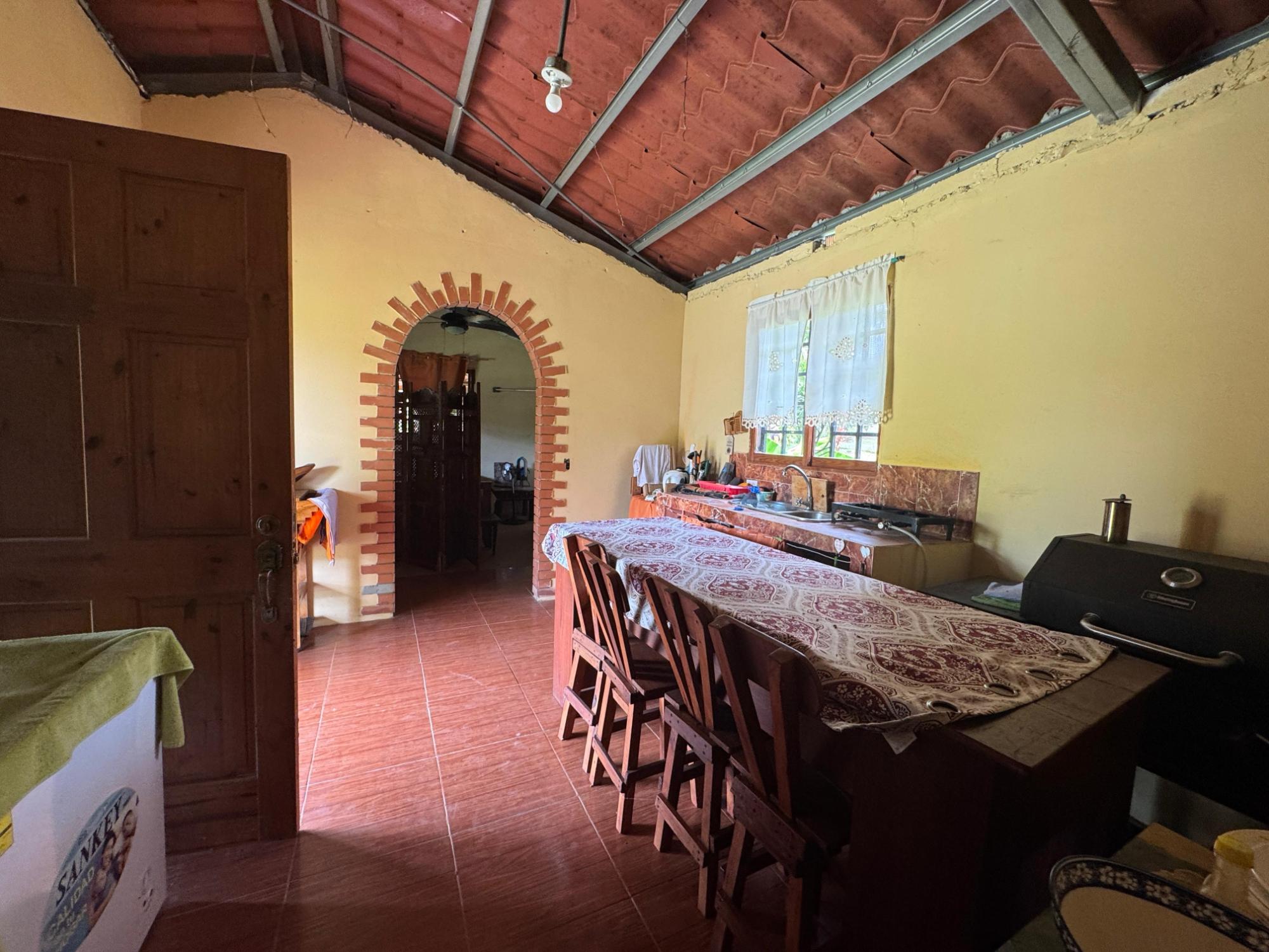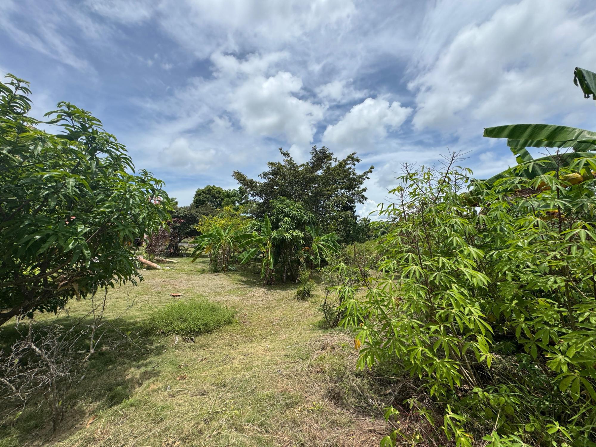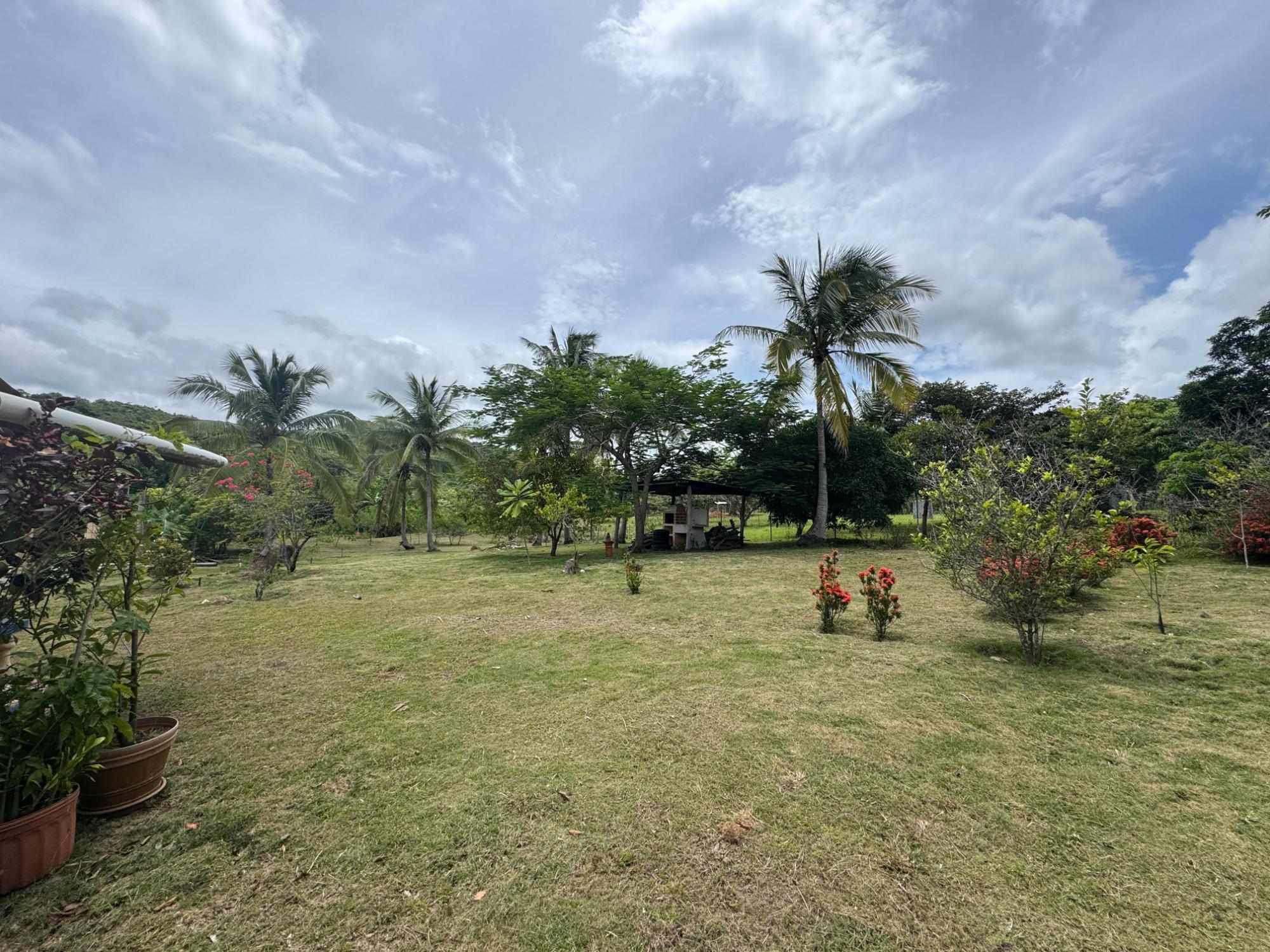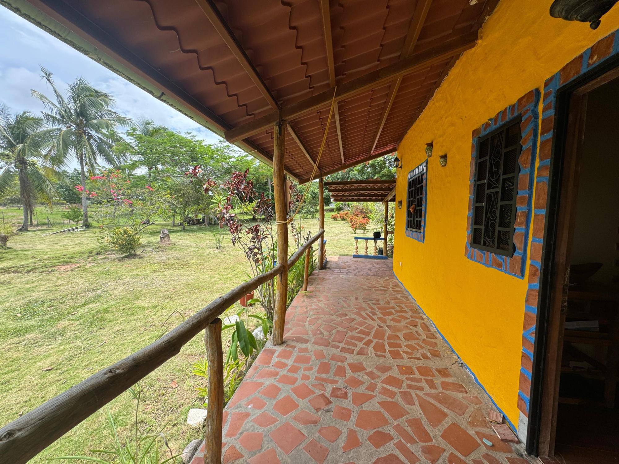 This 2,856 m² property is located in Calle Sardina, within the Barriada Sardina area of Penonomé, Coclé Province. It has direct frontage on a paved road and is just 8 km from the center of Penonomé, making it easily accessible while still offering a rural lifestyle. Land and Outdoor Features The flat terrain is fully fenced and features an established variety of fruit and ornamental trees, including mango, citrus, nance, banana, plantain, and coconut. The property also has open green areas for planting or additional construction. From the lot, you can enjoy views of the nearby mountains, and the Zaratí River is just a few minutes’ walk away. Existing Structures A small, simple country house is on the property, painted in vibrant colors and equipped with security bars. It includes one bedroom, one bathroom, and a kitchen with a dining area. A covered porch extends along the front of the house, offering a shaded spot to enjoy the landscape. Additionally, there is a rustic outdoor cooking area with a built-in barbecue under a roofed structure, as well as a water storage tank