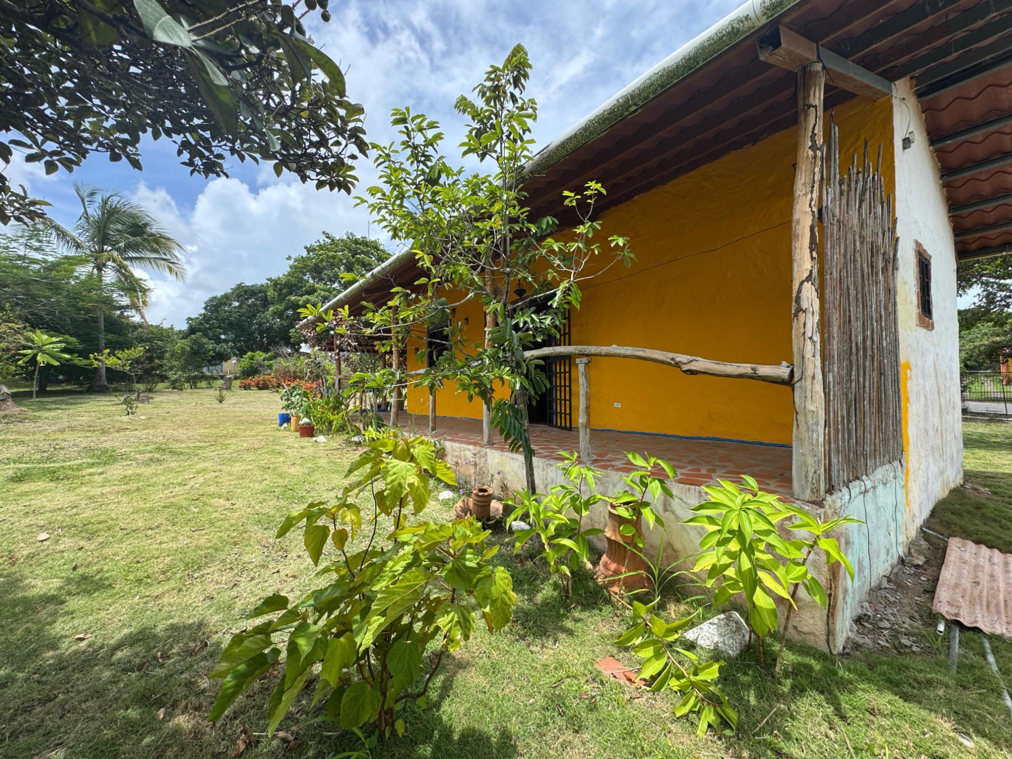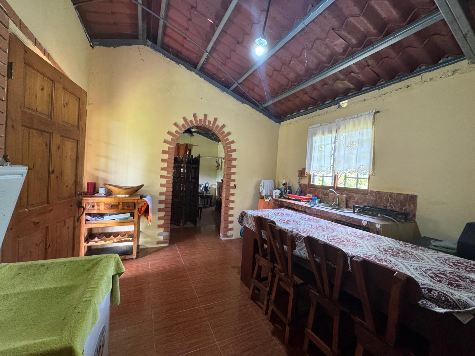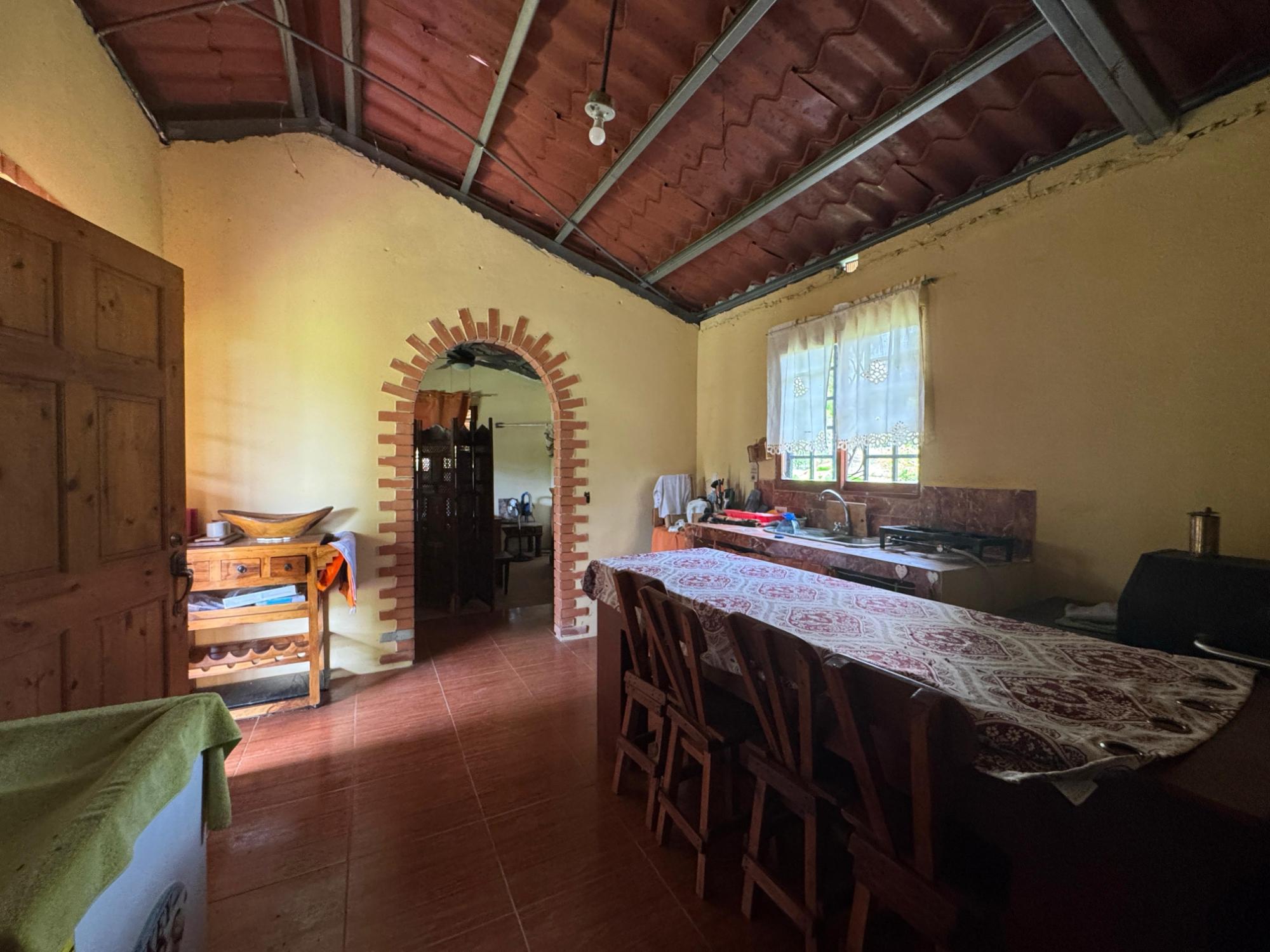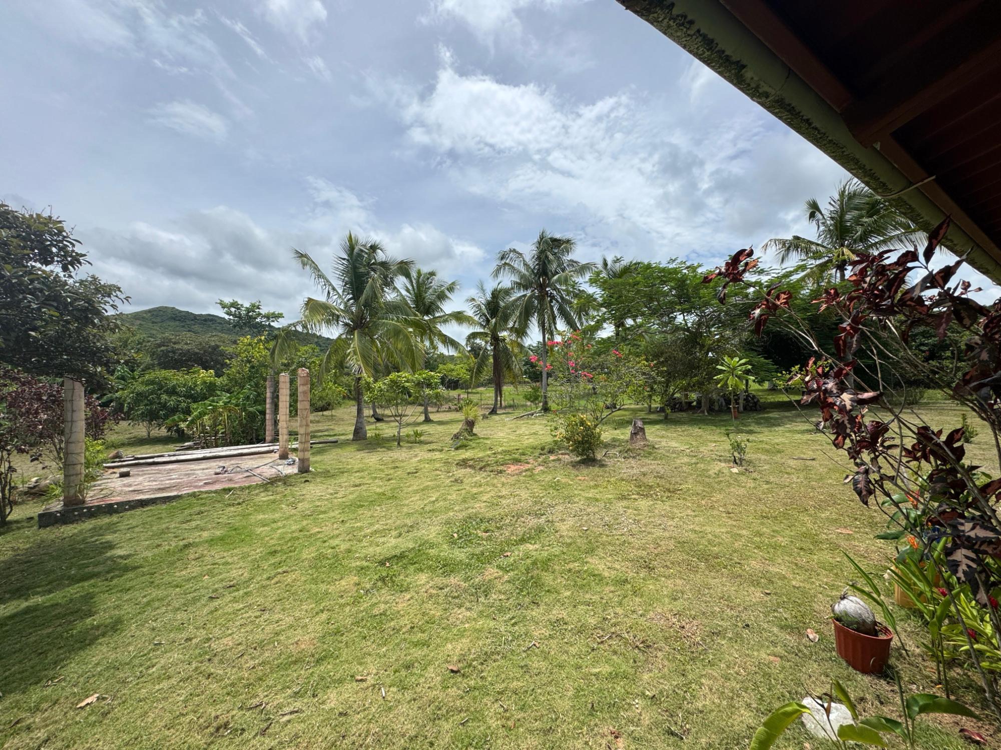This 2,856 m² property is located in Calle Sardina, within the Barriada Sardina area of Penonomé, Coclé Province. It has direct frontage on a paved road and is just 8 km from the center of Penonomé, making it easily accessible while still offering a rural lifestyle. Land and Outdoor Features The flat terrain is fully fenced and features an established variety of fruit and ornamental trees, including mango, citrus, nance, banana, plantain, and coconut. The property also has open green areas for planting or additional construction. From the lot, you can enjoy views of the nearby mountains, and the Zaratí River is just a few minutes’ walk away. Existing Structures A small, simple country house is on the property, painted in vibrant colors and equipped with security bars. It includes one bedroom, one bathroom, and a kitchen with a dining area. A covered porch extends along the front of the house, offering a shaded spot to enjoy the landscape. Additionally, there is a rustic outdoor cooking area with a built-in barbecue under a roofed structure, as well as a water storage tank