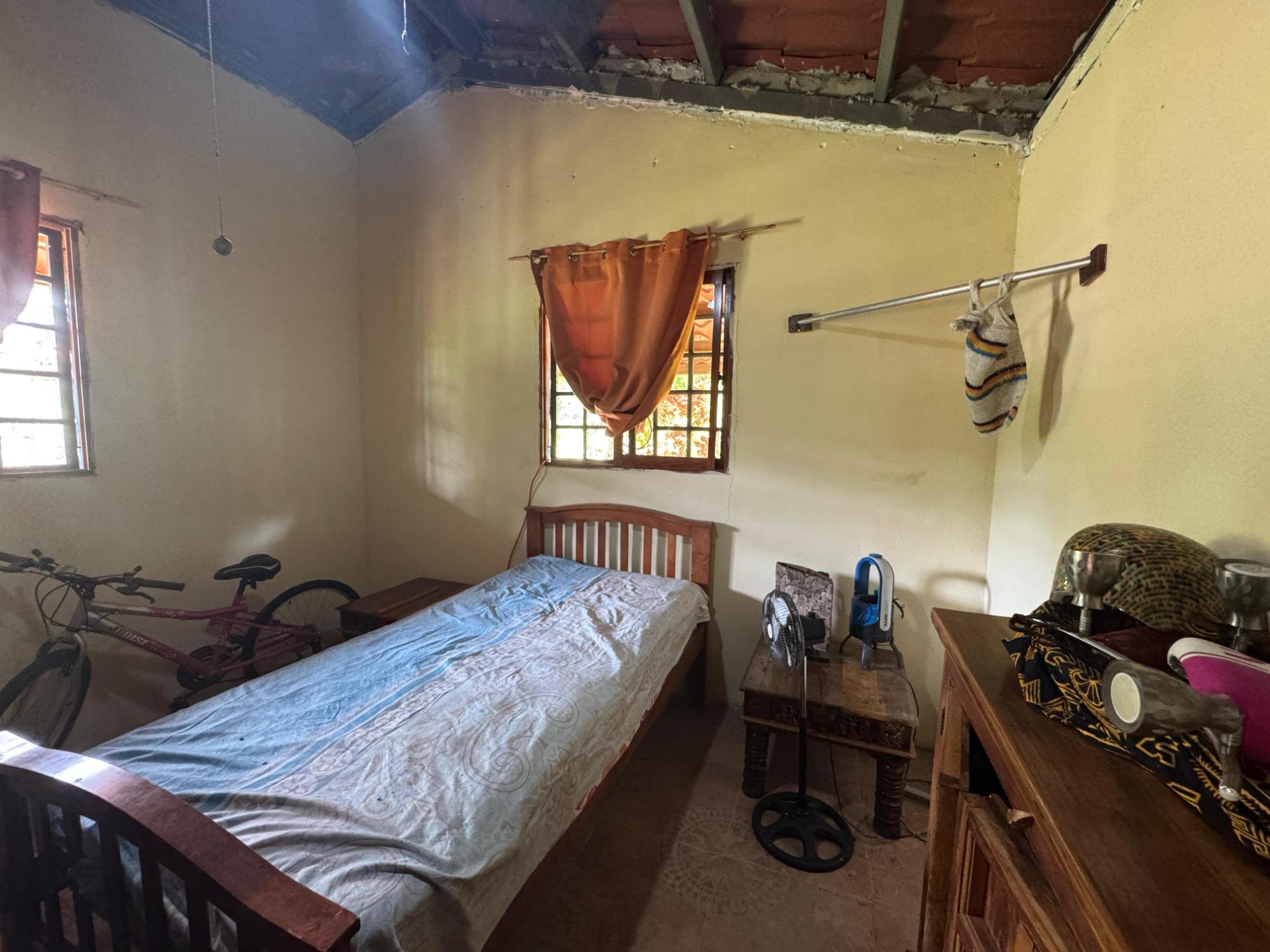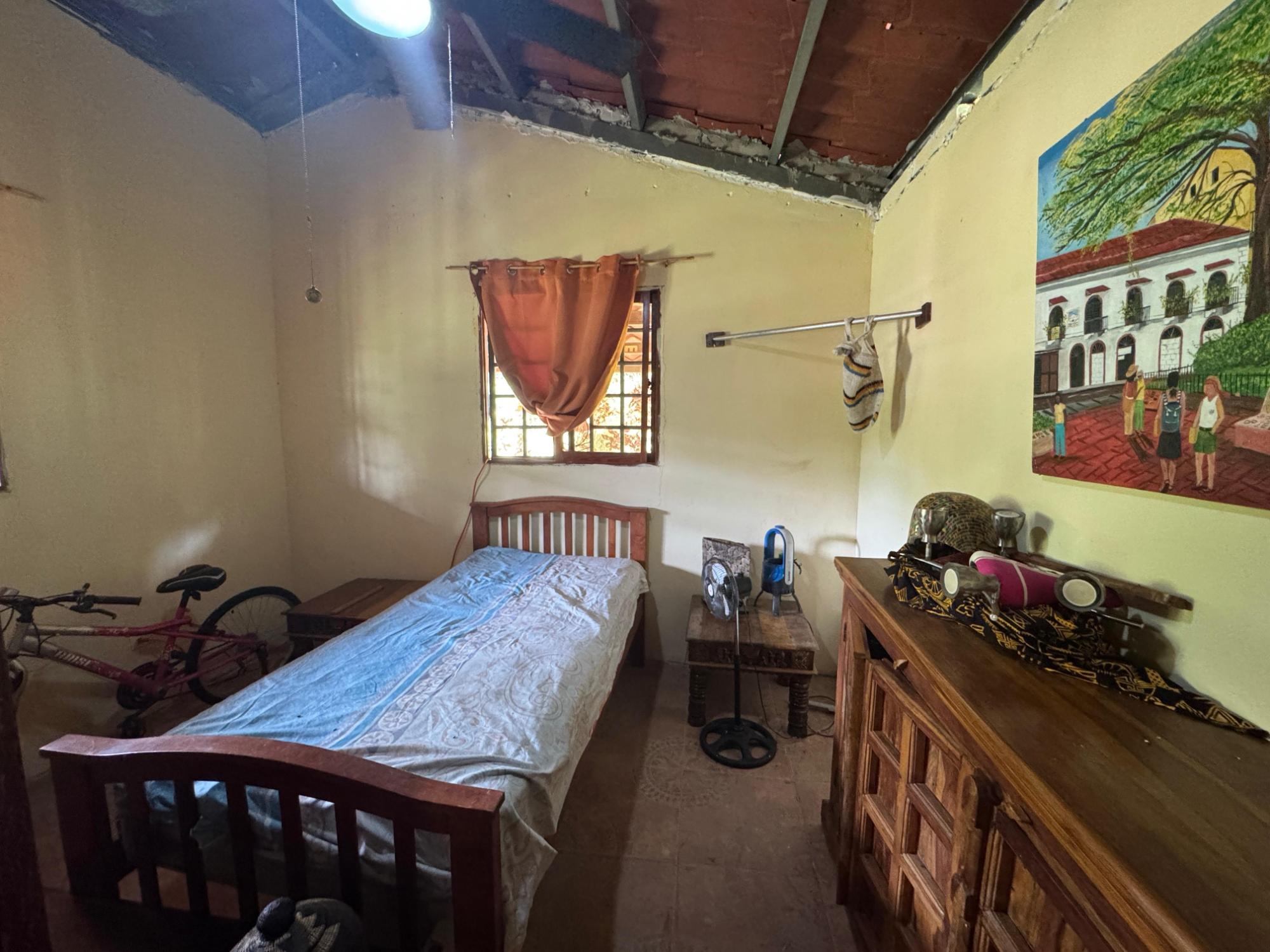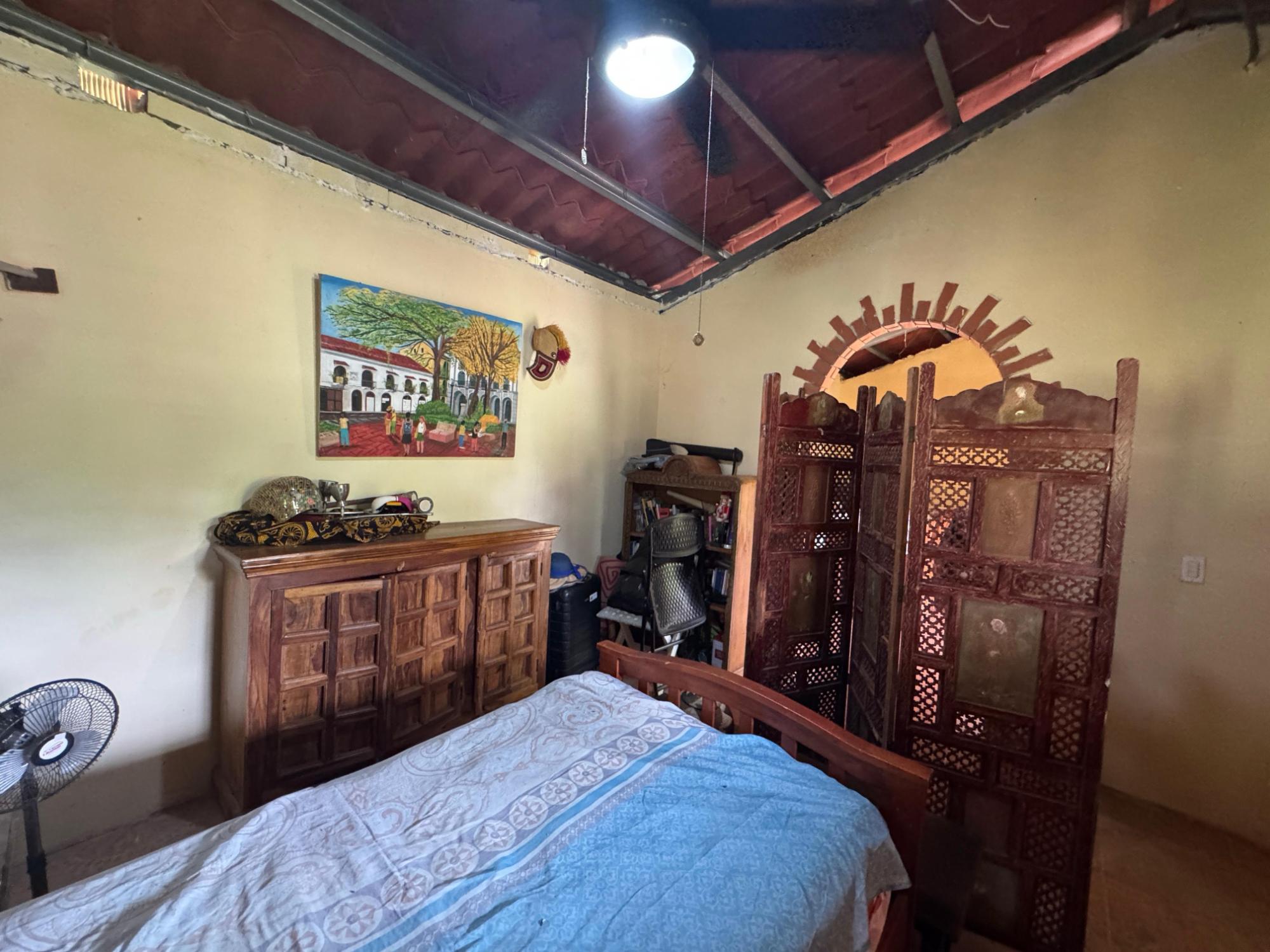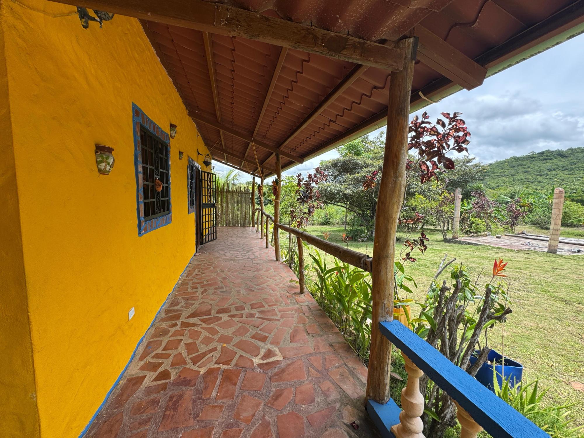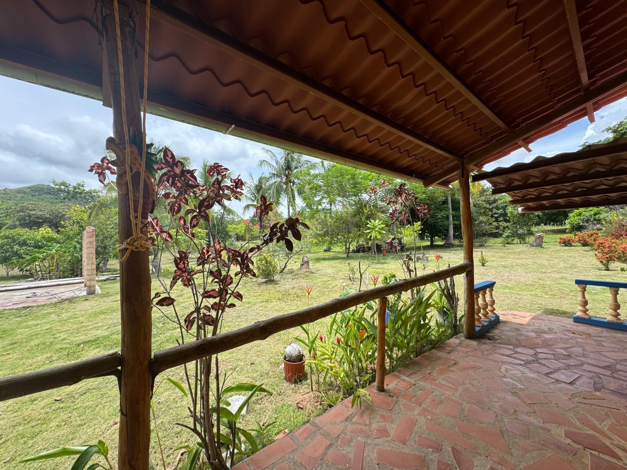 This 2,856 m² property is located in Calle Sardina, within the Barriada Sardina area of Penonomé, Coclé Province. It has direct frontage on a paved road and is just 8 km from the center of Penonomé, making it easily accessible while still offering a rural lifestyle. Land and Outdoor Features The flat terrain is fully fenced and features an established variety of fruit and ornamental trees, including mango, citrus, nance, banana, plantain, and coconut. The property also has open green areas for planting or additional construction. From the lot, you can enjoy views of the nearby mountains, and the Zaratí River is just a few minutes’ walk away. Existing Structures A small, simple country house is on the property, painted in vibrant colors and equipped with security bars. It includes one bedroom, one bathroom, and a kitchen with a dining area. A covered porch extends along the front of the house, offering a shaded spot to enjoy the landscape. Additionally, there is a rustic outdoor cooking area with a built-in barbecue under a roofed structure, as well as a water storage tank
