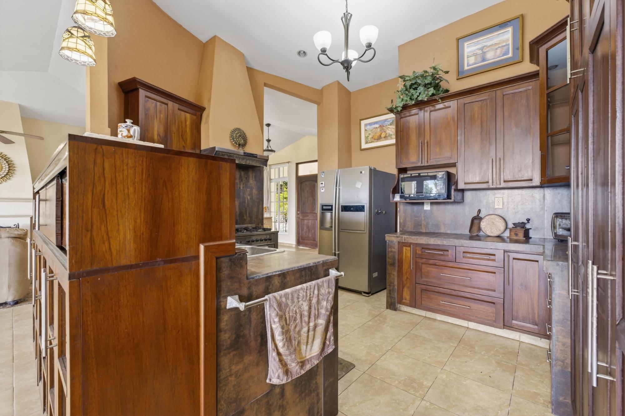 Hacienda La Joya is a beautiful 5-hectare rural estate located in Potrerillos Rovira, ideal for horse lovers or those seeking a peaceful country lifestyle. The furnished 3-bedroom main home features an open floor plan with a lovely fireplace, a custom wood kitchen with excellent storage, and a formal dining area. A covered terrace spans the entire back of the home, offering stunning, expansive views. The spacious master suite includes a rare ensuite bathroom with soaking tub and a walk-in closet. One bedroom is currently used as an office and the third serves as a guest room. The hallway provides ample built-in cabinetry for linens and storage. Just steps away is a charming one-bedroom casita with its own covered terrace, perfect for guests, extended family, or rental income. Originally built as a dream home by a former polo player, this special property is now ready for its next chapter.