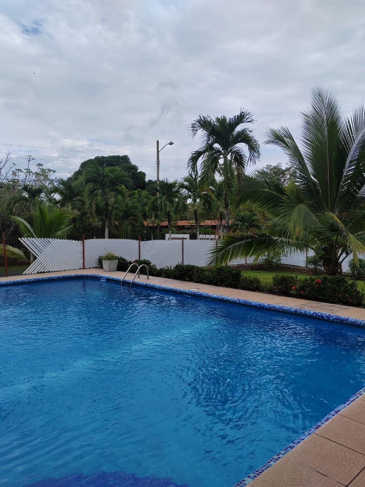 300 sq m property with a pool and ample amenities. It features a terrace, a thatched gazebo, a storage room, a laundry room, and covered parking for 2-3 cars. The property is fully fenced, including an electric gate, an internal pet fence, and a water well. It has a 58.5 sq m pool, fruit trees, palm trees, and established gardens. The house offers 3 bedrooms with wooden closets and air conditioning, a kitchen with wooden cabinets, a living room, a dining room, and bathrooms with floor-to-ceiling ceramic tile. Located in Las Uvas, 3.9 km from beaches such as Playa Grande, Los Panamá, and Río Mar. The area has mini-markets, gas stations, pharmacies, clinics, restaurants, and schools nearby. Rent-to-own option: $1,500/month. Requirements: first month’s rent, last month’s rent, and two security deposits; proof of income. Sale with flexible payments: $250,000 with 10% annual interest on the outstanding balance.