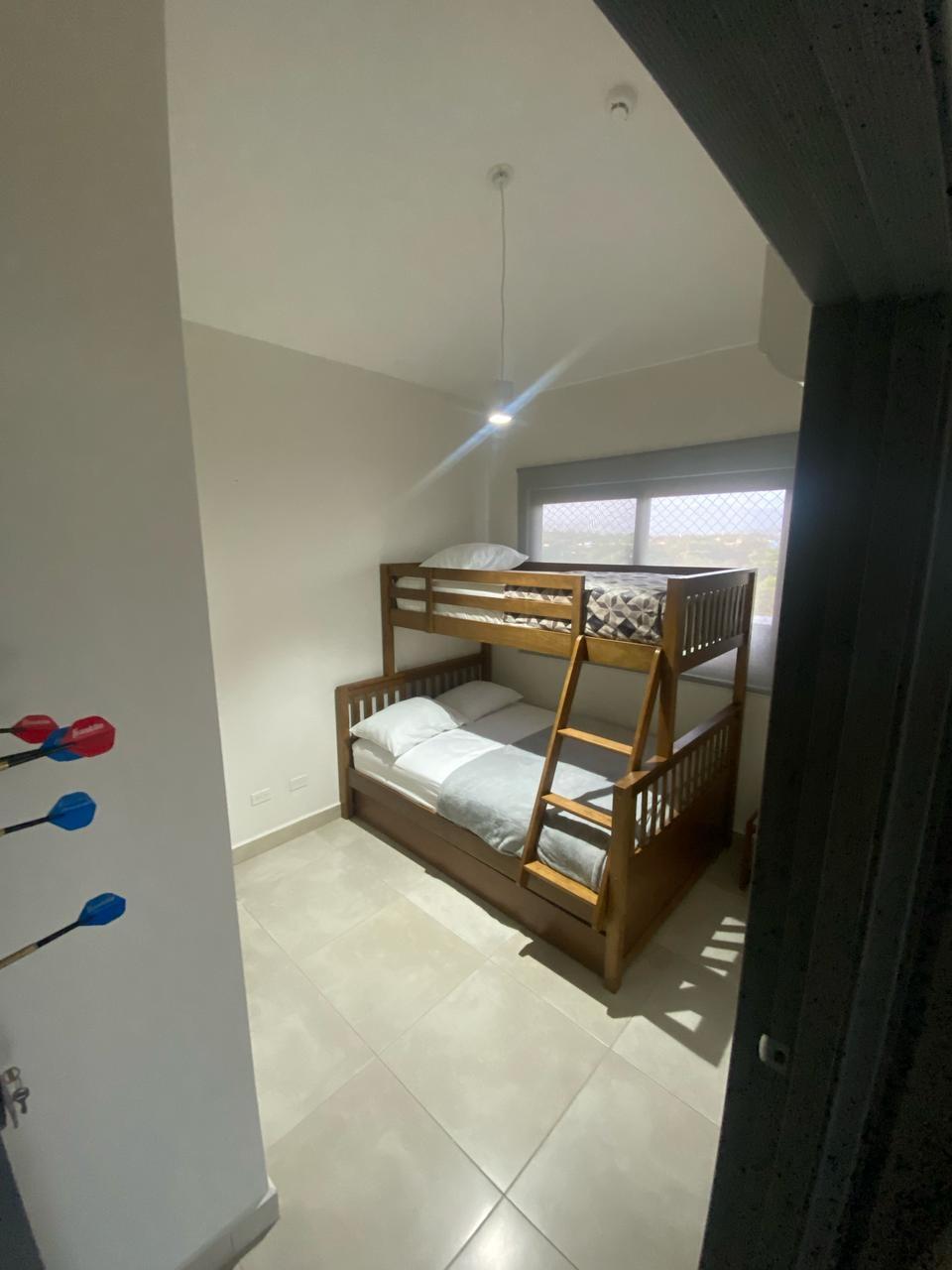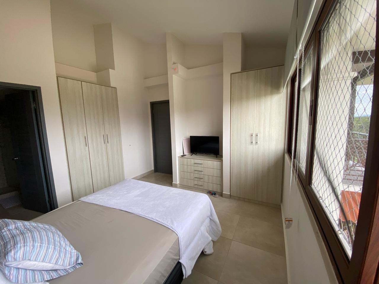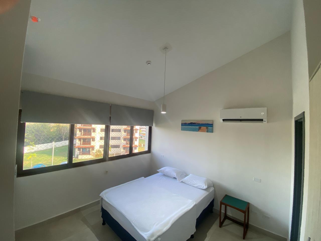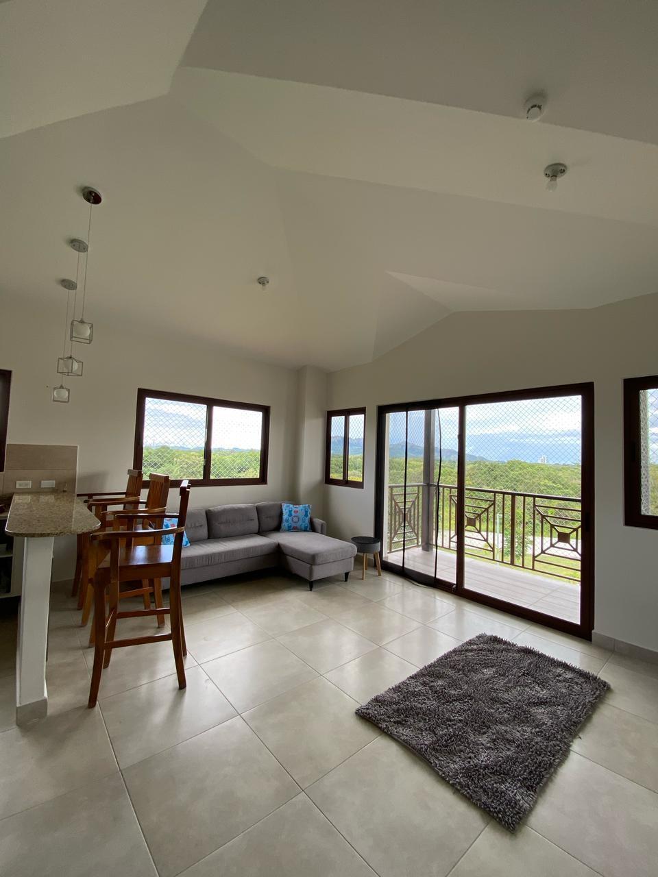 Apartment with mountain views and minimalist decor. The placement of windows and doors allows for cross-ventilation, making it a cool apartment. This is where the tower’s name, Alisios, comes from.