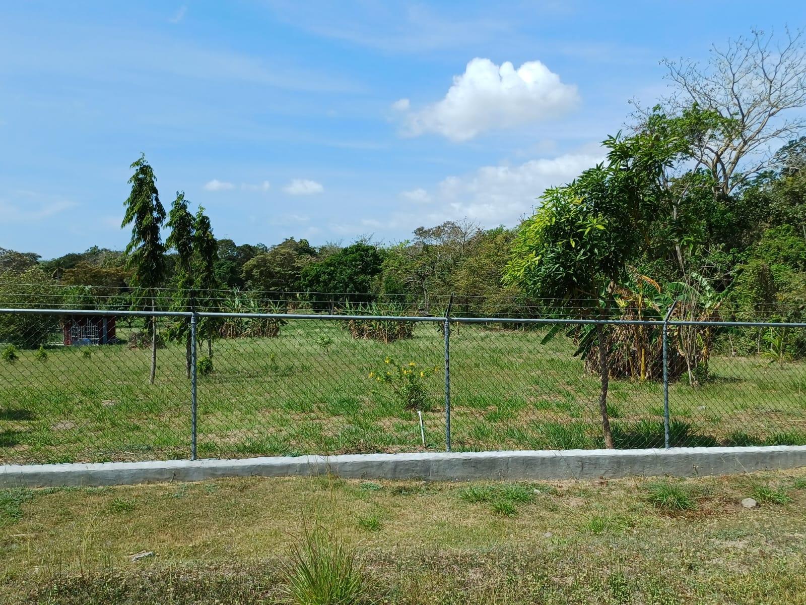 10,963.24 m2 plot in a private and quiet area, almost flat, with trees and plants, with a cyclone fence and a small storage room.