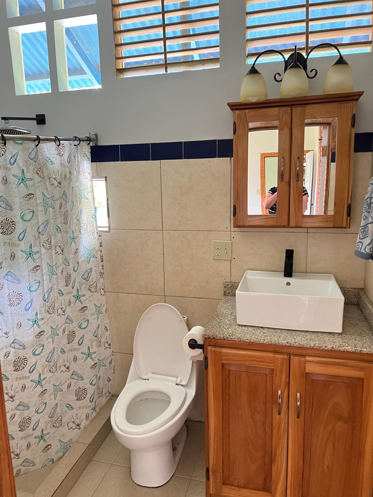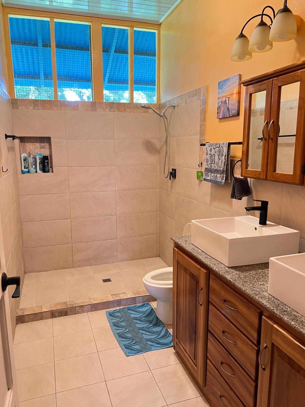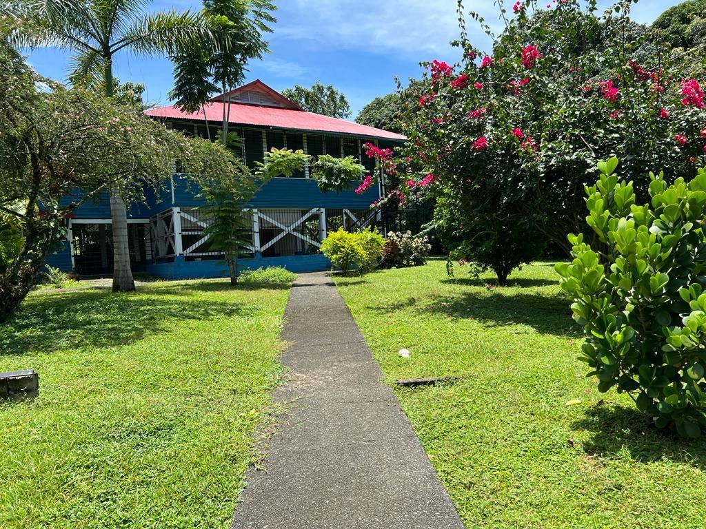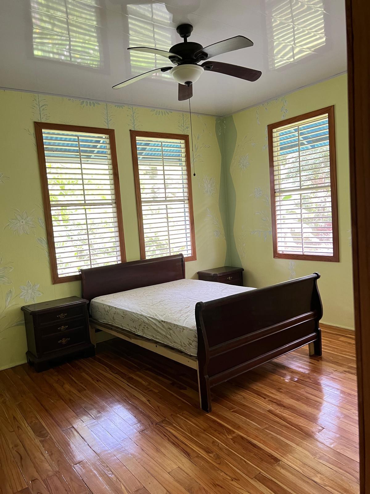 Beautifully Restored Classic Plantation Home in Puerto Armuelles Painstakingly updated to modern standards while maintaining the elegance and charm of the original 1940’s post and beam construction. The 2118 square foot main floor has three bedrooms and two full baths, with a fully equipped one bedroom and one bathroom apartment downstairs. The large kitchen has a central island, breakfast bar, tile floors and expansive storage cabinets of native teak. The upper living areas of the house are graced with beautiful new hardwood floors. The house is designed to take advantage of the Pacific breeze–you can even hear the whisper of the waves from the house. Windows cover most of the external walls, with ceiling fans in every room. The three bedrooms are spacious and the ceilings are 9 feet throughout the house, giving even more of an open feeling. The home comes partly furnished. The lower level features a one bedroom, 1 bath air-conditioned guest quarters with a large indoor laundry room and new teak closets. The apartment has been rented for $500 per month, so it can be used for income or as a guest quarters. The apartment comes partly furnished. Modern amenities such as phone, satellite TV, and DSL hook-up are available. A reserve water tank with a pressurized pump system ensures you will always have plenty of water. The property is landscaped and there is an automatic electric gate at the driveway entrance.