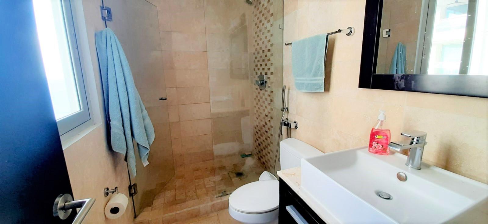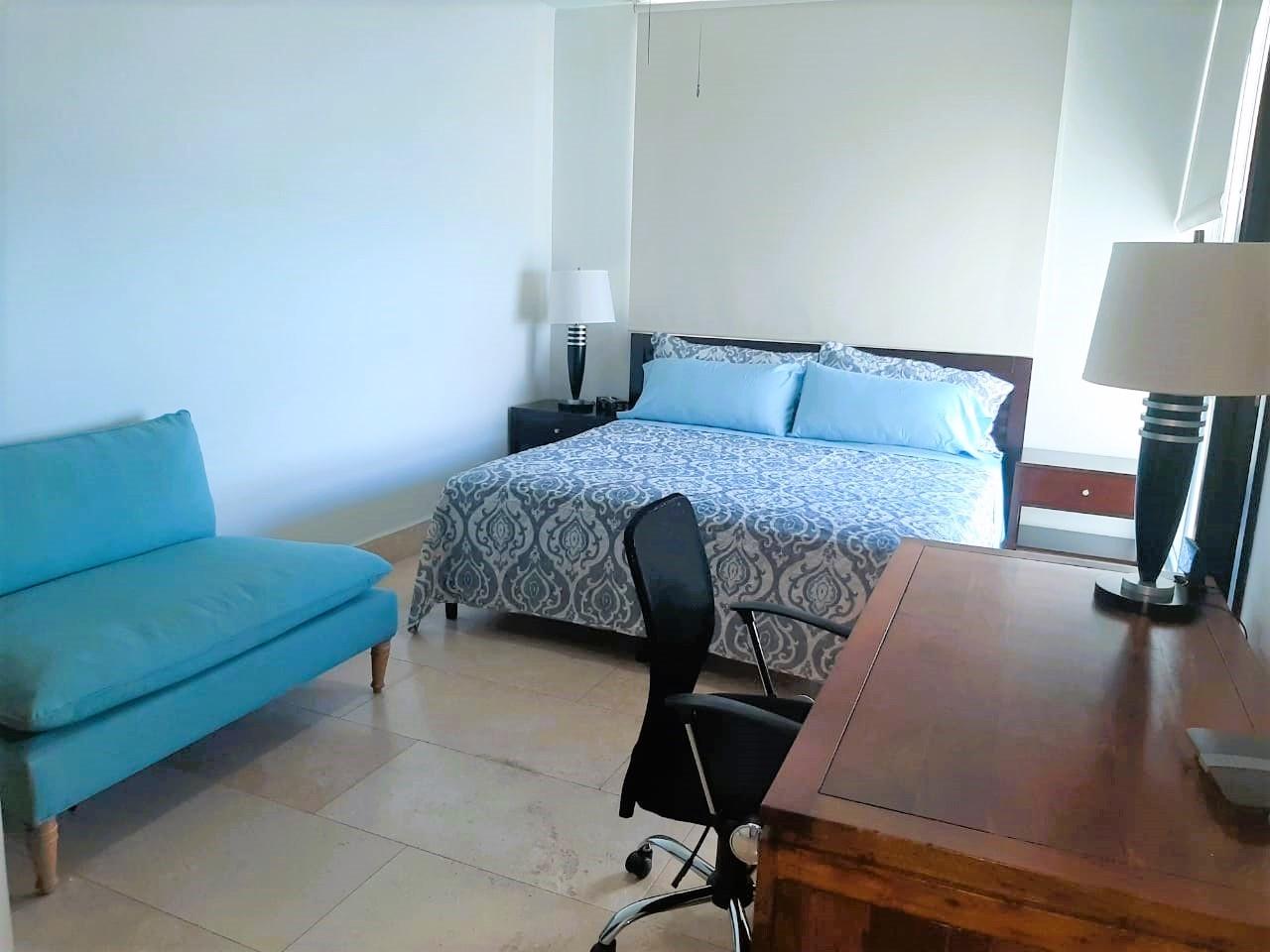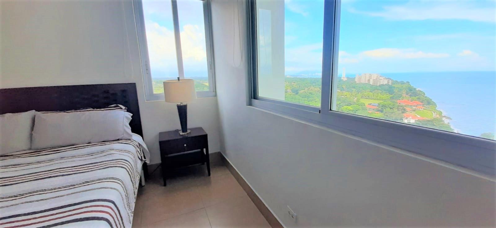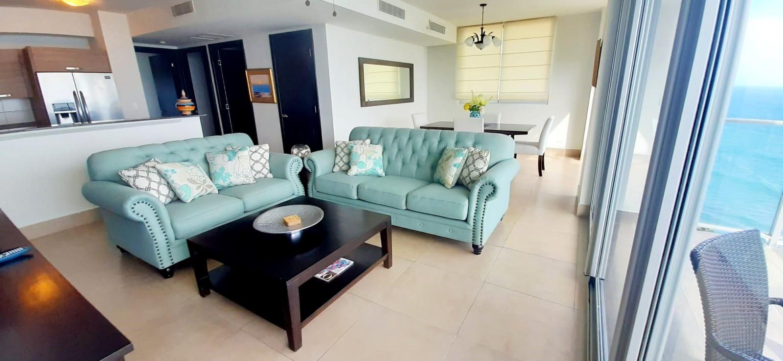 At Rio Mar Ocean view condo you will love the wide ocean views. Also, this condo is very tastefully and comfortably furnished with elegant aqua and dark wood. Moreover, both bedrooms come with a king-size bed as well as an ensuite bathroom. Furthermore, the living area is an open concept with views straight out to the Pacific Ocean! The kitchen has granite countertops, and stainless steel appliances, including a dishwasher. The living room has floor-to-ceiling sliding glass doors that open wide to the balcony which overlooks the pools and ocean. Every room has a beautiful view of the ocean in this apartment and the bedrooms offer views of the mountains also. Other Features: Granite counter tops in the kitchen Stainless steel appliances, a dishwasher floor-to-ceiling sliding glass doors Ocean as well as mountain views Built in 2013 Underground parking space Furniture included About Rio Mar: Rio Mar is one of Panama´s preferred beach development. It offers great amenities which include a nice restaurant opened 6 days a week, a gymnasium, SPA, kid’s playgrounds, lounge room with pool table and bar. Also, several swimming pools including a saltwater swimming pool. Very important, there is 24/7 gated/guarded security, and a 24/7 concierge. Also, two direct access paths to the beach. Rio Mar is near one of the best surfing beaches on the Pacific Coast, El Palmar. Moreover, Rio Mar Resort is less than 2 miles from the town of San Carlos. In this town, there are grocery stores, a 24-hour hospital, a farmers market, a fish market, and more restaurants also, among other facilities.