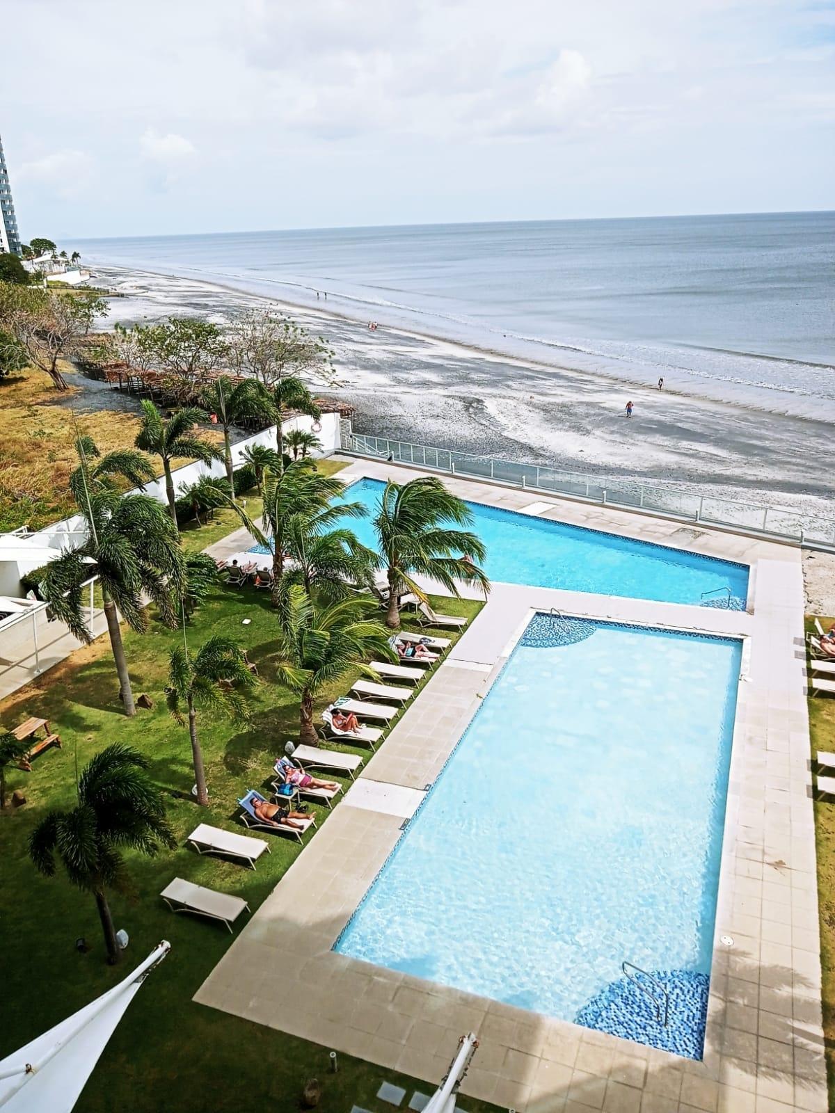 ROYAL PALMS GORGONA – OCEANFRONT PENTHOUSE 💰 Price: $389,000 | Maintenance: $260 Discover an exclusive Junior Penthouse “True 2 & 2” in the prestigious Royal Palms complex, located in Nueva Gorgona. This is a unique opportunity, as it is one of the few 129 m² apartments with a true 2-bedroom, 2-bathroom layout, unlike most units in the complex, which are 70 m² and located further back from the beachfront. Situated on the 23rd floor, this apartment offers a privileged orientation towards the sea and sunsets, providing breathtaking panoramic views of the ocean and the surrounding mountains. ✨ Layout and Features: 129 m² 2 bedrooms 2 bathrooms 1 parking space Open kitchen Living and dining room Balcony with direct ocean view Laundry area Imported flooring and tiles Sold fully furnished and equipped, including air conditioning, hot water, refrigerator, microwave, stove, dishwasher, coffee maker, toaster, washer/dryer, dishes, utensils, towels, television, cable, and Wi-Fi. Just bring your clothes and swimsuit! 🏖 Complex Amenities Completed in 2019, Royal Palms features contemporary architecture in two towers (6 apartments per floor) and a spacious social area of over 3,300 m² that includes: 3 swimming pools Jumbo spa Fully equipped gym Gazebo BBQ area Solarium Changing rooms Children’s playground Multiple sports courts Located just 80 km (55 minutes) from Panama City, it’s the ideal place to enjoy peaceful walks on the beach, spectacular sunsets, and a relaxed oceanfront lifestyle. 🌊 Live oceanfront with security, comfort, and exclusivity in one of the most desirable complexes in the area. Contact us to schedule a visit!