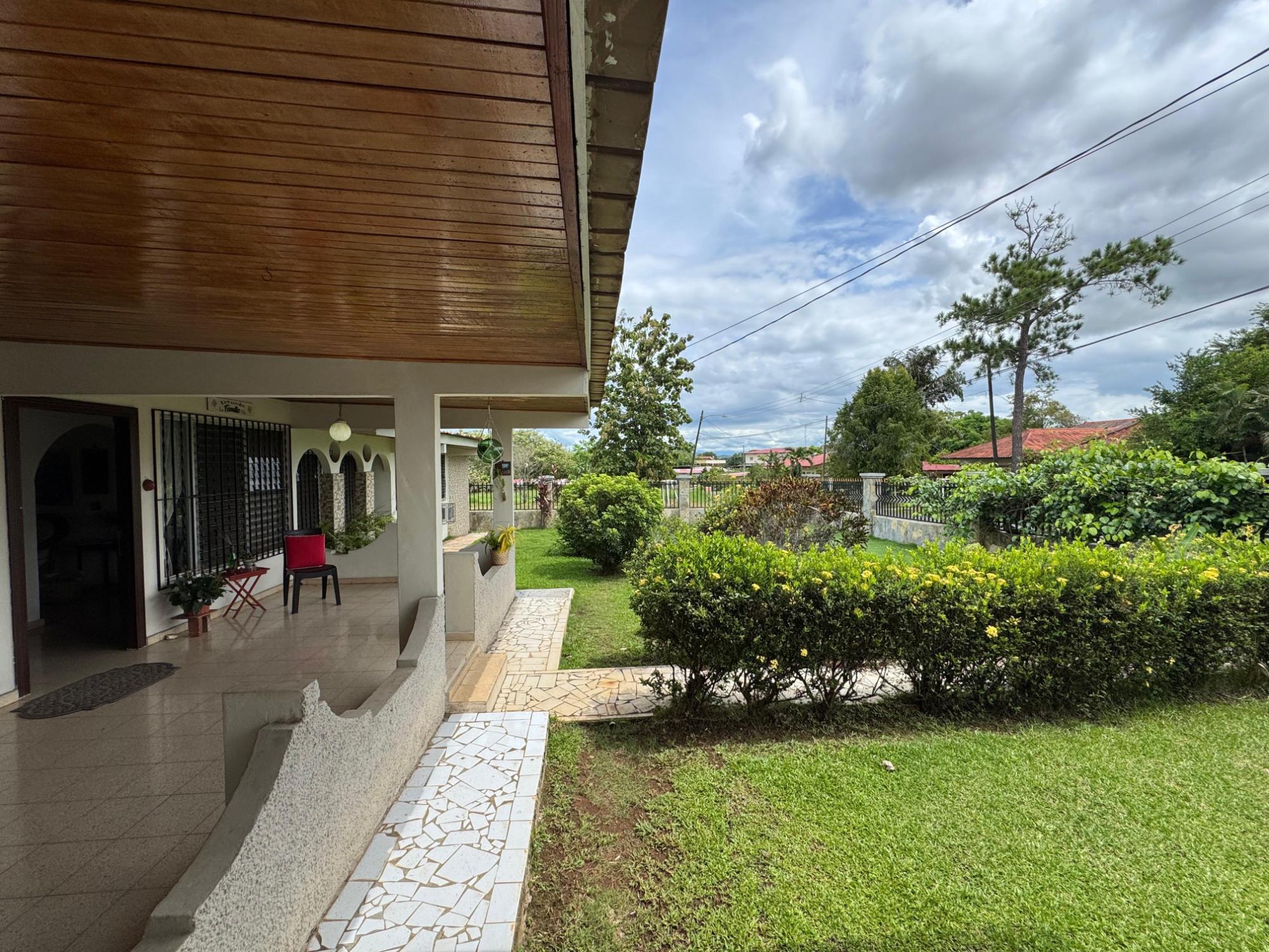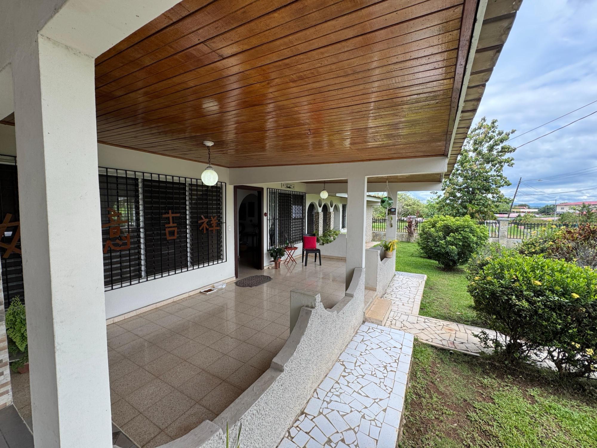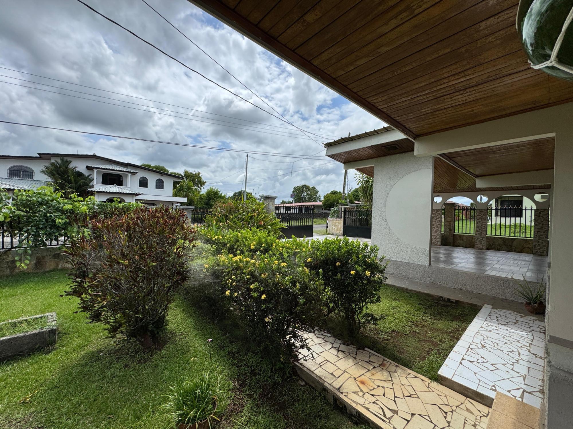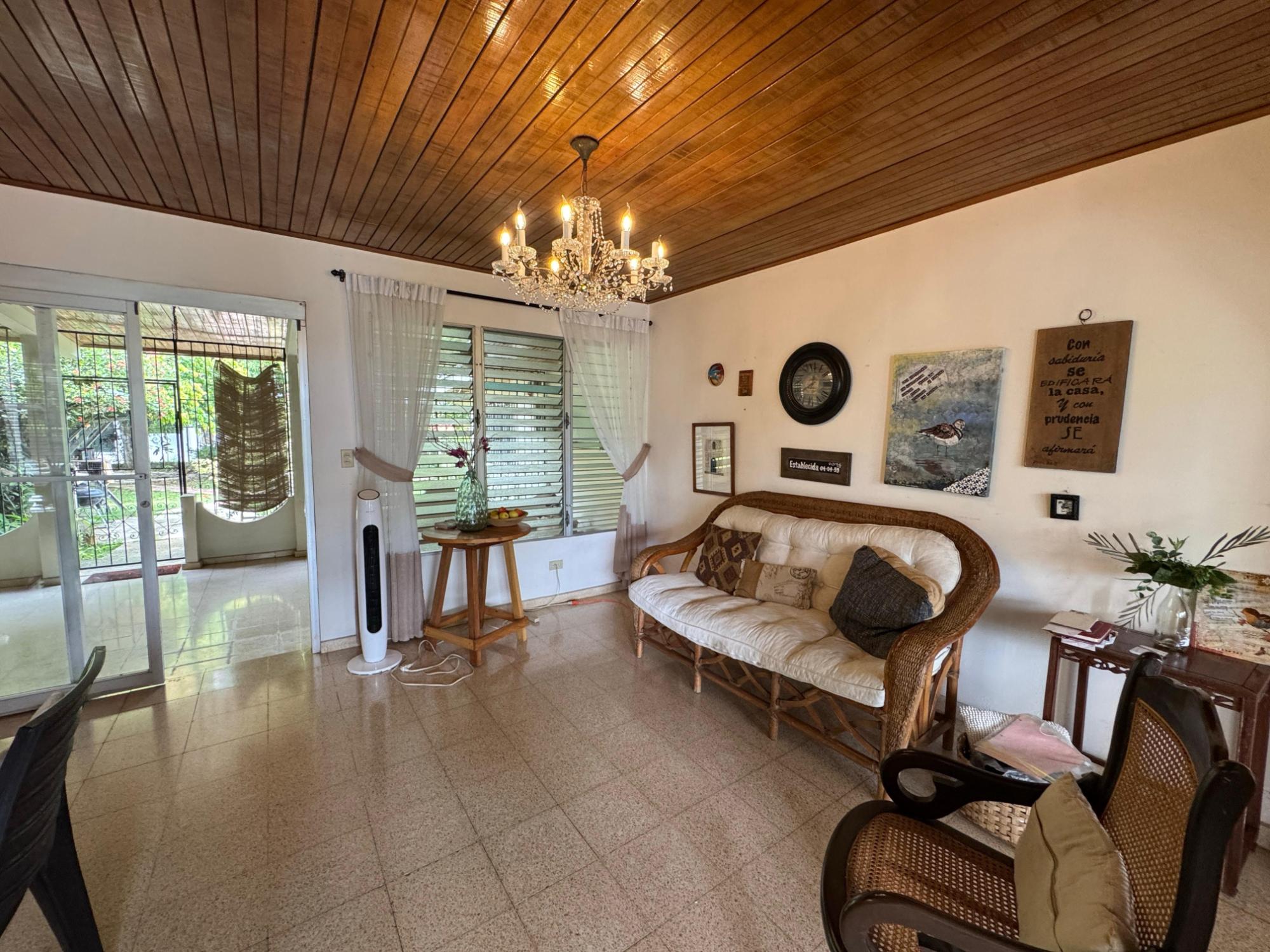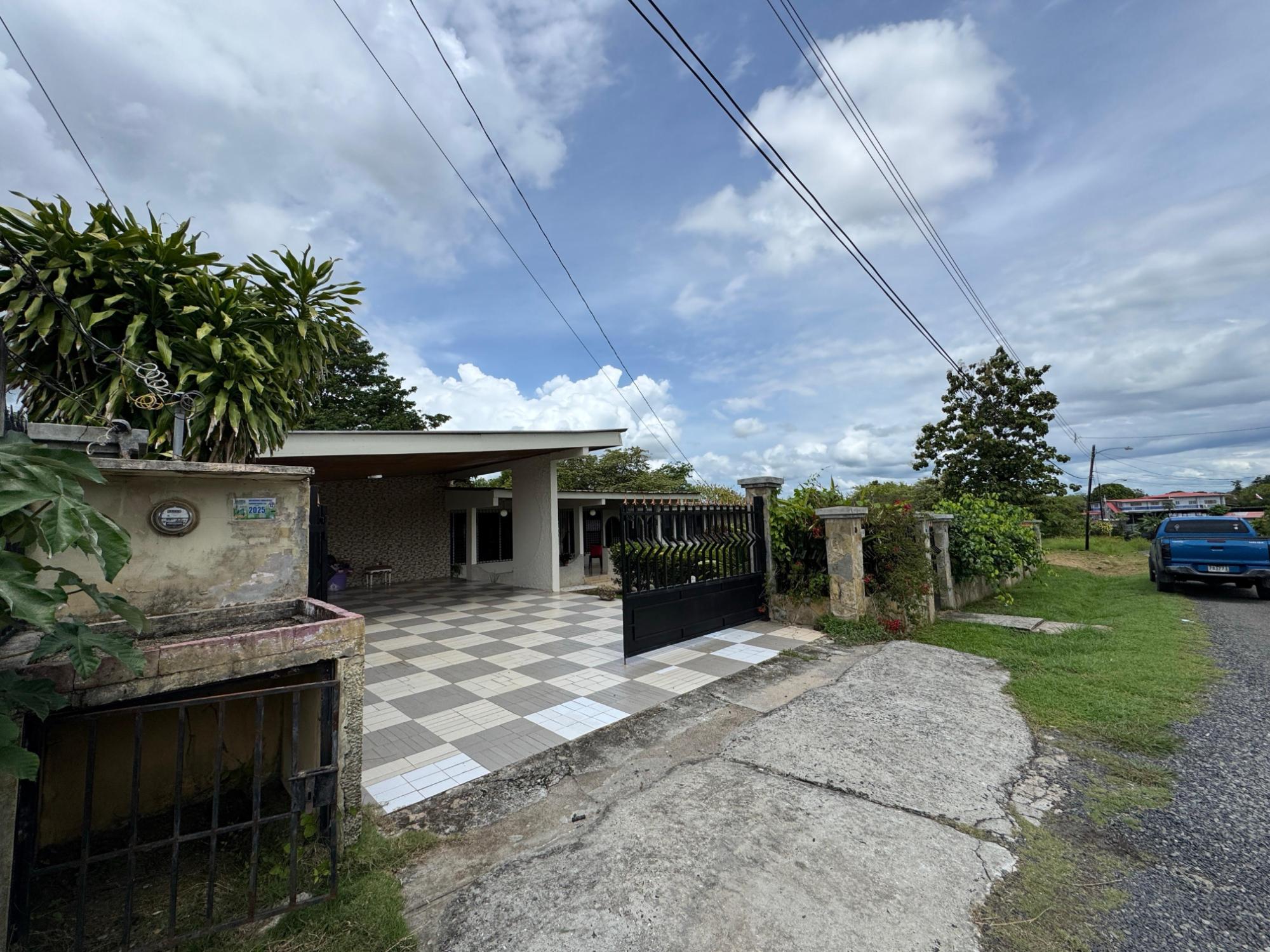This property is located in a residential street in Santiago de Veraguas, sitting on a flat lot of 1,050 m² with ample space for outdoor living. The house has a built area of 212.40 m², along with semi-open spaces of 93.78 m² and a paved area of 107.09 m². Property Features: Bedrooms and Bathrooms: The home offers 4 bedrooms and 4 bathrooms. The master bedroom includes a custom-built teak closet (installed in 2023) and an en-suite bathroom. Living and Dining Areas: The spacious, open-plan living and dining area leads directly to a covered terrace, providing an ideal space for both everyday living and entertaining. Service Quarters: The property includes an independent service room with its own bathroom, adding flexibility for extra accommodation or storage needs. Kitchen: The kitchen was remodeled in 2020, featuring modern appliances and a functional layout. Parking and Outdoor Space: A covered portal provides parking space for two vehicles. The property also includes fruit and forest trees, offering a private green space.