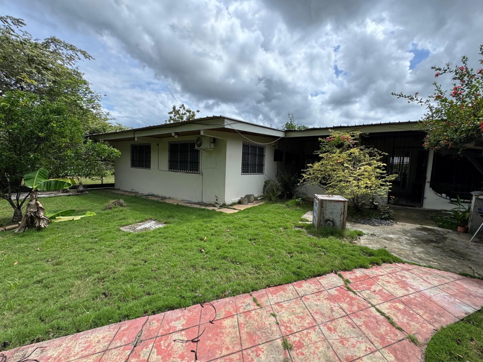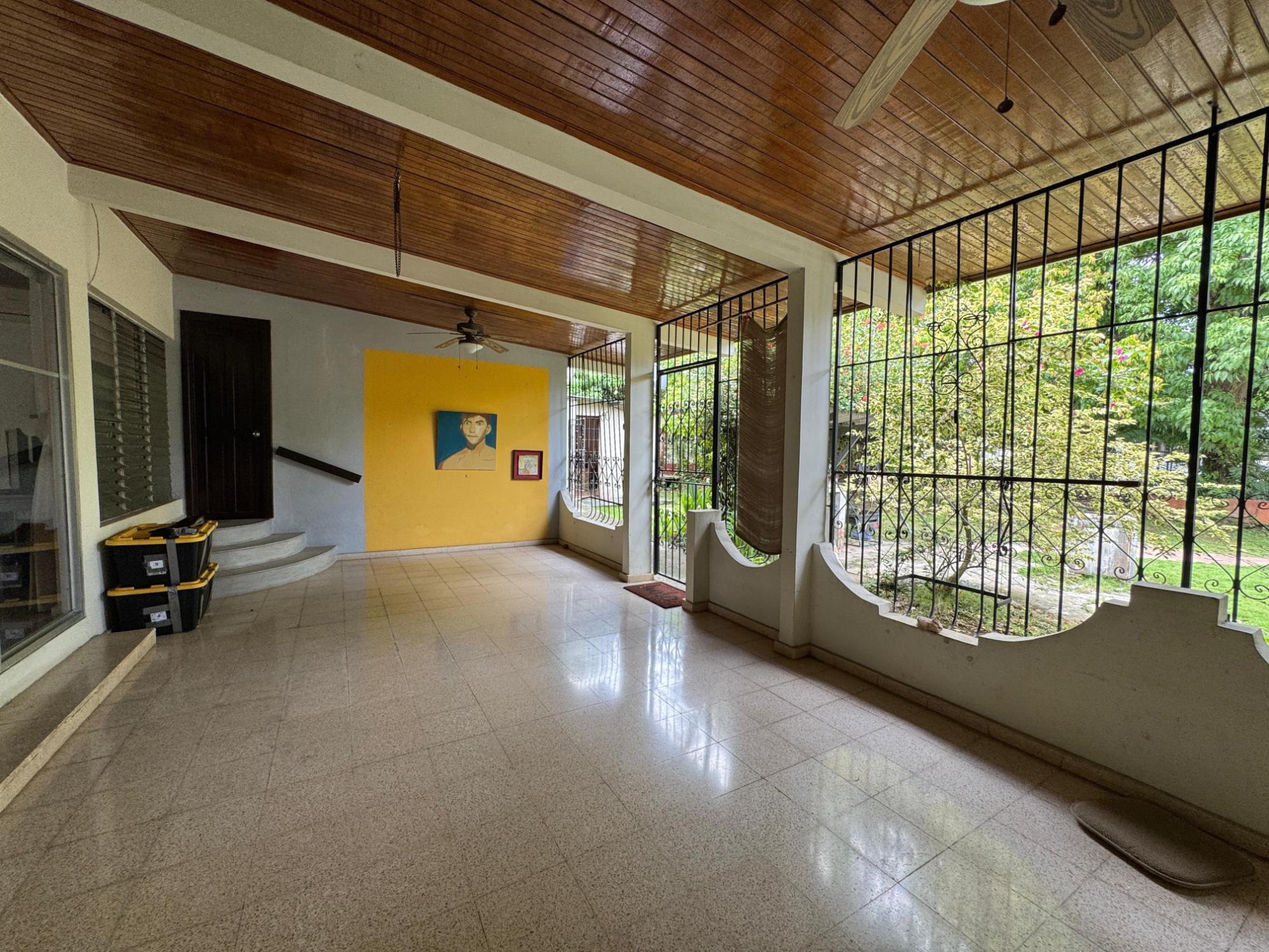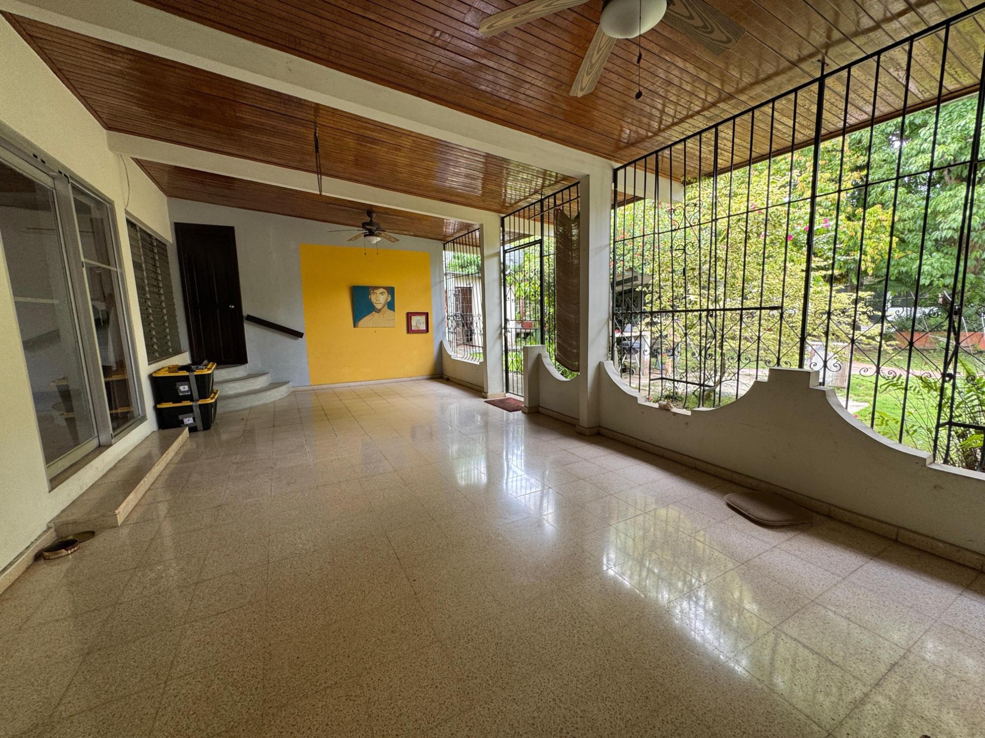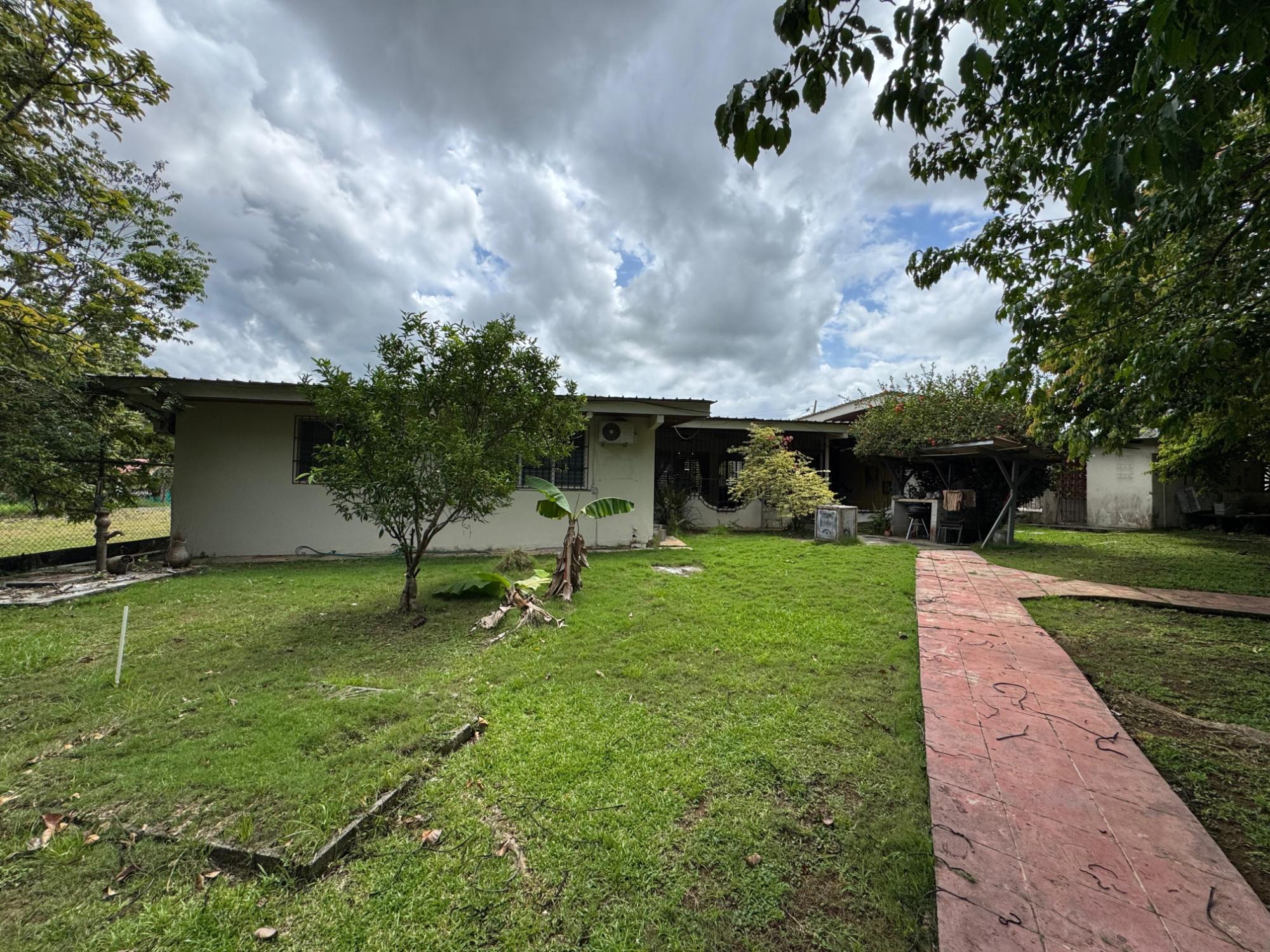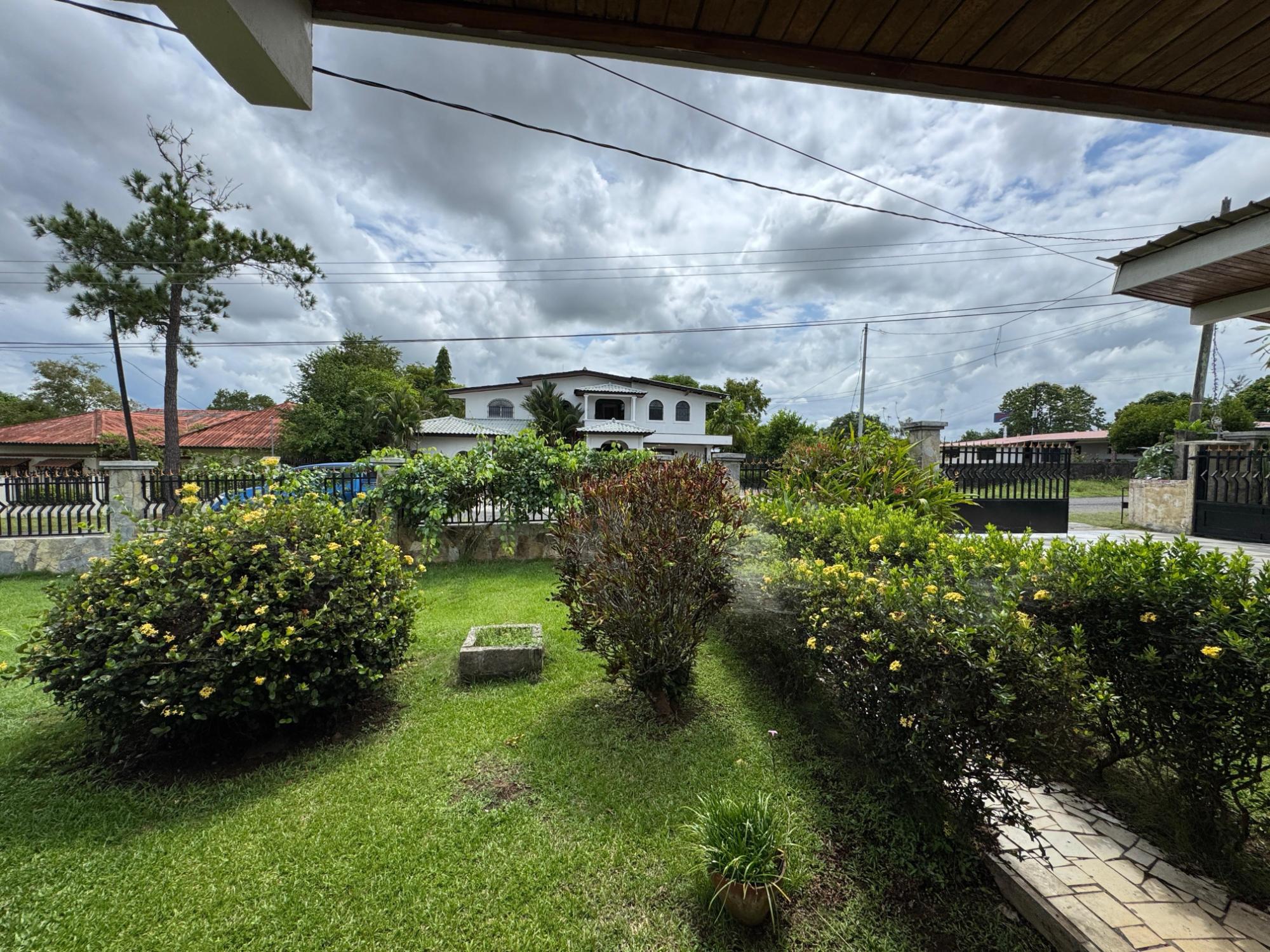 This property is located in a residential street in Santiago de Veraguas, sitting on a flat lot of 1,050 m² with ample space for outdoor living. The house has a built area of 212.40 m², along with semi-open spaces of 93.78 m² and a paved area of 107.09 m². Property Features: Bedrooms and Bathrooms: The home offers 4 bedrooms and 4 bathrooms. The master bedroom includes a custom-built teak closet (installed in 2023) and an en-suite bathroom. Living and Dining Areas: The spacious, open-plan living and dining area leads directly to a covered terrace, providing an ideal space for both everyday living and entertaining. Service Quarters: The property includes an independent service room with its own bathroom, adding flexibility for extra accommodation or storage needs. Kitchen: The kitchen was remodeled in 2020, featuring modern appliances and a functional layout. Parking and Outdoor Space: A covered portal provides parking space for two vehicles. The property also includes fruit and forest trees, offering a private green space.