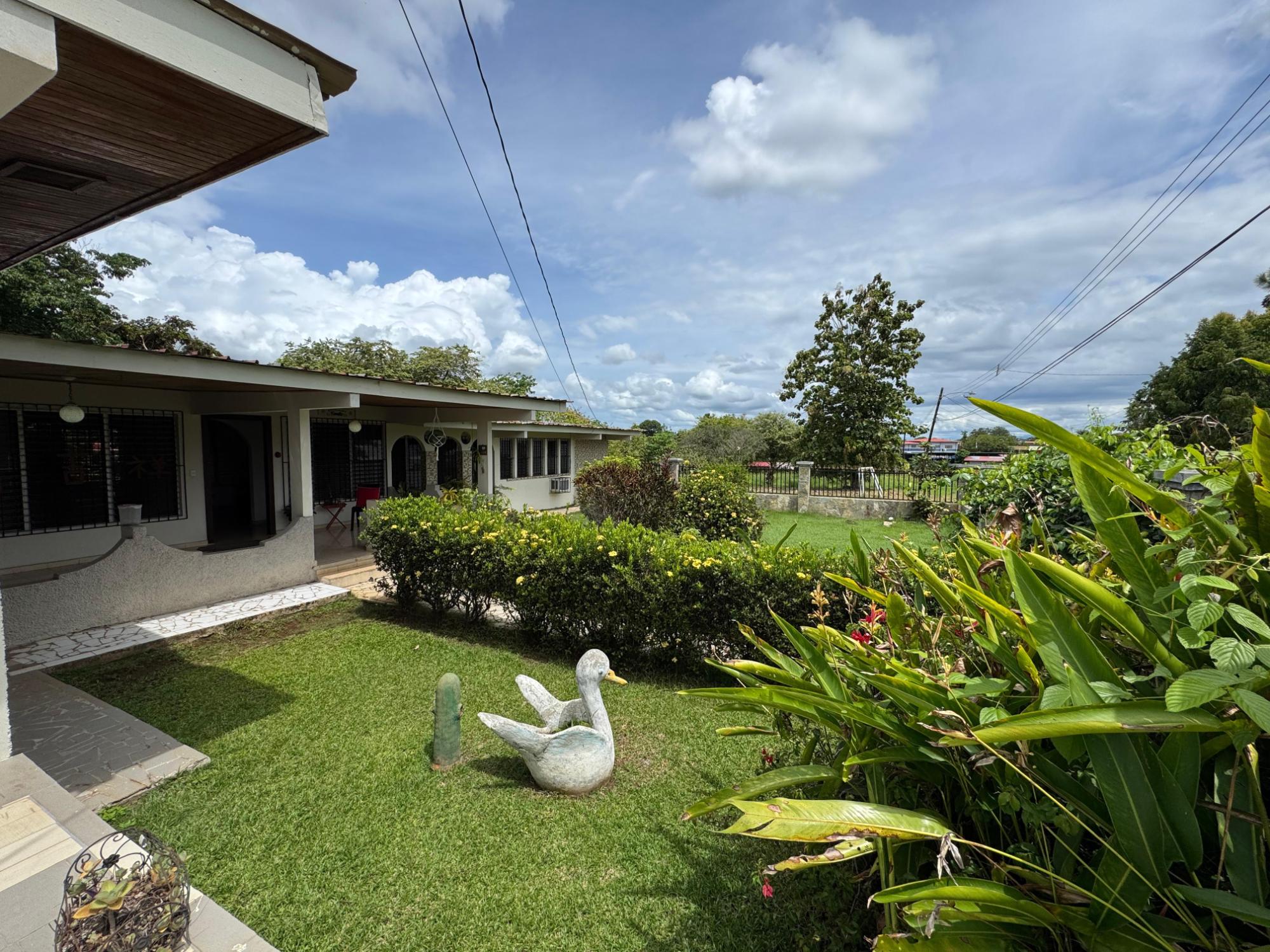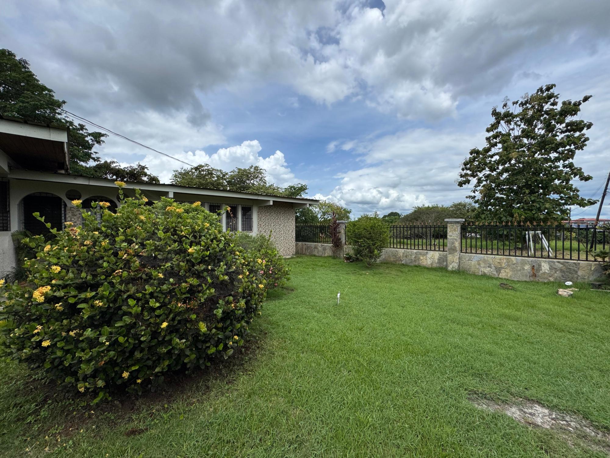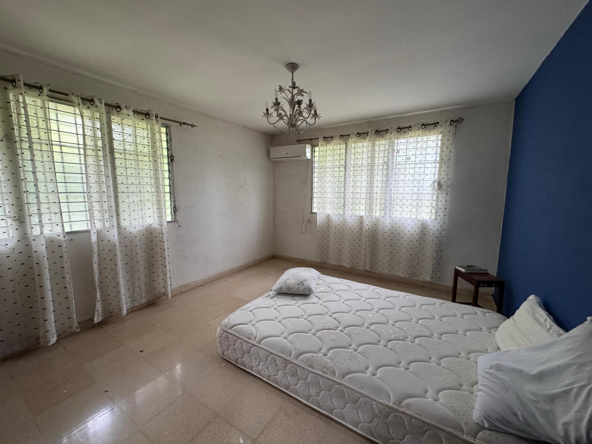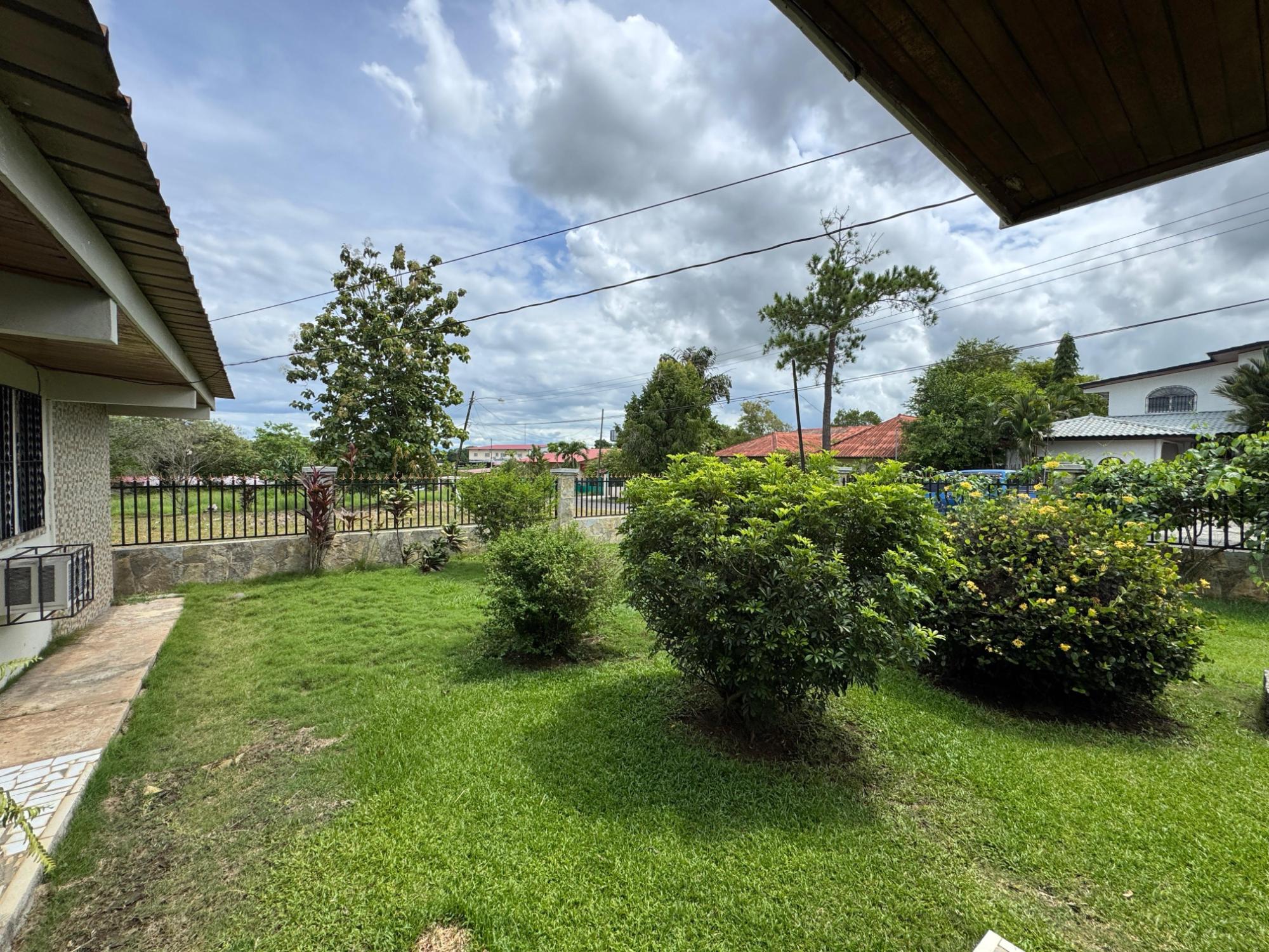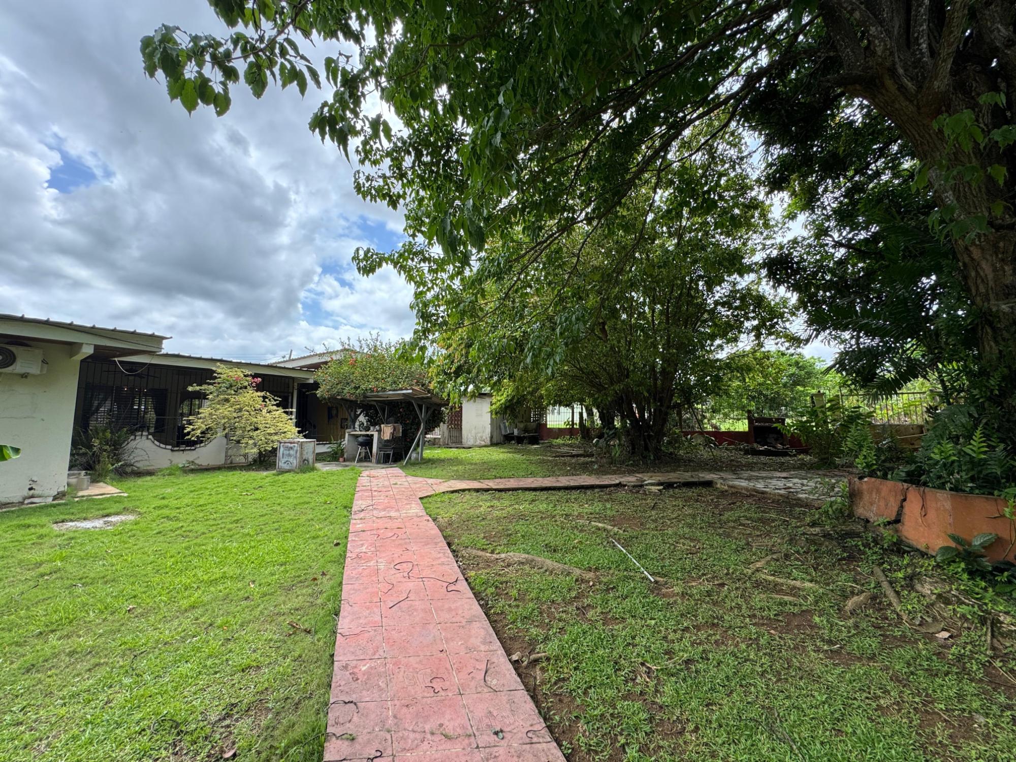 This property is located in a residential street in Santiago de Veraguas, sitting on a flat lot of 1,050 m² with ample space for outdoor living. The house has a built area of 212.40 m², along with semi-open spaces of 93.78 m² and a paved area of 107.09 m². Property Features: Bedrooms and Bathrooms: The home offers 4 bedrooms and 4 bathrooms. The master bedroom includes a custom-built teak closet (installed in 2023) and an en-suite bathroom. Living and Dining Areas: The spacious, open-plan living and dining area leads directly to a covered terrace, providing an ideal space for both everyday living and entertaining. Service Quarters: The property includes an independent service room with its own bathroom, adding flexibility for extra accommodation or storage needs. Kitchen: The kitchen was remodeled in 2020, featuring modern appliances and a functional layout. Parking and Outdoor Space: A covered portal provides parking space for two vehicles. The property also includes fruit and forest trees, offering a private green space.