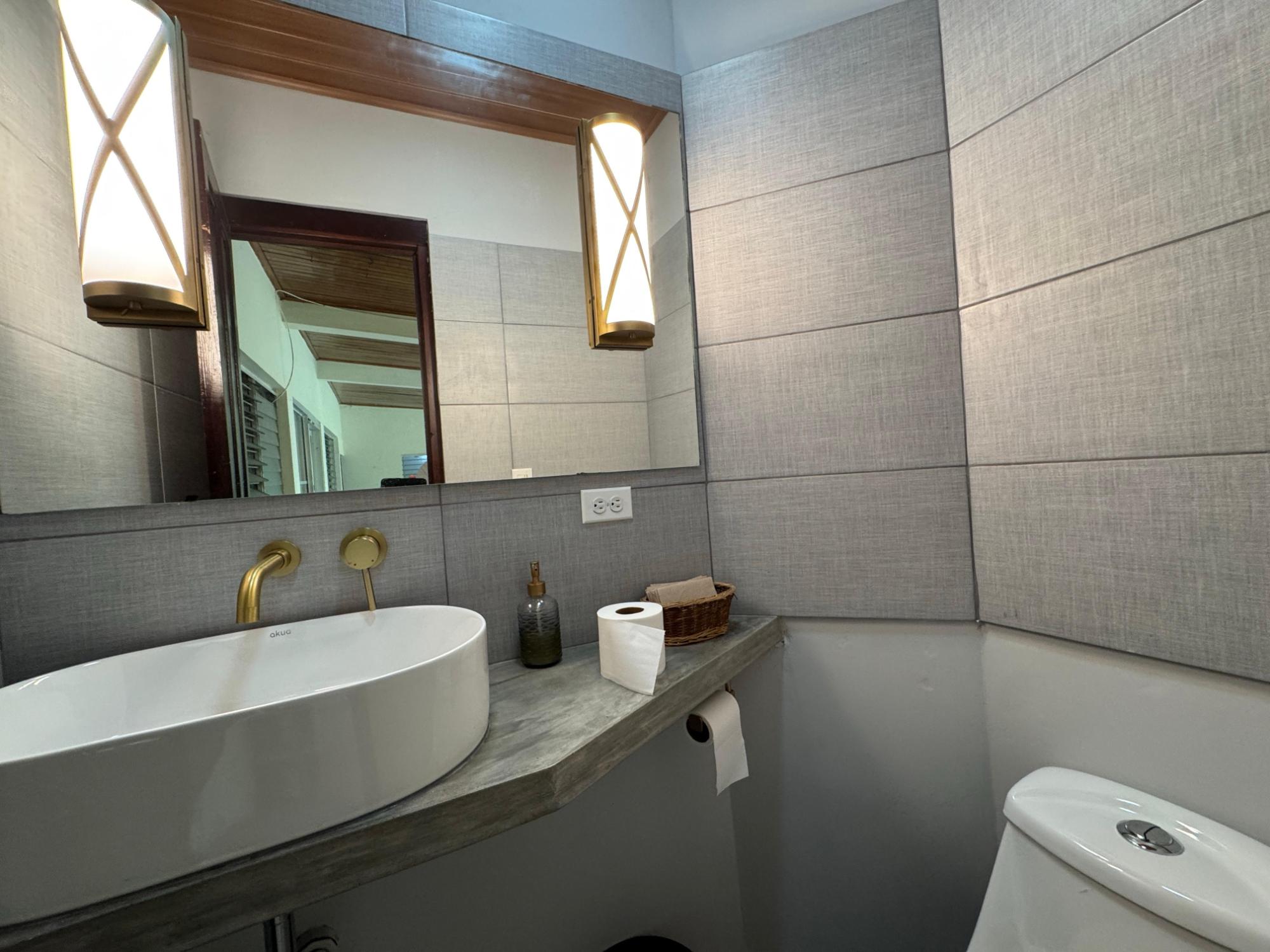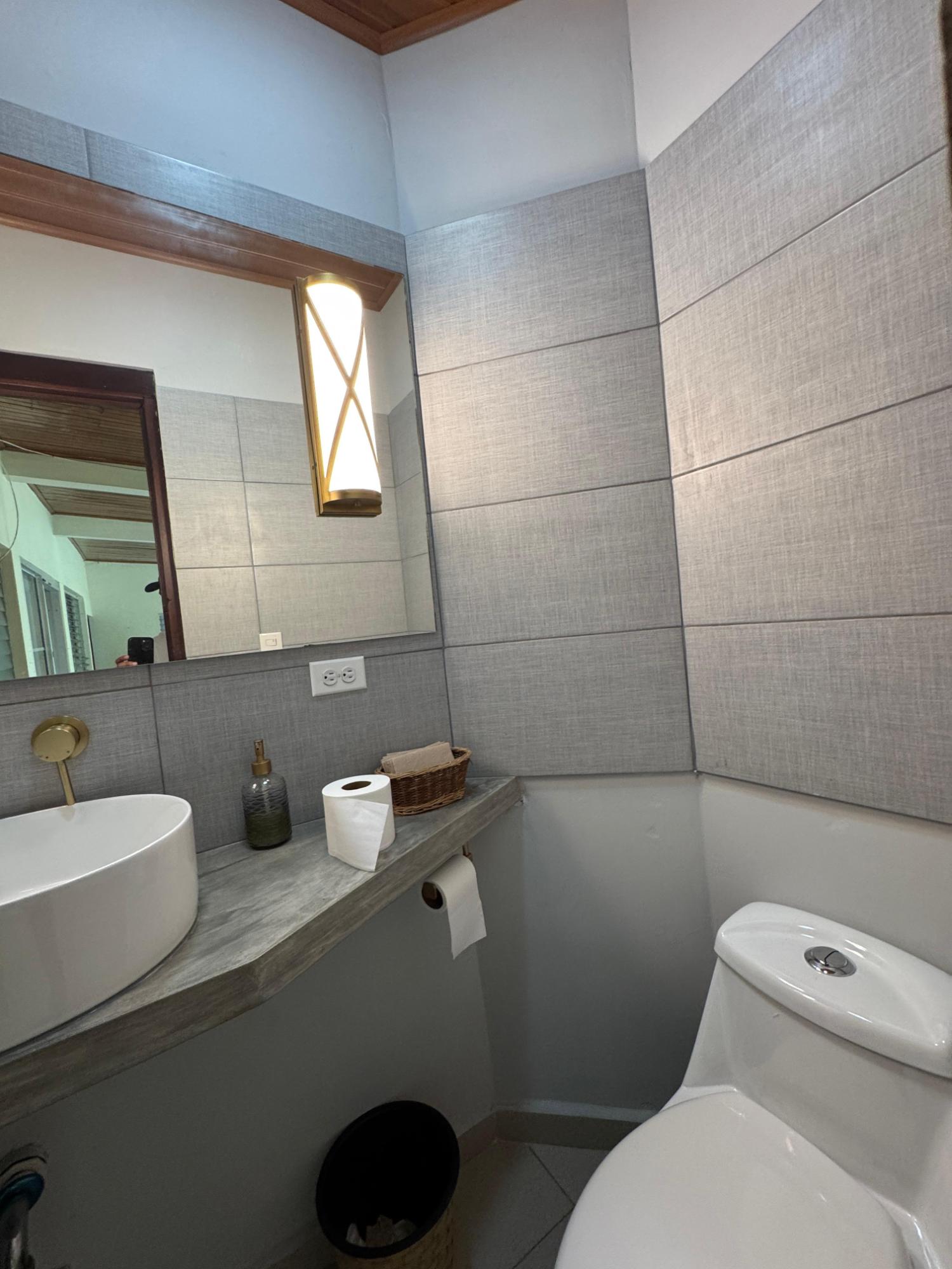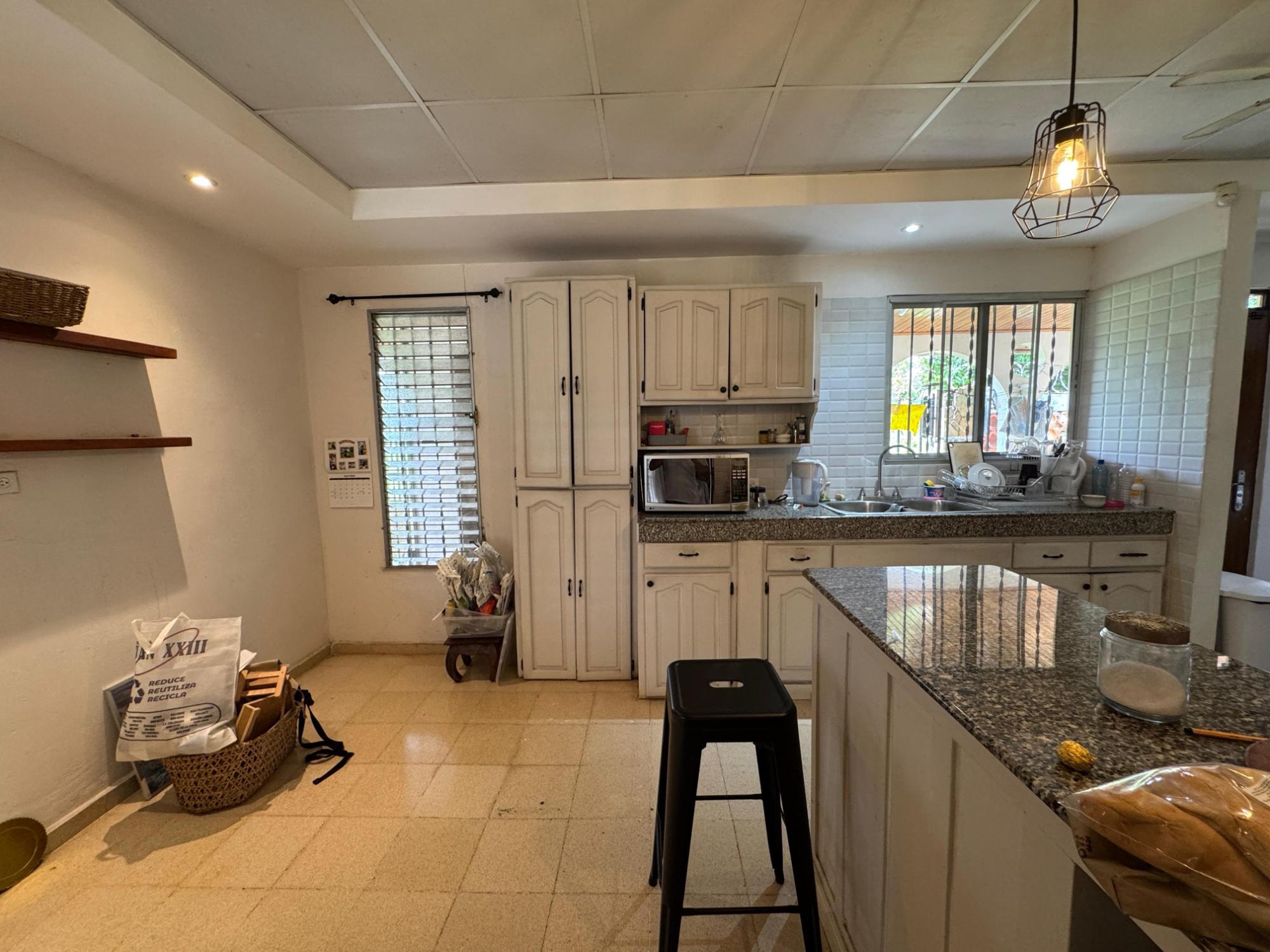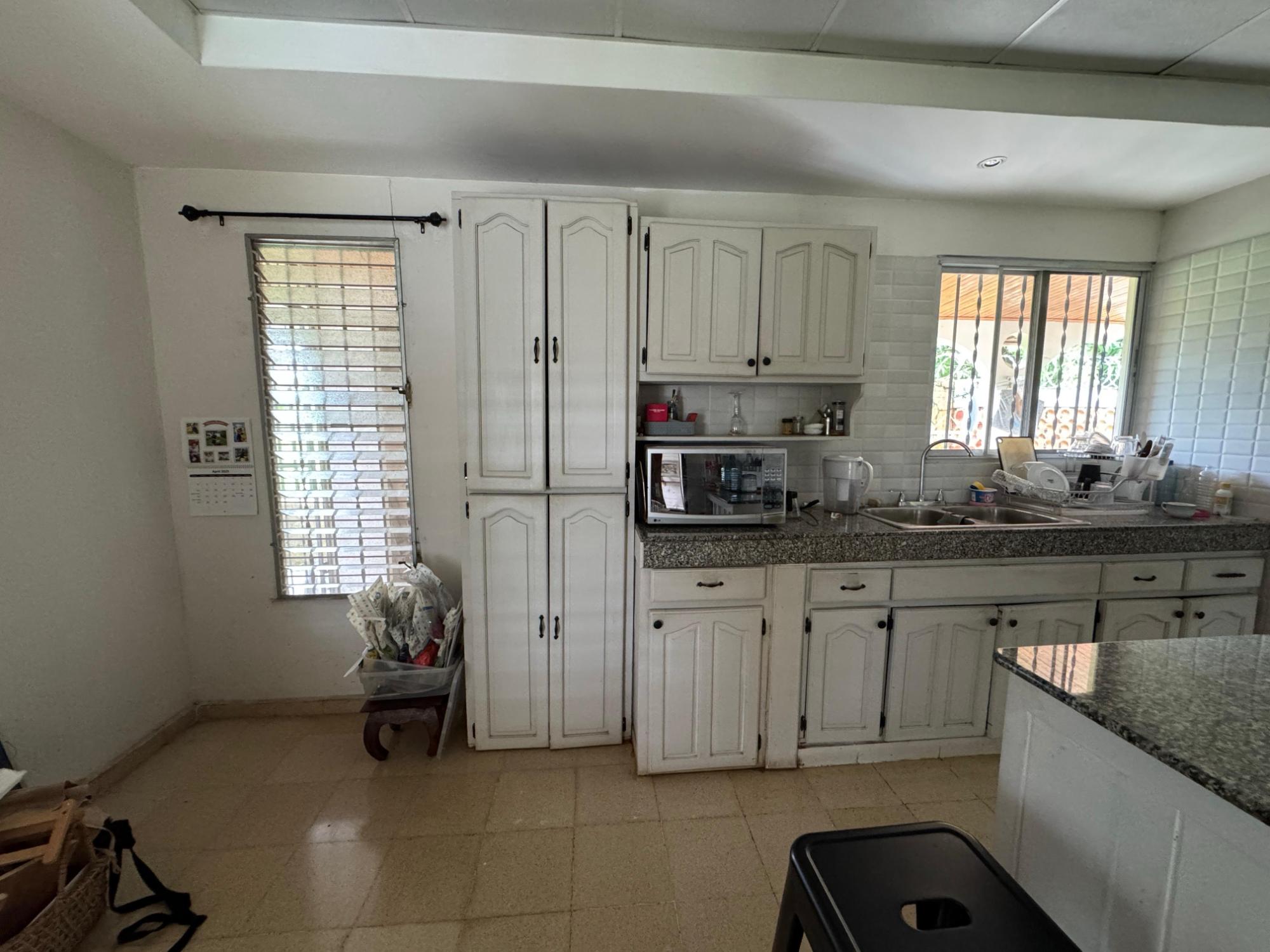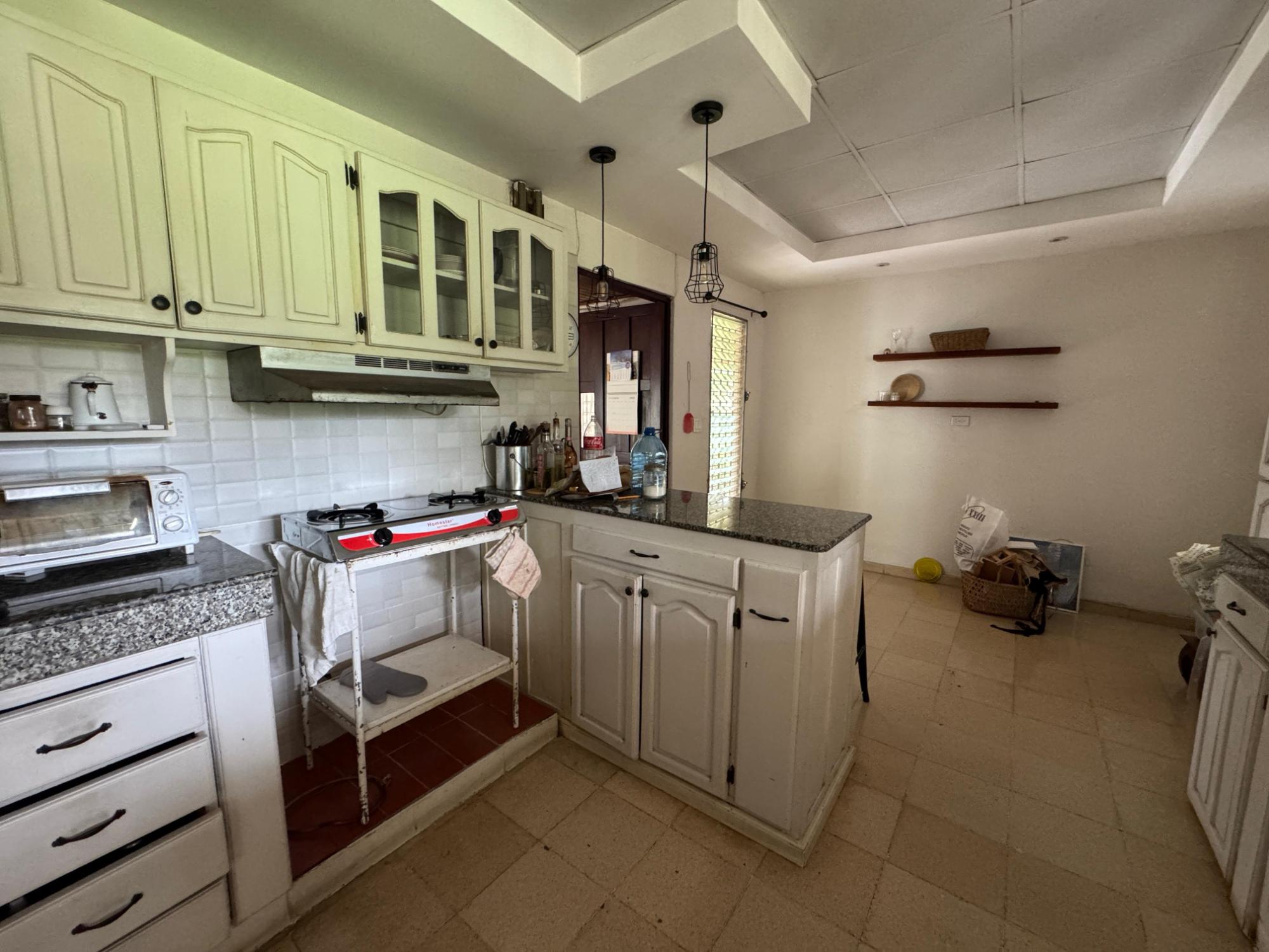 This property is located in a residential street in Santiago de Veraguas, sitting on a flat lot of 1,050 m² with ample space for outdoor living. The house has a built area of 212.40 m², along with semi-open spaces of 93.78 m² and a paved area of 107.09 m². Property Features: Bedrooms and Bathrooms: The home offers 4 bedrooms and 4 bathrooms. The master bedroom includes a custom-built teak closet (installed in 2023) and an en-suite bathroom. Living and Dining Areas: The spacious, open-plan living and dining area leads directly to a covered terrace, providing an ideal space for both everyday living and entertaining. Service Quarters: The property includes an independent service room with its own bathroom, adding flexibility for extra accommodation or storage needs. Kitchen: The kitchen was remodeled in 2020, featuring modern appliances and a functional layout. Parking and Outdoor Space: A covered portal provides parking space for two vehicles. The property also includes fruit and forest trees, offering a private green space.