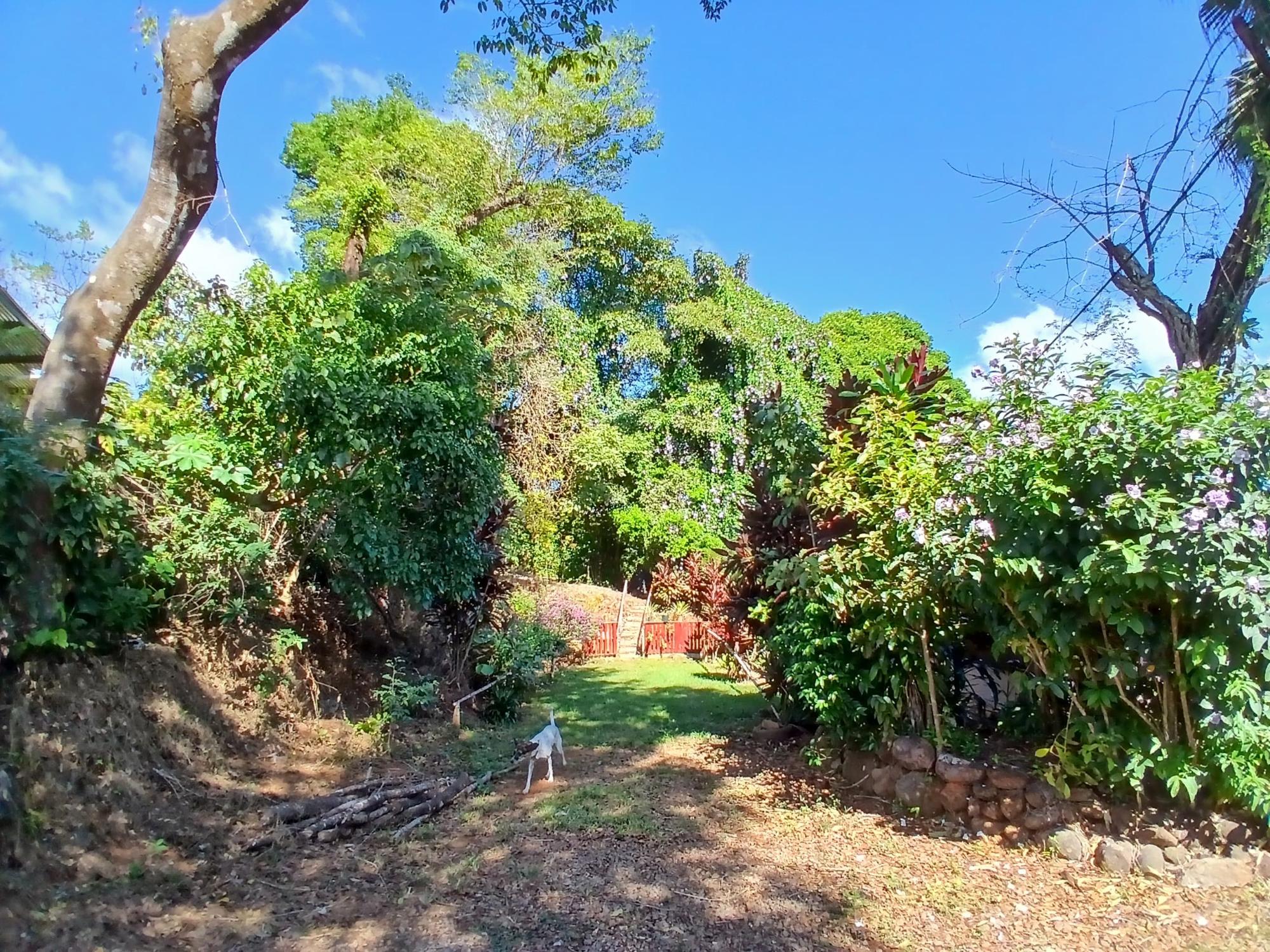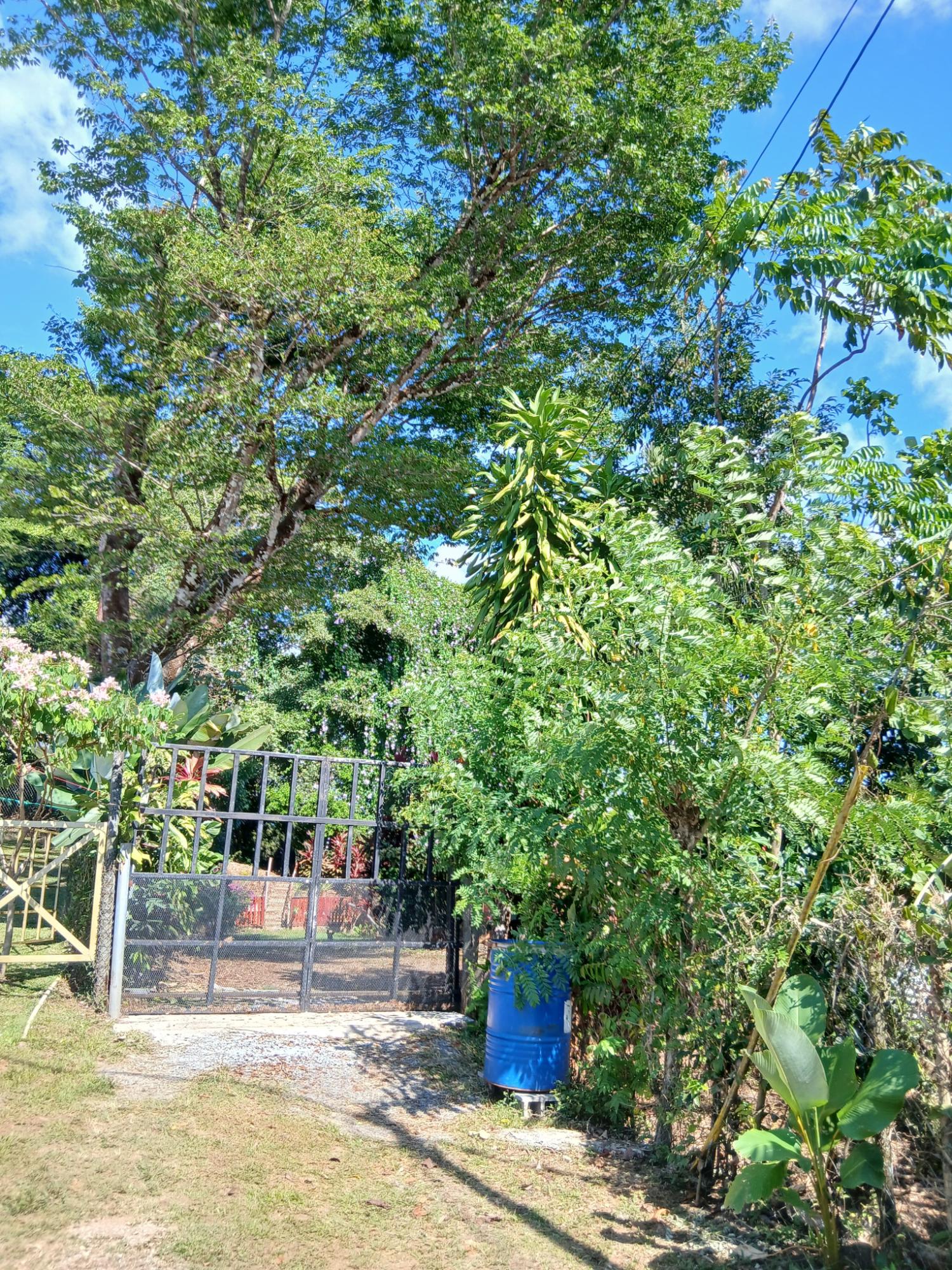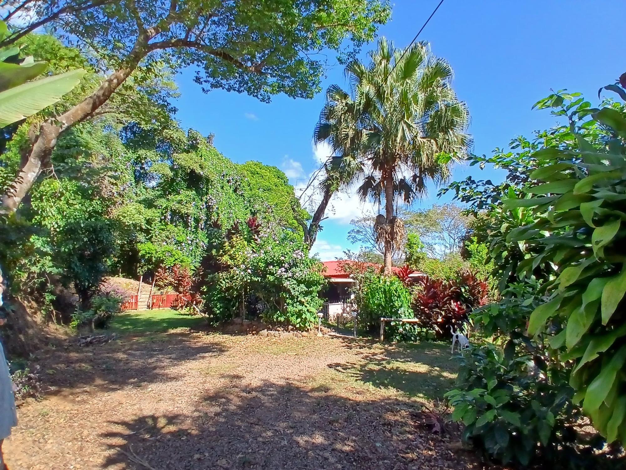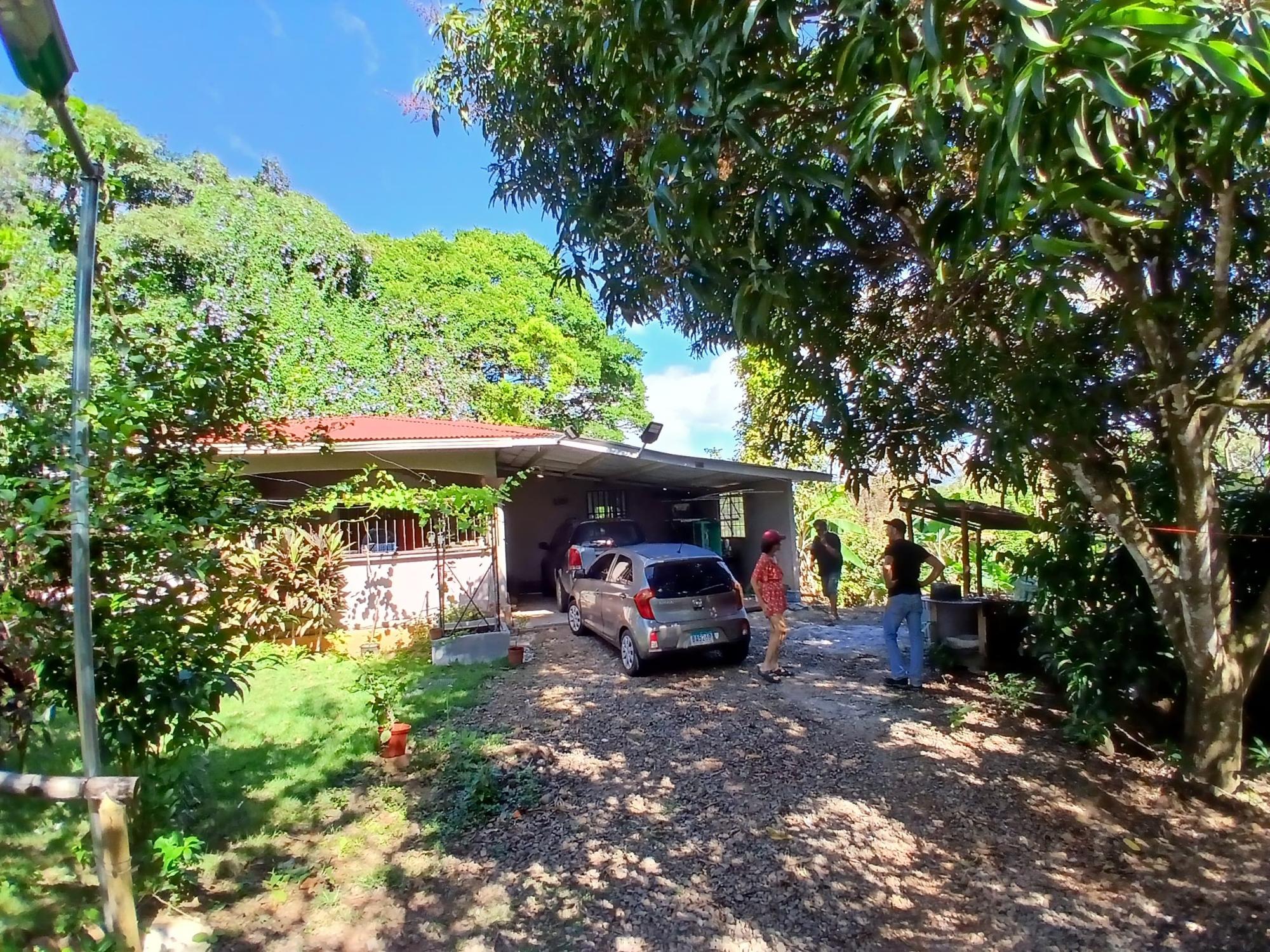The house, which has been creatively and lovingly renovated over the past two years, has a floor space of 240 m² and features a very large kitchen, dining and living area, two bedrooms, two bathrooms, a large covered terrace with security bars, and a covered parking space for your car. The house comes with all furniture, appliances, and complete inventory—perfect for feeling right at home. The 1360 m² property is located in the second row on the paved road through Tinajas, only a 15-minute drive to David and 30 minutes to Boquete. Nevertheless, as soon as you enter your new home, you feel like you are in a rural setting. Lush plants provide pleasant coolness and tranquility, and a duck coop adds to the country charm. For your security, the lot is equipped with complete fencing, an automatic sliding gate, and solar lamps in the garden. A private well with two tanks, electricity, and internet are also available.