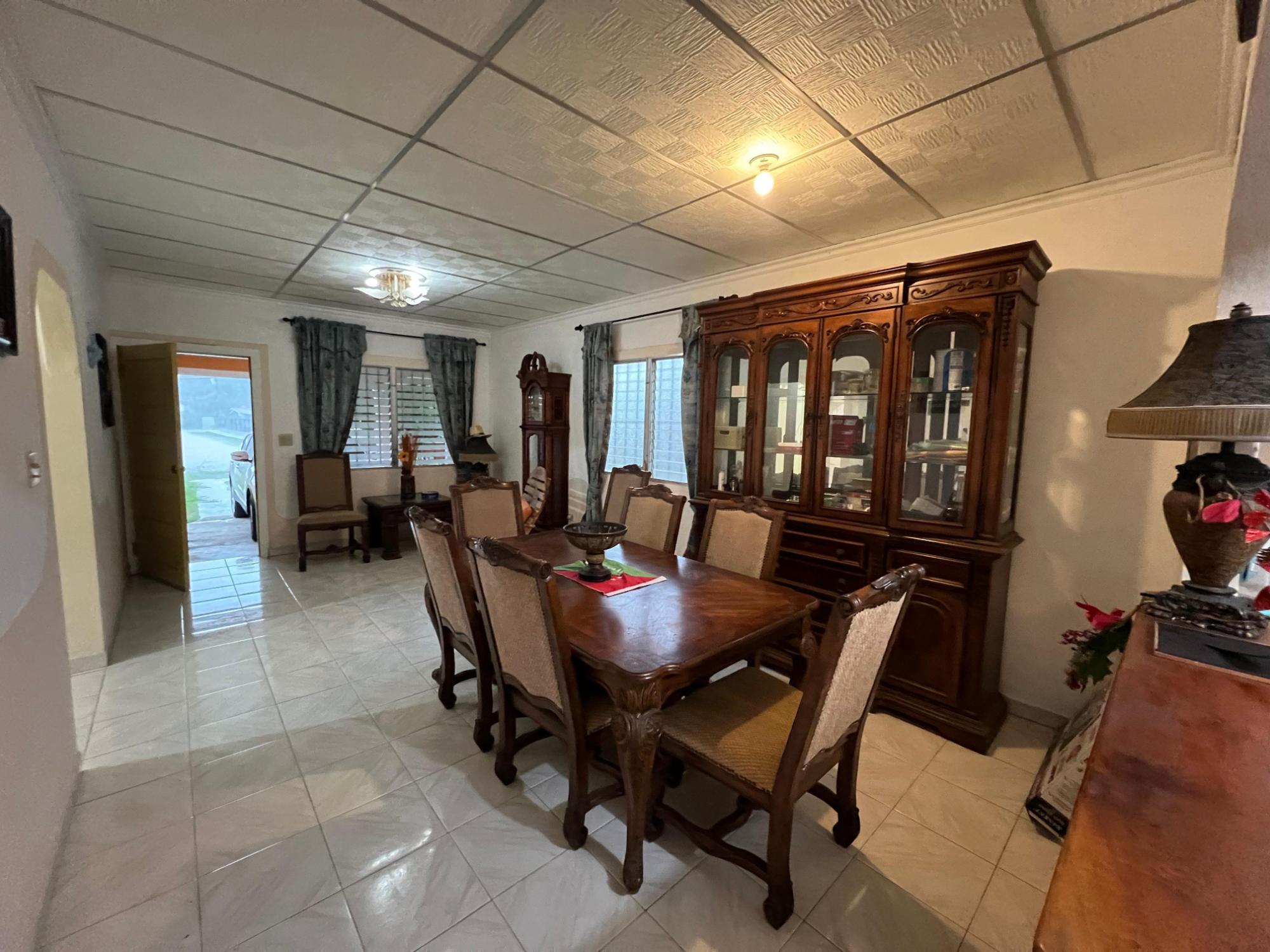 This stunning house for sale is located in the heart of Alto Boquete, Boquete, Chiriqui. The house offers the perfect combination of serenity and comfort. As you approach the house, you will be greeted by a paved driveway and the tranquil sounds of a babbling stream. The flat lot provides ample space for outdoor activities, gardening, and relaxation, while the small, quiet street well off the highway ensures privacy and a peaceful atmosphere. Once inside, you will be greeted by a warm and inviting interior, featuring large windows and the sliding glass doors leading to two beautiful patios. The natural light that floods the rooms creates a bright and airy atmosphere that is perfect for entertaining guests or simply relaxing with family. The 144.25 square meters of construction offer a comfortable and functional living space that is both elegant and practical. The open-plan living and dining area provides the perfect space for entertaining.