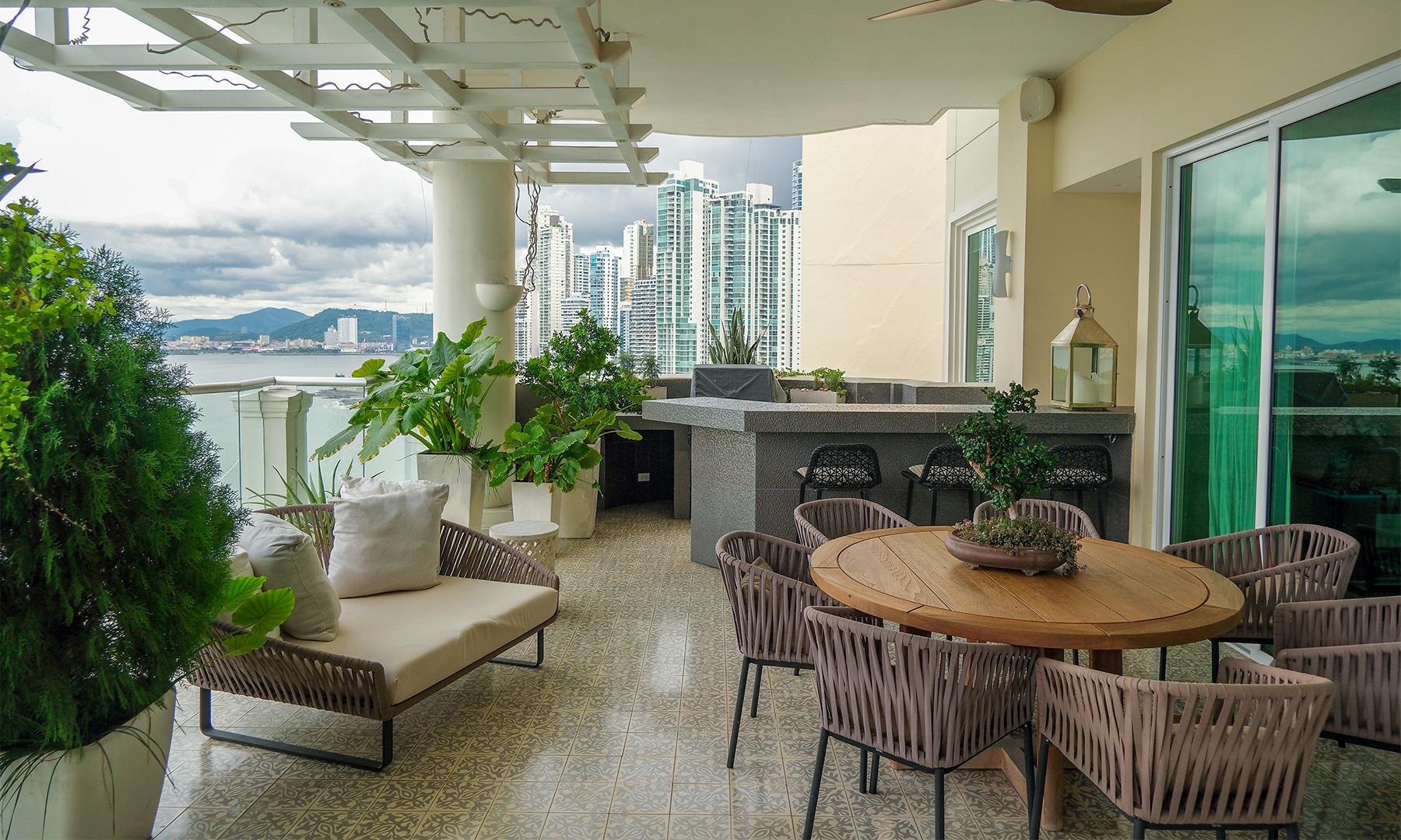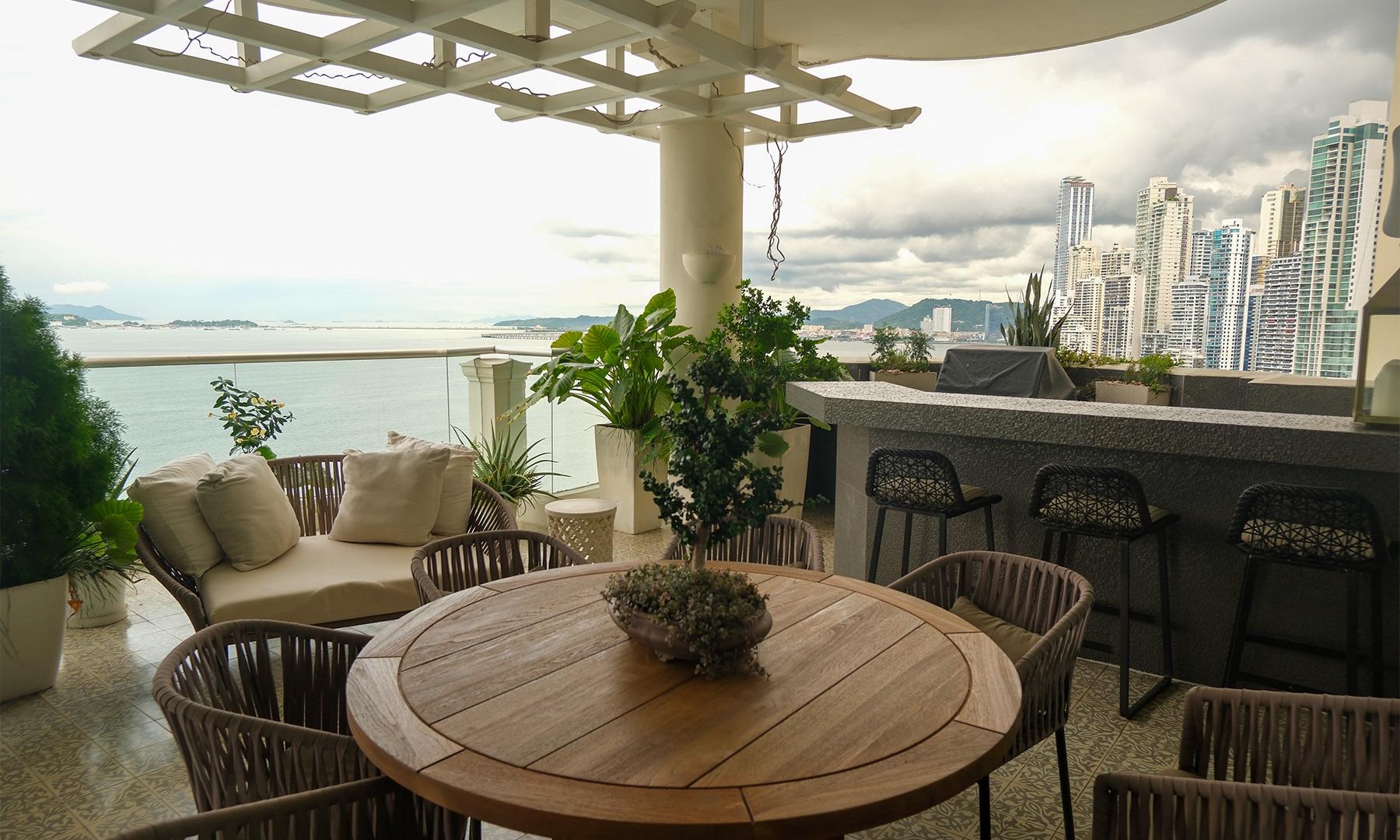 To enter The Posh Residence is to step into a living masterpiece — a sanctuary in the sky where space, light, and views converge in harmony. Located in the prestigious Bellagio Tower, this fully renovated four-bedroom residence commands 270° panoramic vistas across Panama Bay — from Balboa Avenue and the UNESCO Old City to the Frank Gehry BioMuseo, the Causeway, the Bridge of the Americas, and the exclusive Ocean Reef Islands. With a southern orientation, mornings bring sunrise to the left, evenings the sunset to the right, bathing interiors in natural light. Meticulously upgraded, the home features state-of-the-art appliances in a chef’s kitchen with breakfast area, custom woodwork in doors, cabinetry and wall paneling, and premium finishes from stone surfaces to designer fixtures. Floor-to-ceiling windows frame the views like living art. A flowing layout connects expansive living and dining areas to a spacious terrace, ideal for gatherings. Each bedroom includes its own en-suite bathroom for privacy and comfort. Set within Punta Pacifica, Panama City’s most exclusive oceanfront neighborhood, residents enjoy unmatched privacy, 24/7 security, and access to the city’s best dining, shopping, and cultural attractions. The Posh Residence is more than a home — it is a statement of prestige, a showcase of craftsmanship and design, and a rare jewel among Punta Pacifica’s most distinguished residences.