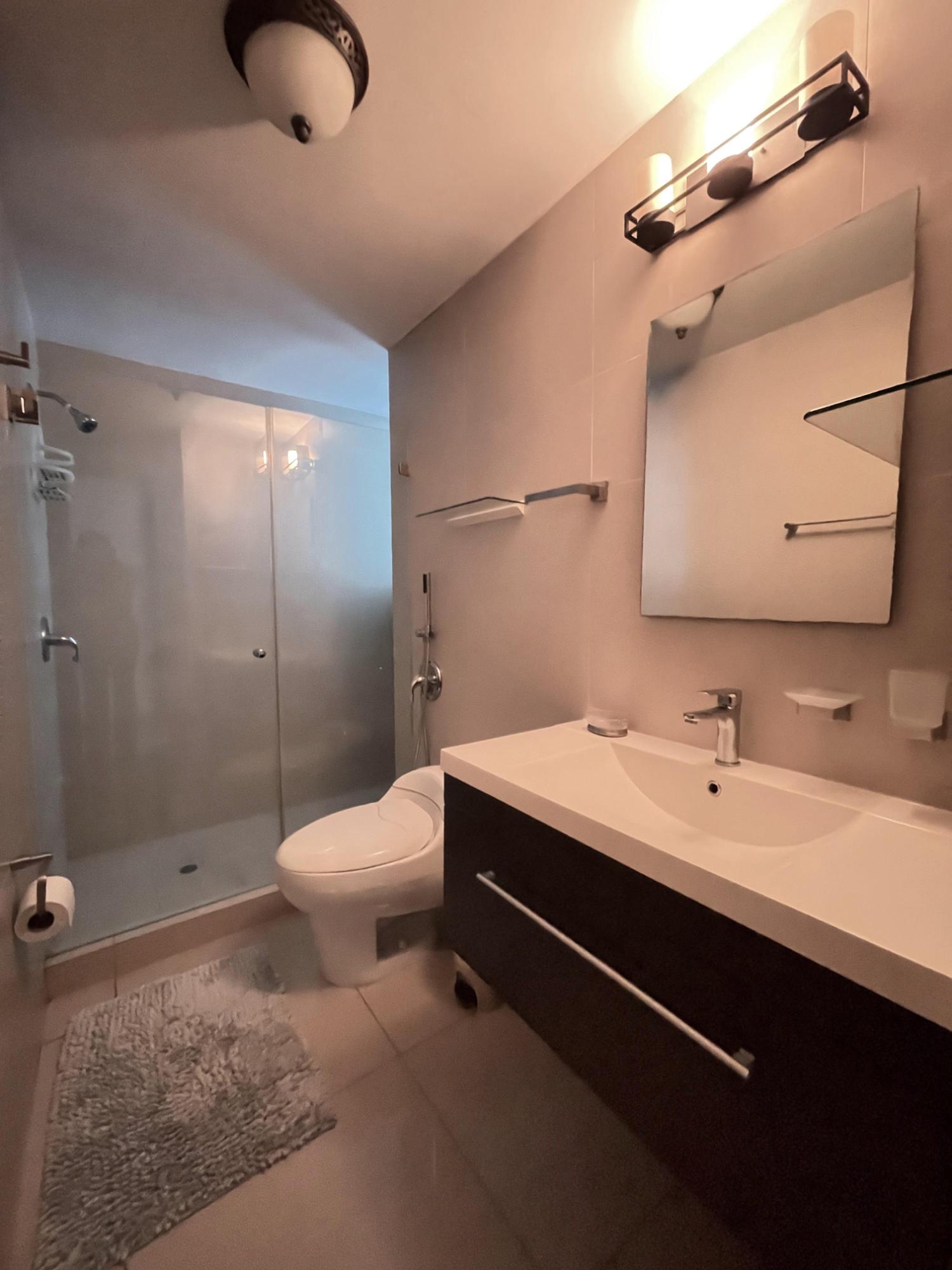 Beautiful, bright, and very comfortable apartment in Top Towers, Costa del Este. Enjoy spectacular views from this fully furnished apartment with a kitchenette and balcony. It features 106 m² (1,150 ft²) distributed across 2 bedrooms, 2 full bathrooms, a maid’s quarters, 2 balconies (one in the living room and one in the master bedroom), and 1 parking space. The building offers luxury amenities, including high-speed elevators, a fully equipped power generator, 24-hour security, private parking, an extensive social area, a gym, a playground, 3 swimming pools, a Jacuzzi, a sauna, a movie theater, a squash court, a game room, and a solarium. An excellent opportunity to live in comfort, style, and with every convenience at your fingertips.