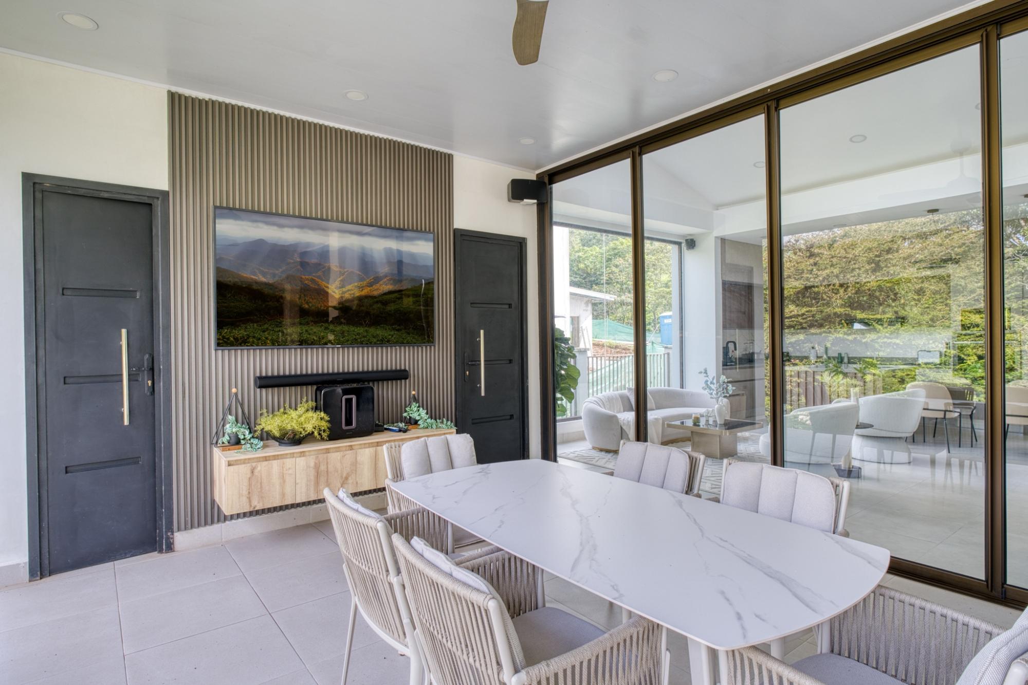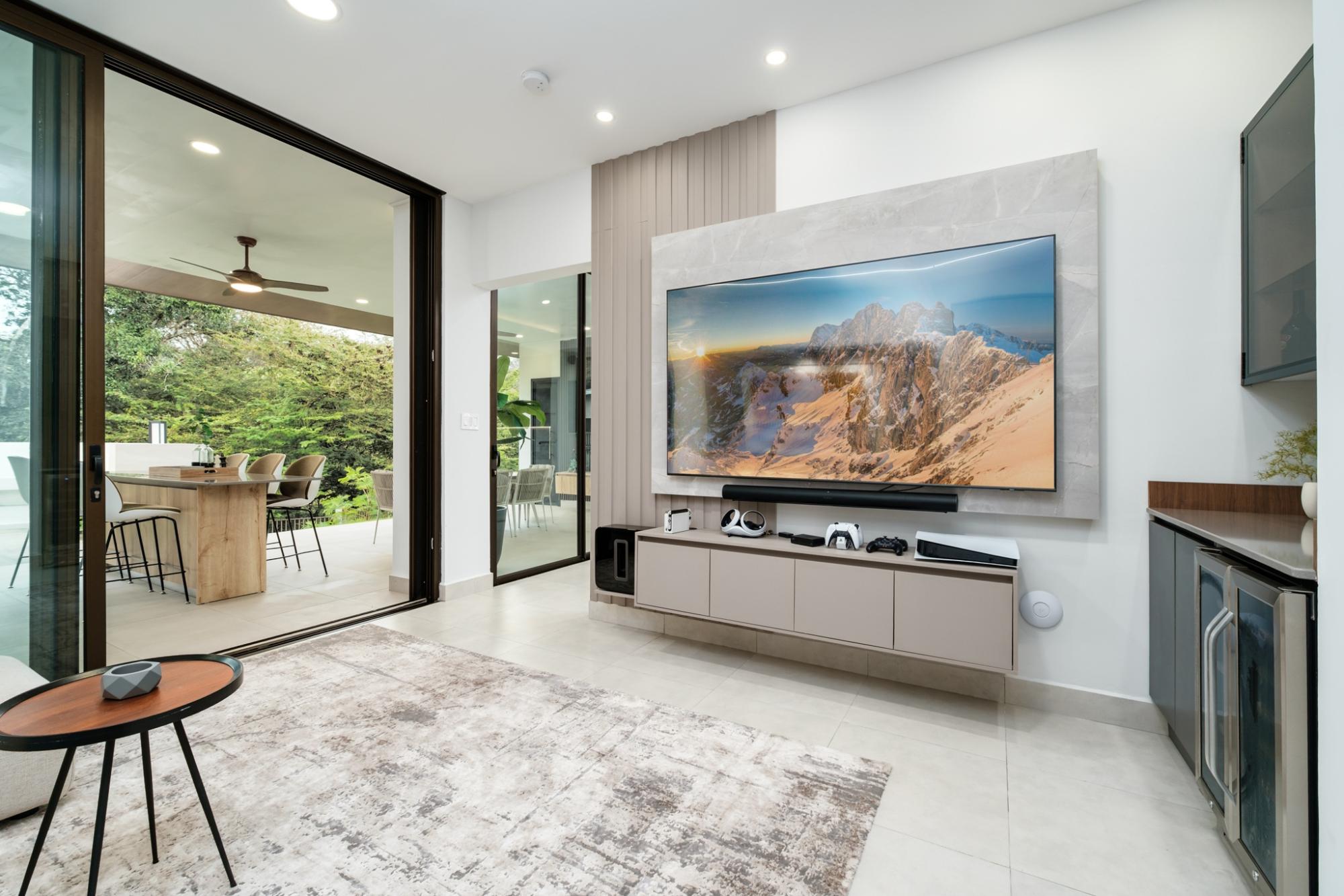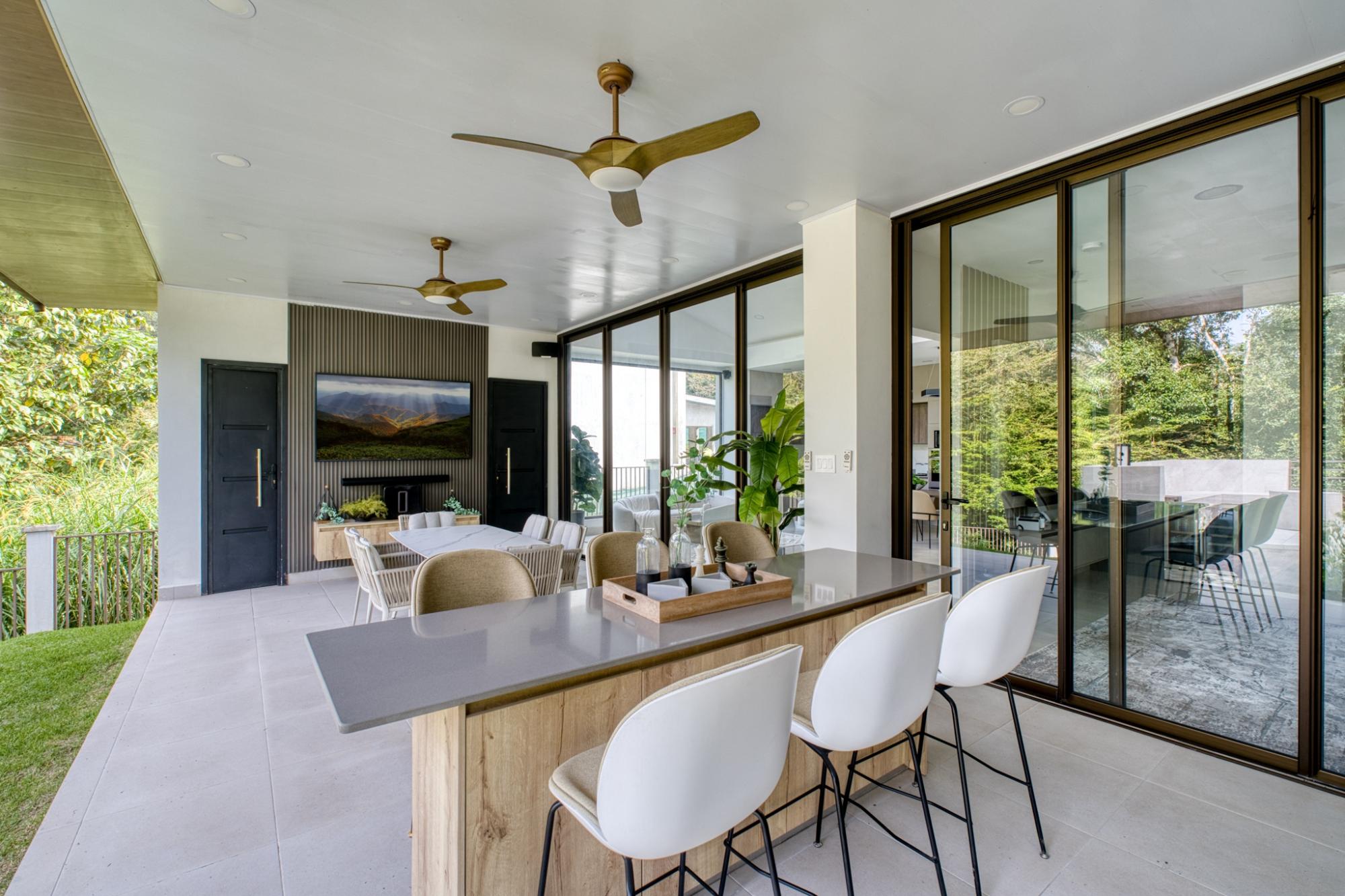 This stunning contemporary two-story home in Lucero Golf and Country Club showcases modern elegance and comfort. The main floor features a bright living room, a designer kitchen with Silestone countertops, custom cabinetry, breakfast bar, and top appliances. A stylish family room with built-ins and wine fridge opens to an impressive outdoor living area with kitchen, BBQ, wine cooler, and a cozy firepit seating area. Also on the main floor is a guest bedroom with ensuite bath, three half baths, and a spacious laundry room with storage. Upstairs offers a grand master suite with balcony overlooking the river, large walk-in closet, and luxurious bath, plus a third guest bedroom with ensuite. Fully furnished, professionally decorated, sprinkler system, two-car garage, and spectacular views.