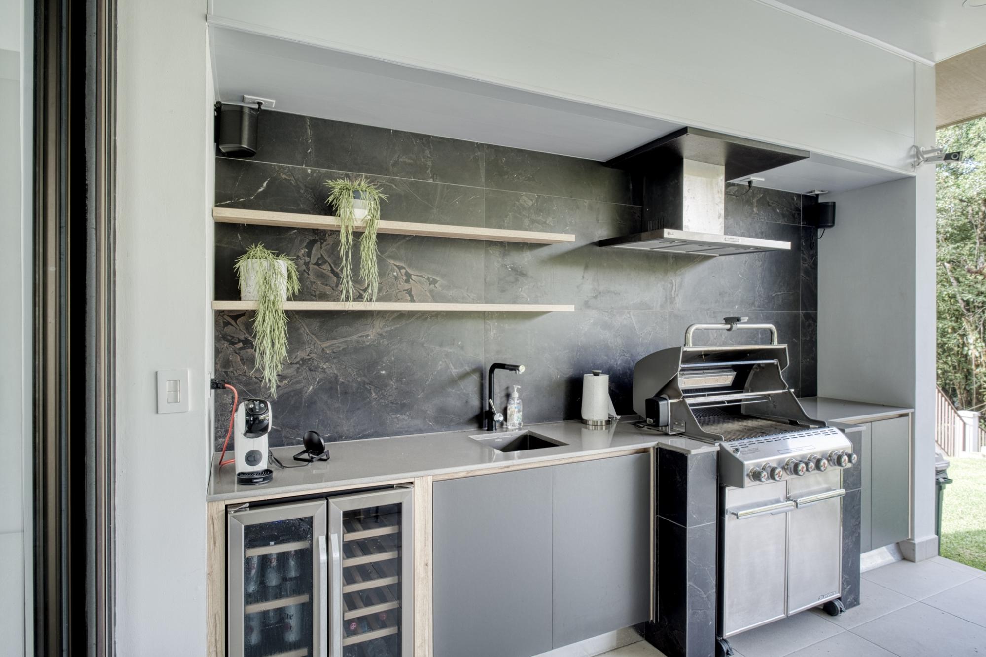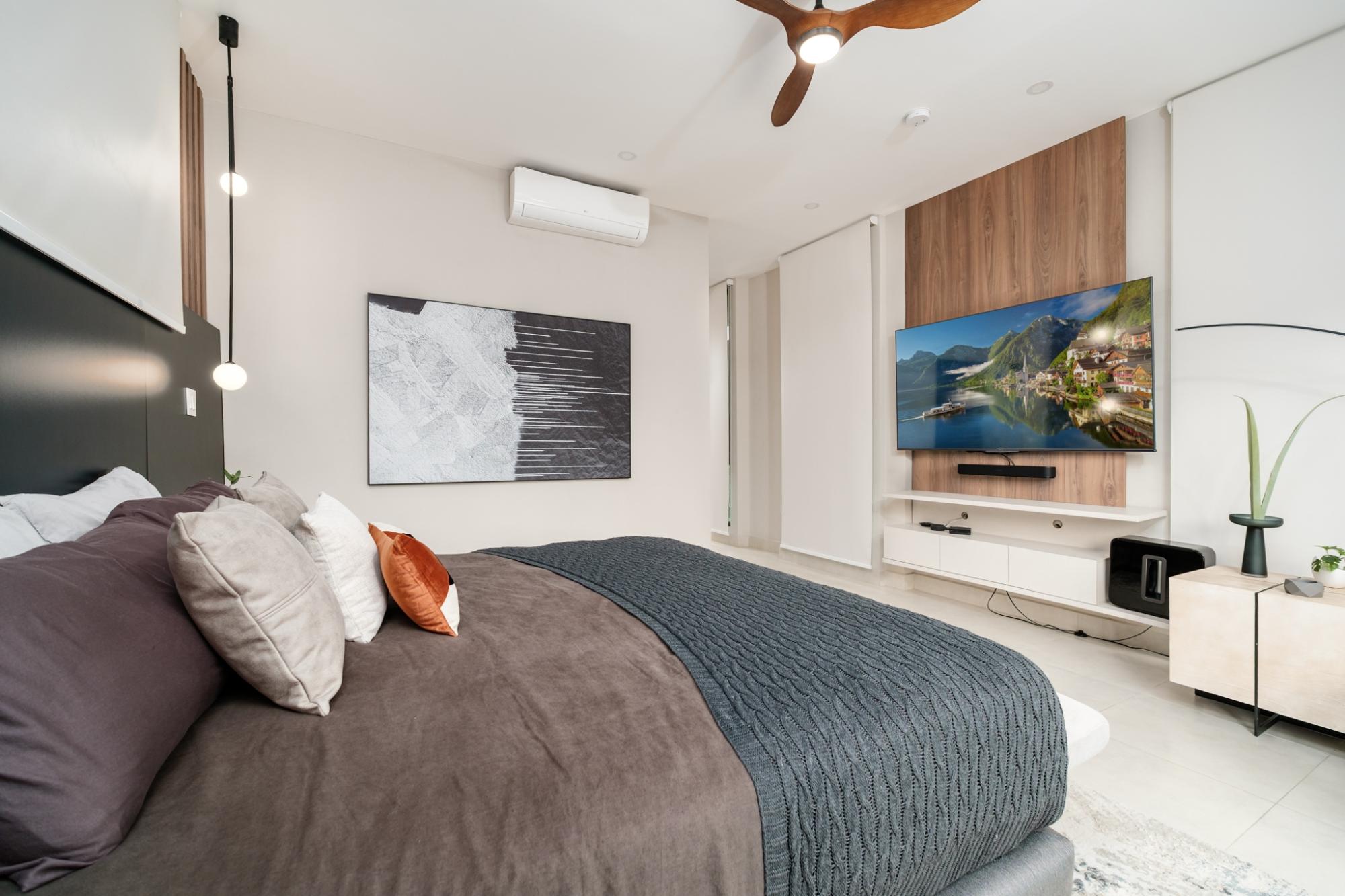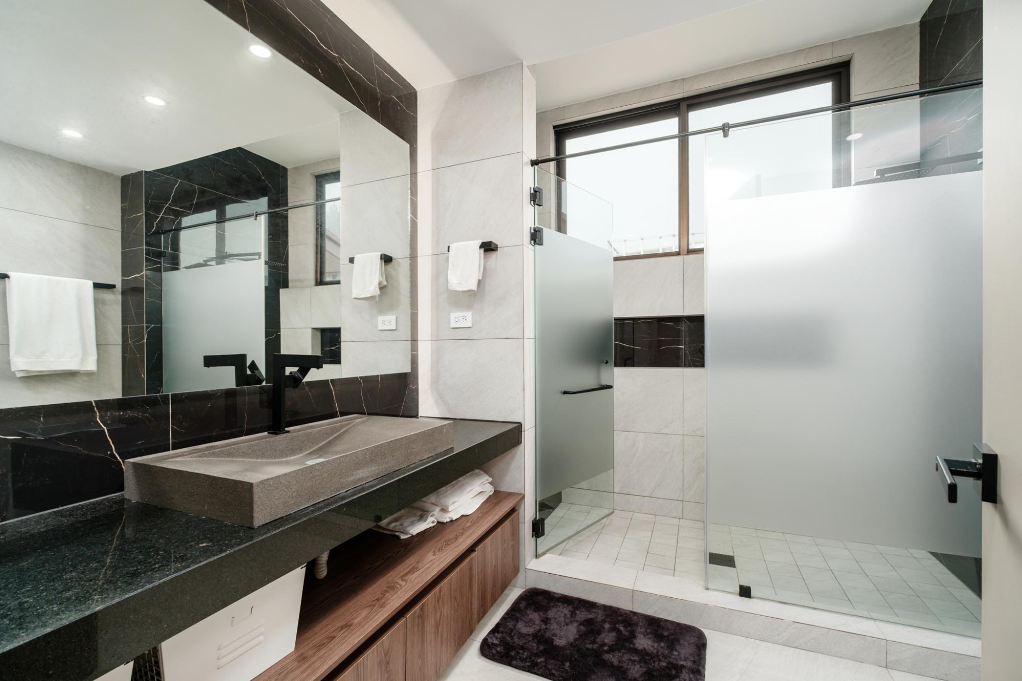 This stunning contemporary two-story home in Lucero Golf and Country Club showcases modern elegance and comfort. The main floor features a bright living room, a designer kitchen with Silestone countertops, custom cabinetry, breakfast bar, and top appliances. A stylish family room with built-ins and wine fridge opens to an impressive outdoor living area with kitchen, BBQ, wine cooler, and a cozy firepit seating area. Also on the main floor is a guest bedroom with ensuite bath, three half baths, and a spacious laundry room with storage. Upstairs offers a grand master suite with balcony overlooking the river, large walk-in closet, and luxurious bath, plus a third guest bedroom with ensuite. Fully furnished, professionally decorated, sprinkler system, two-car garage, and spectacular views.