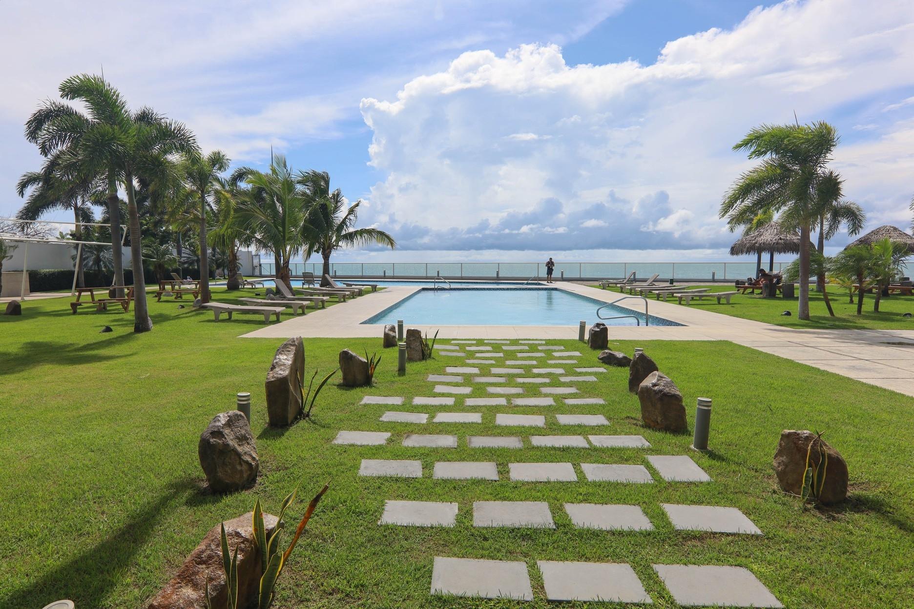 Features of this apartment include: 70 m2 of construction; stunning views of the tranquil fishing cove and the Pacific Ocean from the living/dining room and master bedroom; balcony with glass panels; open kitchen with stainless steel appliances; master bedroom with king bed; second bedroom with queen bed; full external bathroom; private laundry room with on-demand water heater; one assigned parking space; very low maintenance fee of only $140/month, which includes water and trash collection