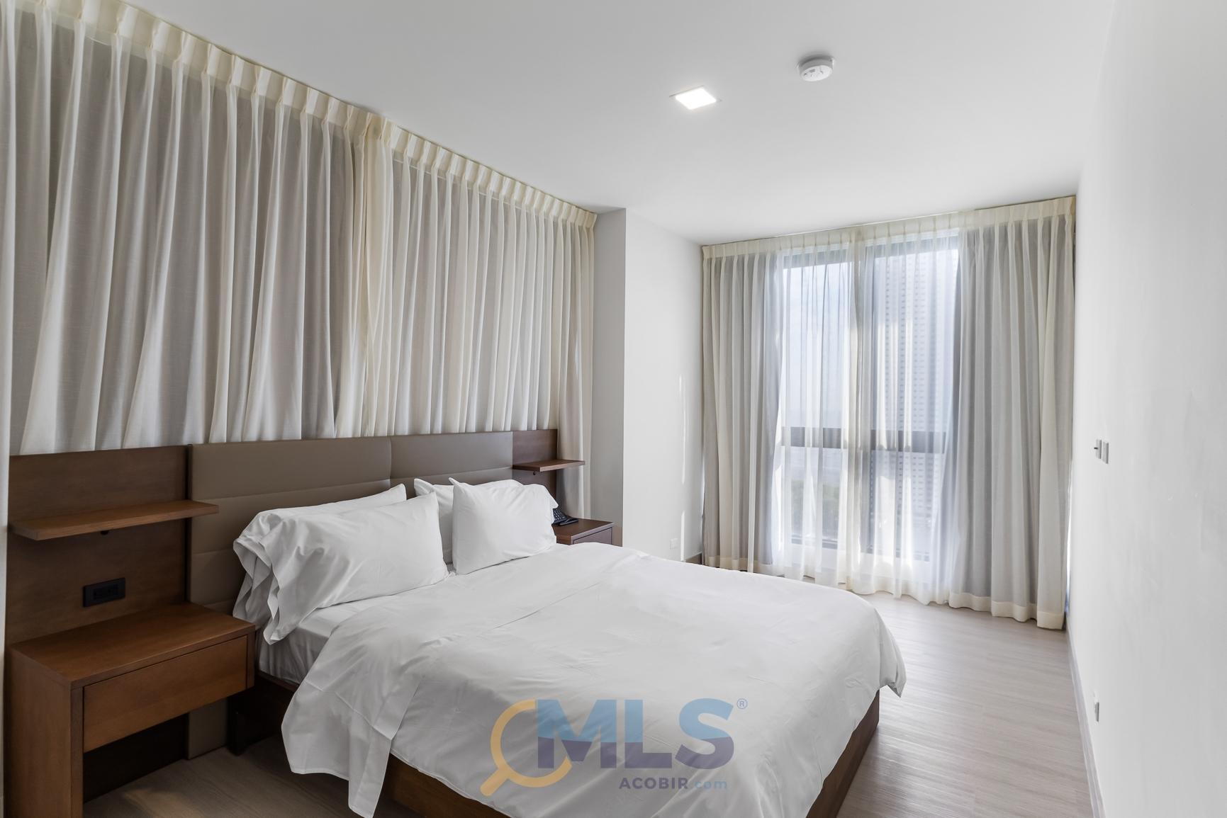76 sq m (800 sq ft) apartment for sale, with one bedroom (convertible to two), two bathrooms, and fully equipped, ideal for investment. Currently, it features one bedroom with a walk-in closet, ocean views, two full bathrooms, a laundry closet, and is generating rental income. Includes: modern furniture, hotel-style curtains (blackout and sheer), appliances, kitchen equipment (including dishes, pots, utensils, etc.), three air conditioning units (ready for the second bedroom), a TV, and one parking space. The Arcadia del Este building is the only tower in Costa del Este with license for short-term rentals. It features a front desk, coffee shop in ground floor, and modern social areas including: a fully equipped gym, rooftop pool, terrace, squash court, coworking space, sauna, clubhouse, and game room.