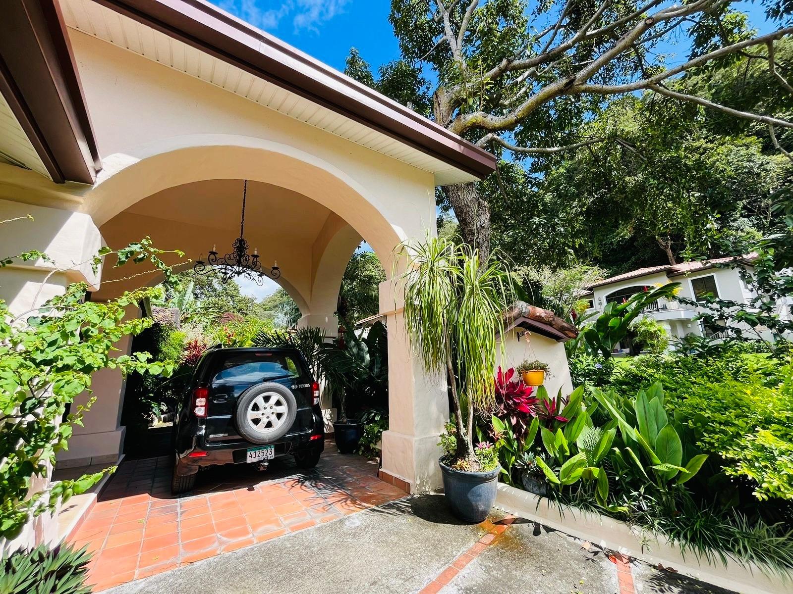 Discover a captivating 2-storey home in Valle Escondido, designed in the style of an “Argentinian Hacienda” completely private backyard with uninterrupted views of the mountains and nature. The home has a natural stream that runs year long at the bottom of the garden and if you are looking for a home with privacy and beautiful private views, this home is for you. Ceiling fans throughout the home and dehumidifier in the dinning room, master bedroom, and downstairs room. This charming residence beautifully combines classic architecture, offering 3 spacious bedrooms and 2.5 luxurious bathrooms. Perfect for those seeking a unique blend of traditional charm and contemporary living. Main bedroom has an en-suite bathroom and a walk-in closet for ultimate convenience and a private balcony overlooking a stream. The main bedroom has doors conveniently opening up into the terraza. The private study, perfect as a third bedroom or a cozy library, adds versatility to your living space. Enjoy the secondary lounge just off the kitchen, ideal for a TV room, extra dining area, or an entertainment space. Ascend the staircase to discover a spacious second bedroom, complete with a ensuite bathroom and ample large closet for all your needs. The large living room, complete with a charming fireplace with gas logs, connects seamlessly to the open-style kitchen, which boasts ample cabinetry. Step outside to the covered terrace and soak in breathtaking views and enjoy the bar, sink and barstools making it a perfect place to enjoy a barbeque, entertaining friends or a evening cocktail.