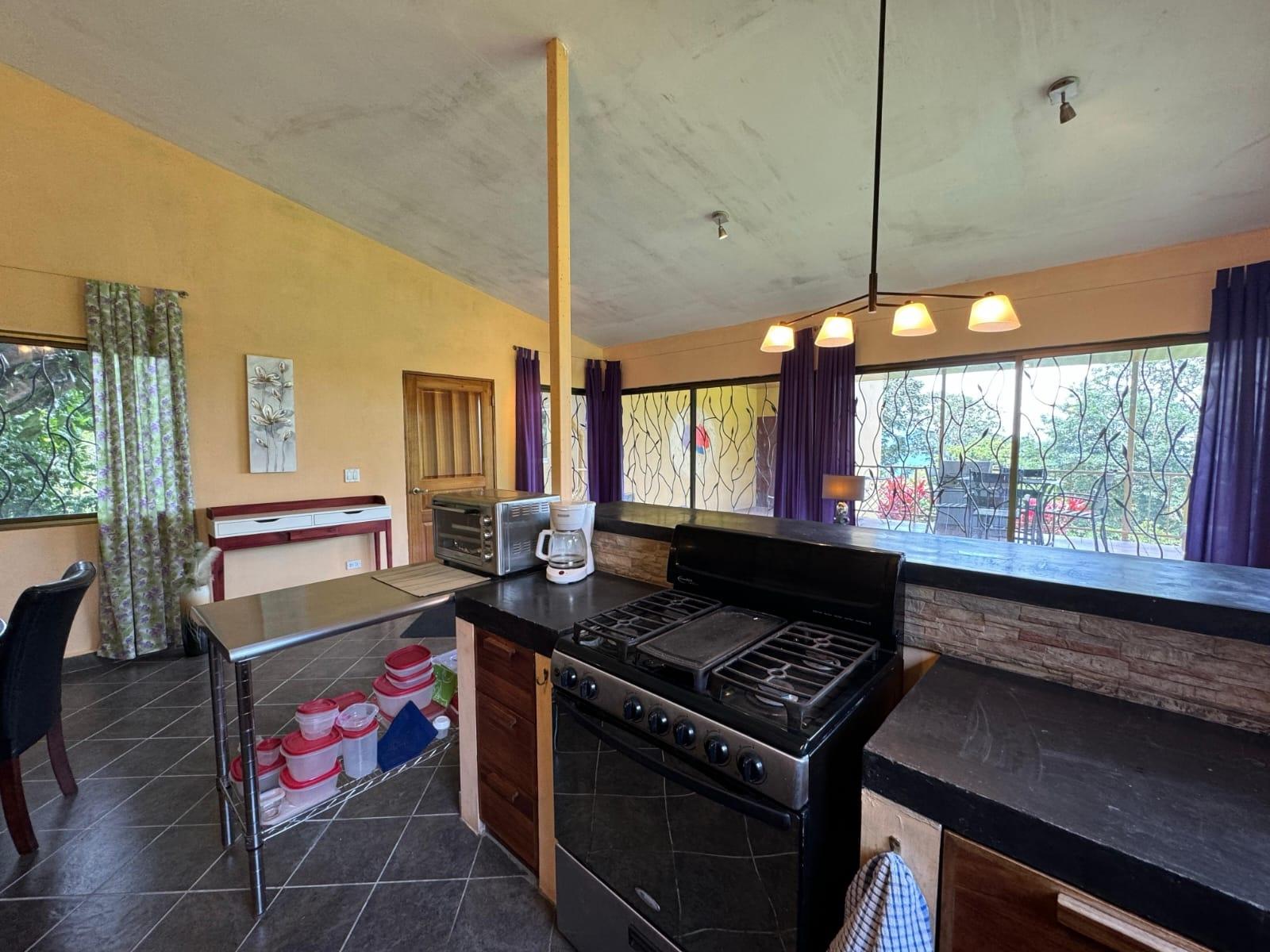 Welcome to your dream mountain retreat in the sought-after community of El Salto, Boquete—just 400 meters from the entrance to Volcan Baru National Park and a quick 12-minute drive to downtown Boquete. Perched at an elevation of 1,720 meters (5,643 feet), this estate offers crisp, cool air year-round and sweeping views of Boquete’s lush highlands. Set on a nearly flat 3,502 m² lot (over three-quarters of an acre), the property is surrounded by nature, mature gardens, and fruit trees—an ideal setting for relaxation or investment. Whether you’re looking for a private family estate, a hospitality venture, or a flexible rental income property, this estate delivers on all fronts. Main House •2 spacious bedrooms, 1 full bathroom •Comfortable living area and a well-equipped kitchen •Expansive covered terrace with panoramic mountain views – ideal for entertaining •Outdoor fireplace for cozy evenings under the stars •Downstairs laundry and storeroom – great for storage or workshop use •Water filtration system with UV filter Private Apartment (this apartment is incomplete internally) •2 bedrooms, 2 bathrooms •Connected to the main house via the terrace for easy access •Spiral staircase to a private upstairs suite with en-suite bathroom •Perfect as a guest space, caretaker’s residence, or rental unit Two Casitas •Each casita features 1 bedroom, 1 bathroom, a kitchen, and its own private terrace •Ideal for Airbnb rentals, long-term tenants, or guest accommodations Property Highlights •Two view-filled terraces – one with an outdoor fireplace •Quality wood cabinetry throughout •Greenhouse dome and lush gardens with fruit trees