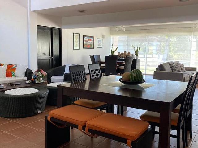 Villa located at Costa Blanca Villas, developed by Decameron Hotels Group, 5 bedrooms each one with private bathroom, Gazebo with half bathroom, open shower, deposit, technical area and covered area. Living and dining room, family area and games area, kitchen, family room second floor with 2 bedrooms (Main and secondary), first floor is located the maid room, with bathroom. Exterior area with pool, jacuzzi, Wet Bar, laundry covered. 2 parking spaces in front of the house and one lateral parking covered for golf car or four wheel. Located at Costa Blanca Villas, facing the golf course, with access to the beach club with beach front, pool for adults and kids, restaurant, bar, parking spaces for visitors.